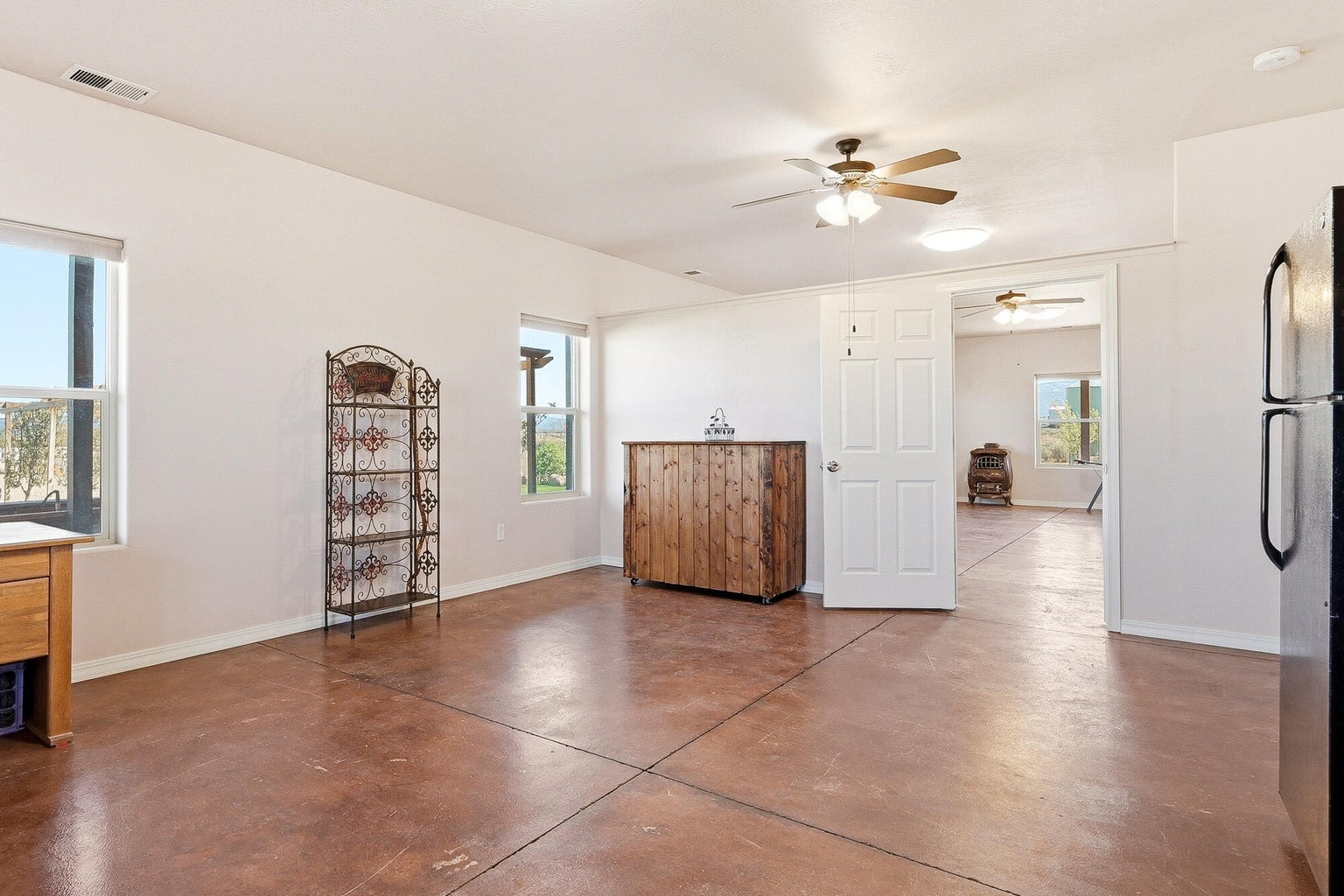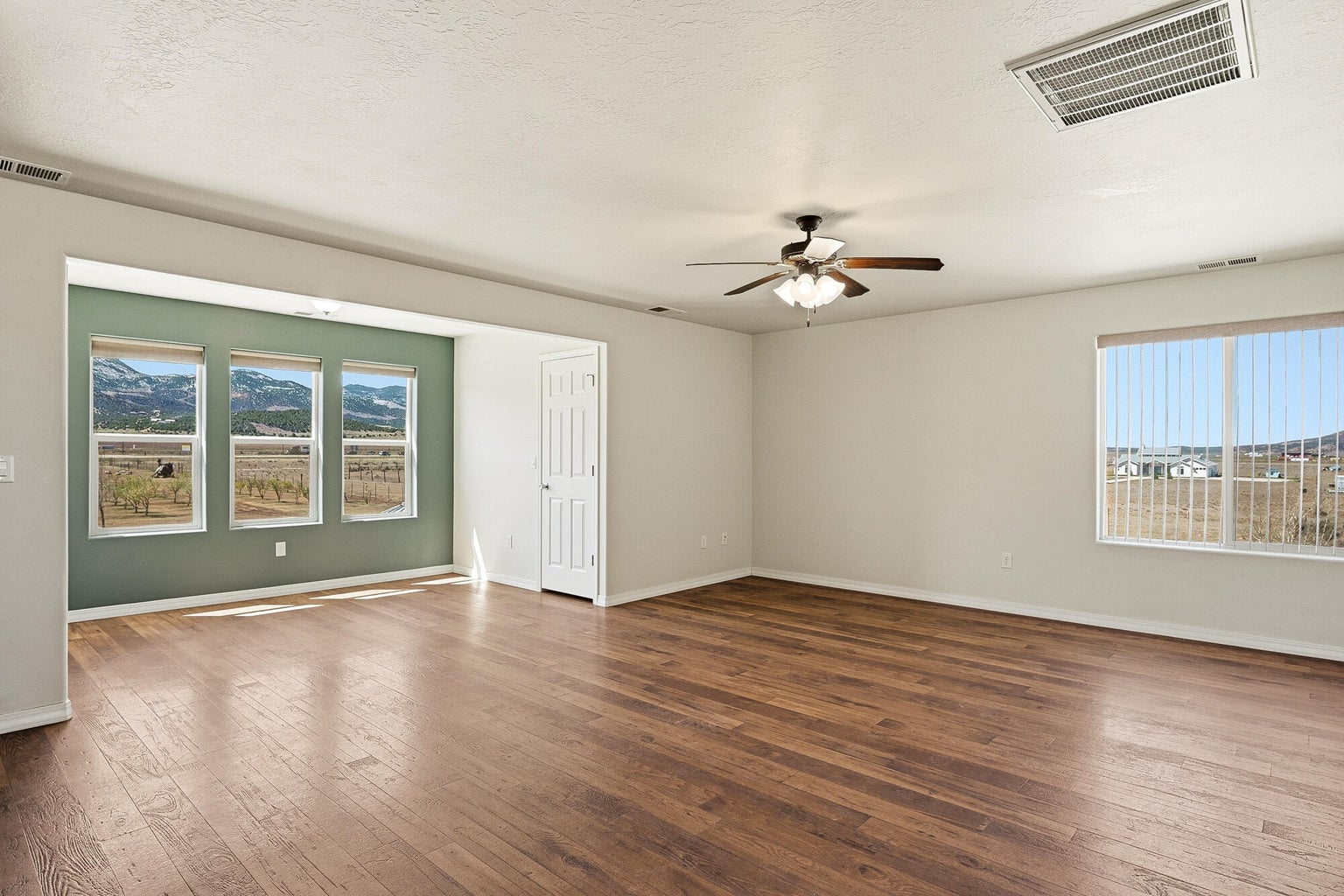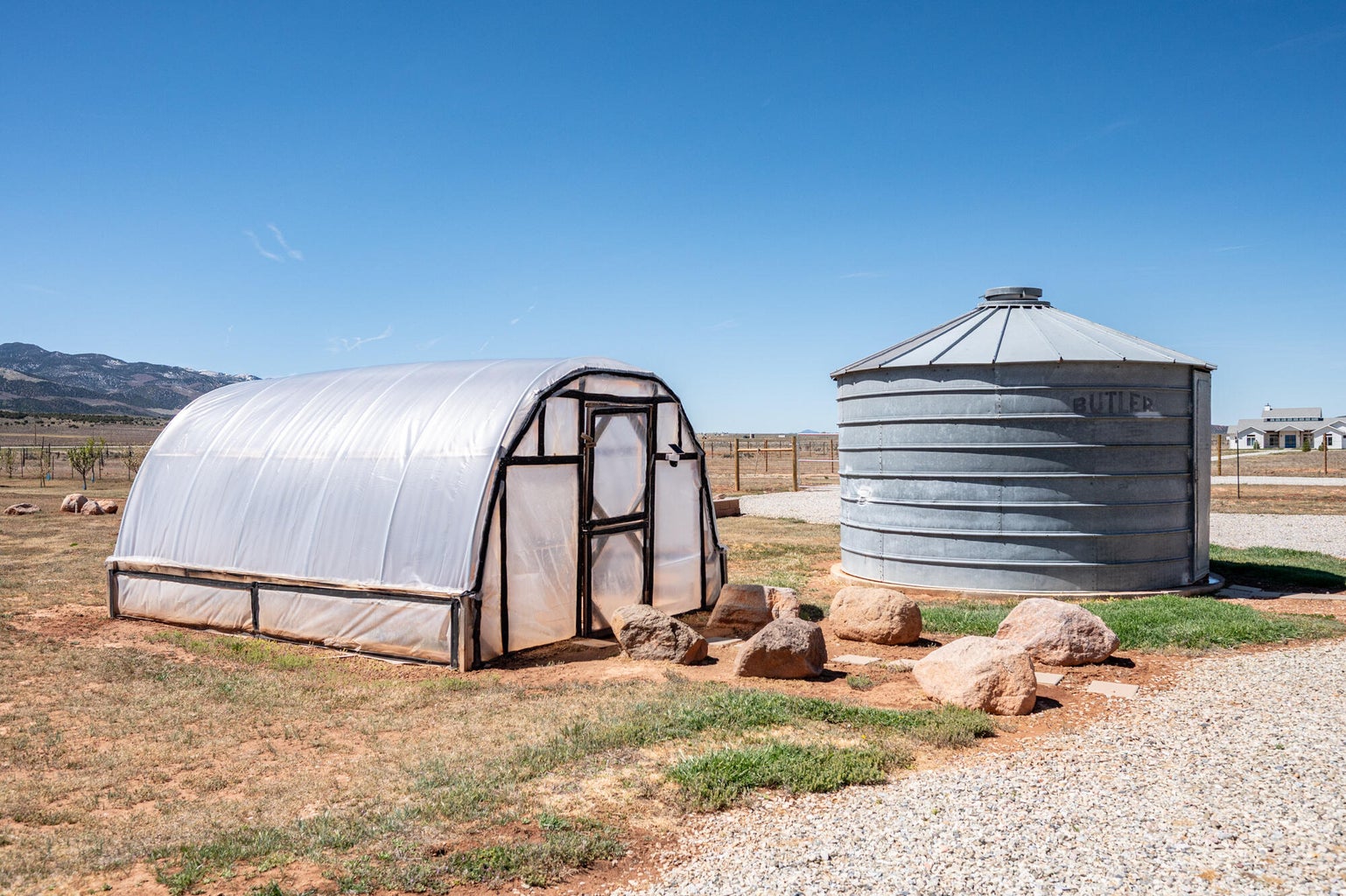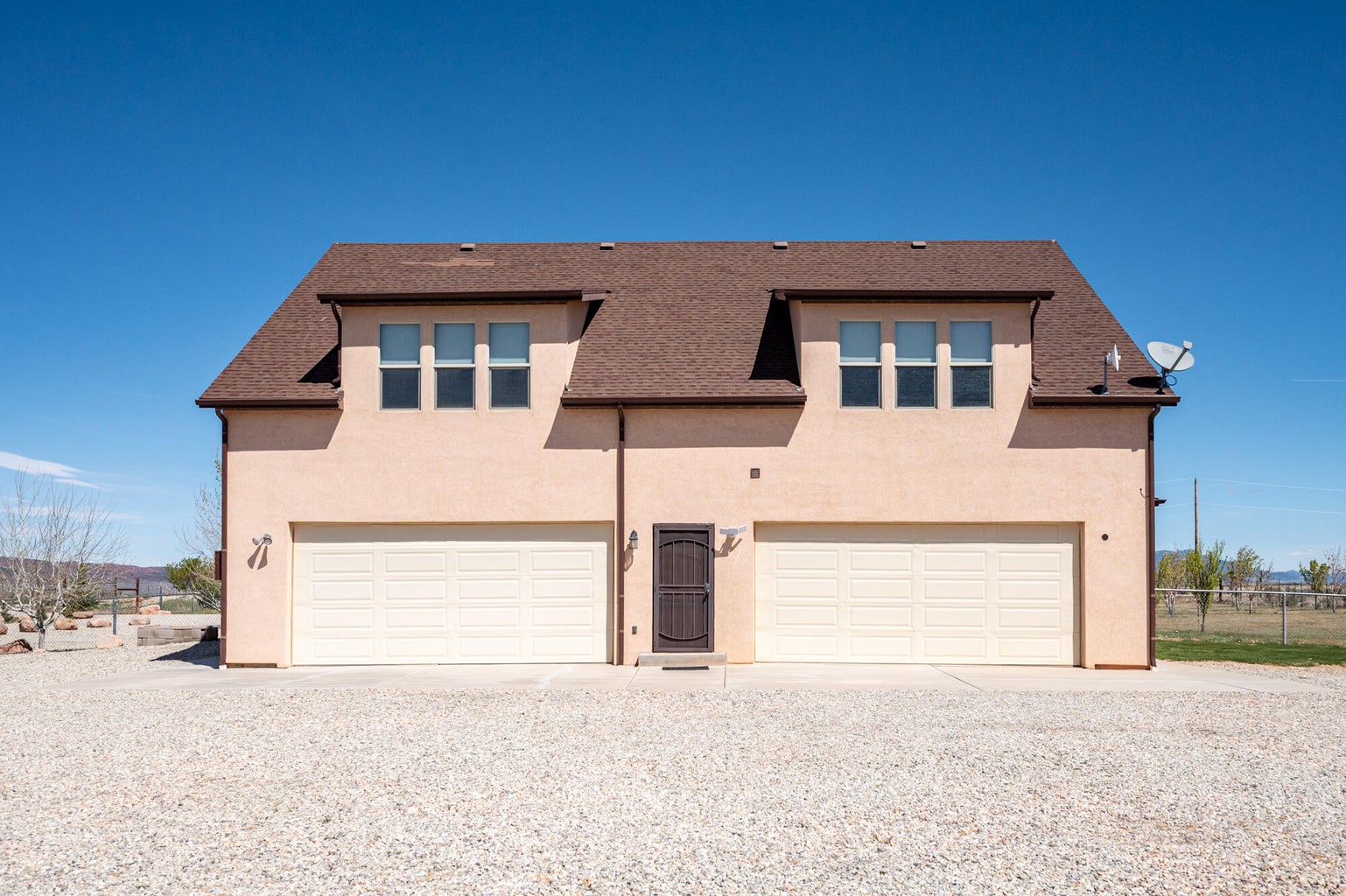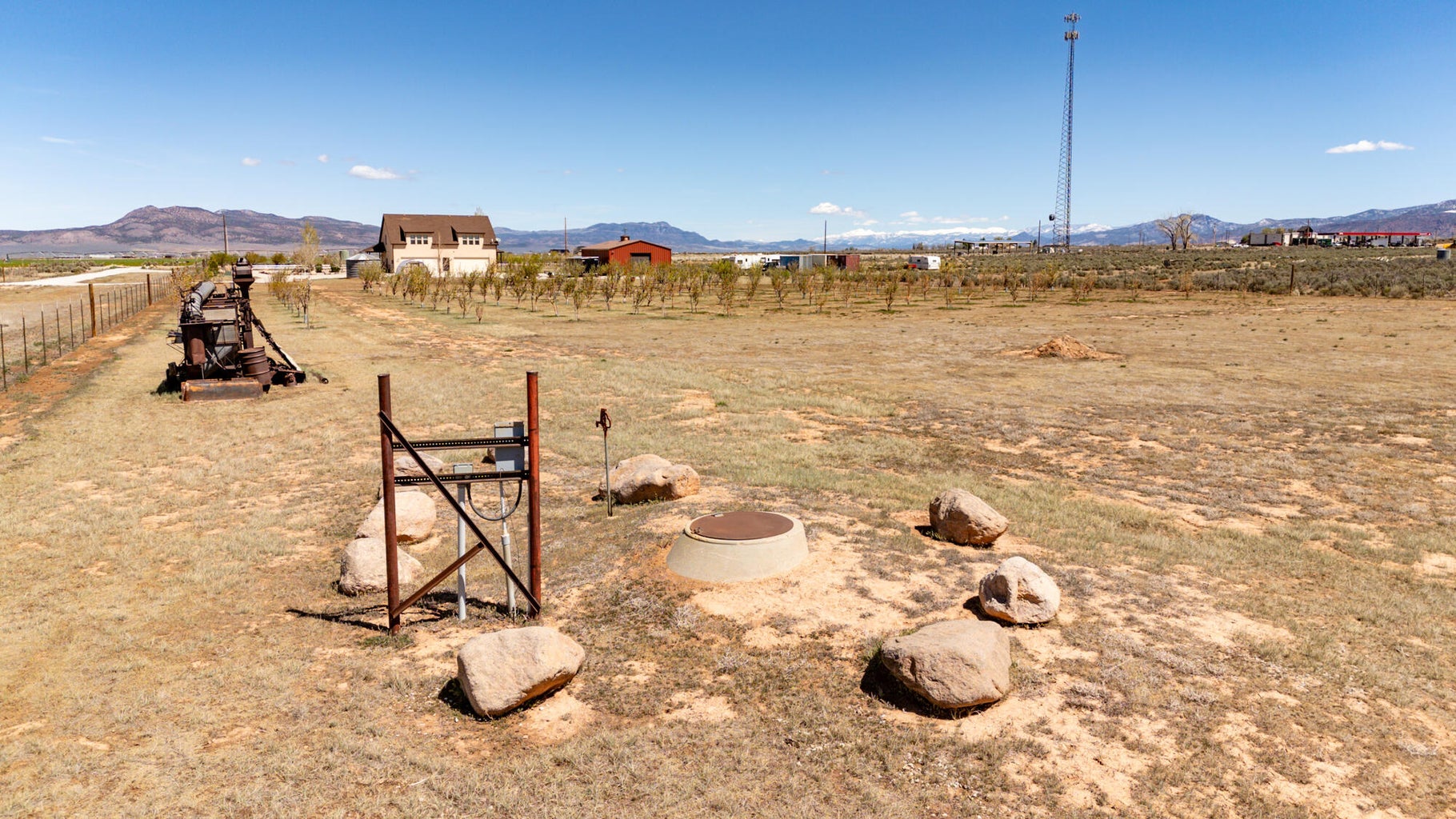 PAROWAN GAP FARM, 5.24 Acres, wraparound porch. 2 separate living quarters upstairs. Ea unit has 1 bedroom, full bath, living, kitchen, dining area. Main floor has open living area, 1/2 bathroom & laundry room. Property has 230 fruit trees, cottonwood & pine all on drip irrigation. Extra water spigots on prop. Irrig grassed front yd w/walkway & Espalier trellis. 7 ac ft water rights (2 w/1917 priority date, 5 w/1954 priority date). 40 X 30 barn w/cement floor & 1 man door & two 10 high drive thru doors. Completely fenced (6 high) w/4 gates. Decorative vinyl driveway rail fencing. 4 separate 50 amp RV electric svcs on lot. 2 RV pedestals in front of home, 1 in barn w/ability to convert to 220V, 1 in back w/access to sewer & water. All driveways covered in gravel, grain silo & greenhouse. Features forced air propane heat & A/C. Ceiling fans in all rooms. 4 car garage apx 1200 sq ft. Both 2 car garages insulated w/heaters in ea. Home has porch lighting, flood lights on each side of garages in back & on barn. Fence w/gates on each side of home that divides lot into front & back area. 1 upstairs unit with oven/range other without. Lots of storage space with walk-in closets and large pantry space.