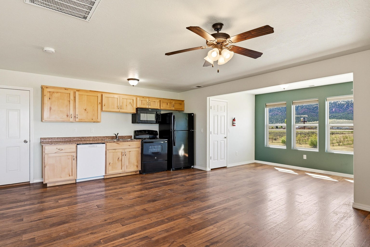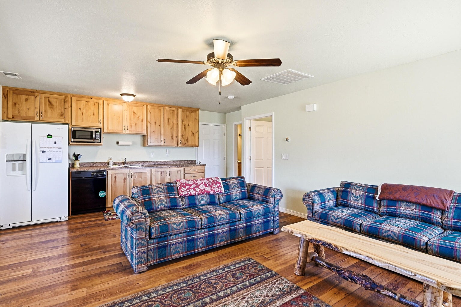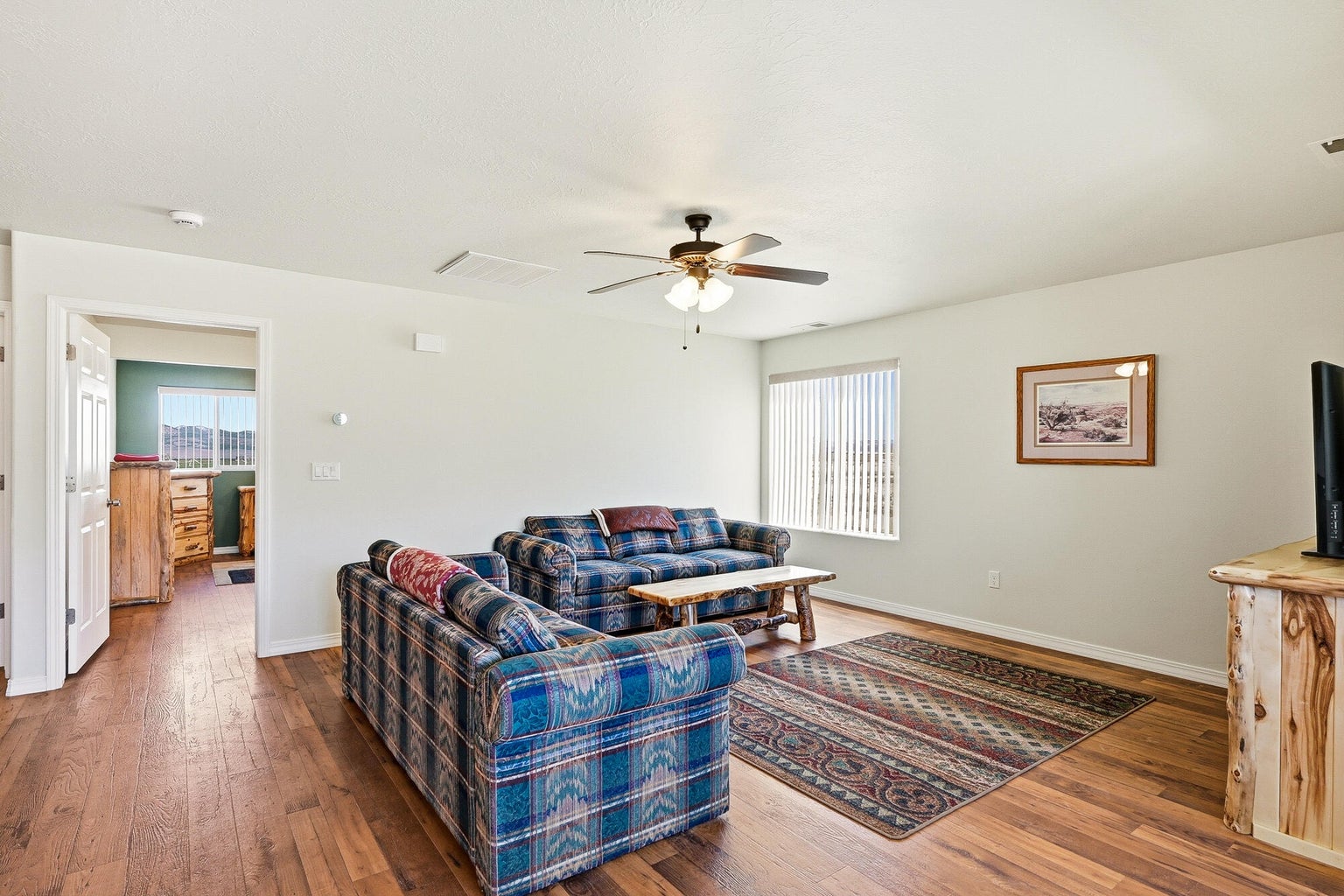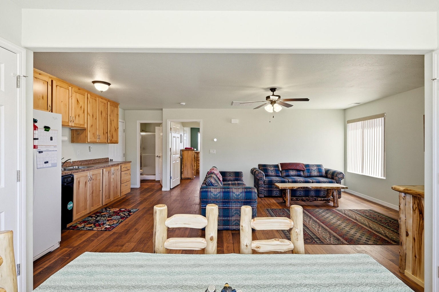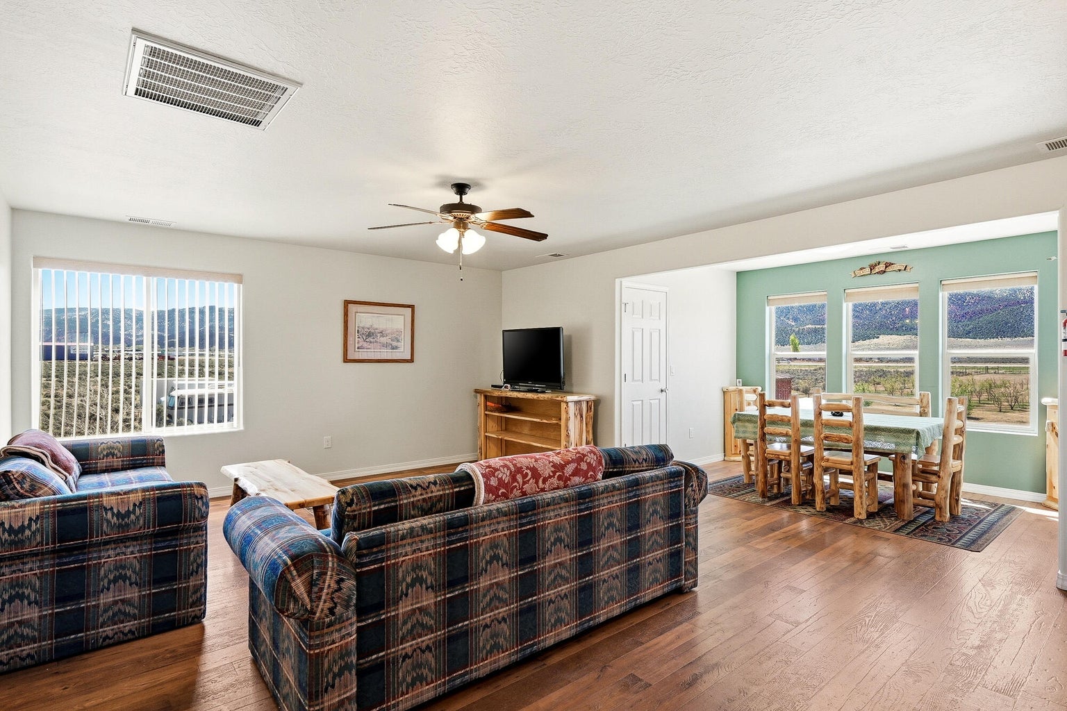PAROWAN GAP FARM, 5.24 Acres, wraparound porch. 2 separate living quarters upstairs. Ea unit has 1 bedroom, full bath, living, kitchen, dining area. Main floor has open living area, 1/2 bathroom & laundry room. Property has 230 fruit trees, cottonwood & pine all on drip irrigation. Extra water spigots on prop. Irrig grassed front yd w/walkway & Espalier trellis.