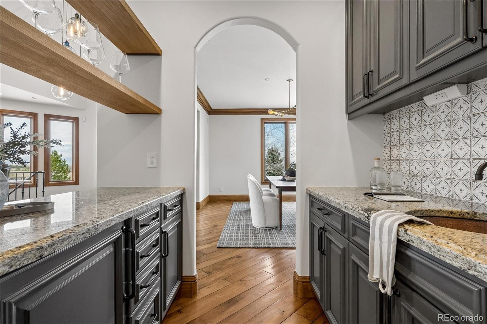 Some homes are built. This one was composed. The result of a collaboration between Ades Design and celebrated interior designer Andrea Schumacher, every inch of this Colorado foothills estate reflects an enduring dedication to craft, beauty, and intentional living. Set on nearly three-quarters of an acre with commanding mountain views from every space, this is a property where the Rocky Mountain lifestyle isnt just nearby-its woven into the very fabric of home. Step inside and the scale announces itself immediately: soaring 20-foot tongue-and-groove ceilings crown the living room, where a dramatic steel fireplace anchors the space and oversized windows frame the mountains like living artwork. The gourmet kitchen is as functional as it is beautiful, flowing seamlessly into a dining room distinguished by a custom built-in buffet with dual wine refrigerators-a nod to the effortless entertaining this home was made for. A dedicated workspace, private office, and a thoughtfully appointed mudroom with generous storage round out a main floor designed to support the rhythms of daily life without compromising on elegance. The primary suite is a sanctuary unto itself-a fireplace for quiet evenings, a spa-inspired bath with an oversized shower and deep soaking tub, and a private balcony where the mountains greet you each morning. Three additional ensuite bedrooms on the upper level ensure everyone enjoys the same sense of privacy and comfort, complemented by a loft and sitting area that invites quiet moments and casual gatherings alike. Below grade, the energy shifts-playful, active, and endlessly versatile. A large game and recreation room with its own fireplace opens to the outdoors, while a second guest suite provides complete autonomy for visitors. A custom barn door reveals the gym of ones dreams: rubber floors, a wall of mirrors, and each detail calibrated for serious use. Overhead, a lofted kids playroom with a custom ladder sparks imagination at every age. Feel immersed in the mountains while remaining effortlessly connected-just 25 minutes to Denver and 15 minutes to the charm of downtown Littleton. Neighborhood trails, a park, and a playground as well as the nearby Red Rocks Country Club extend the Colorado lifestyle further still.