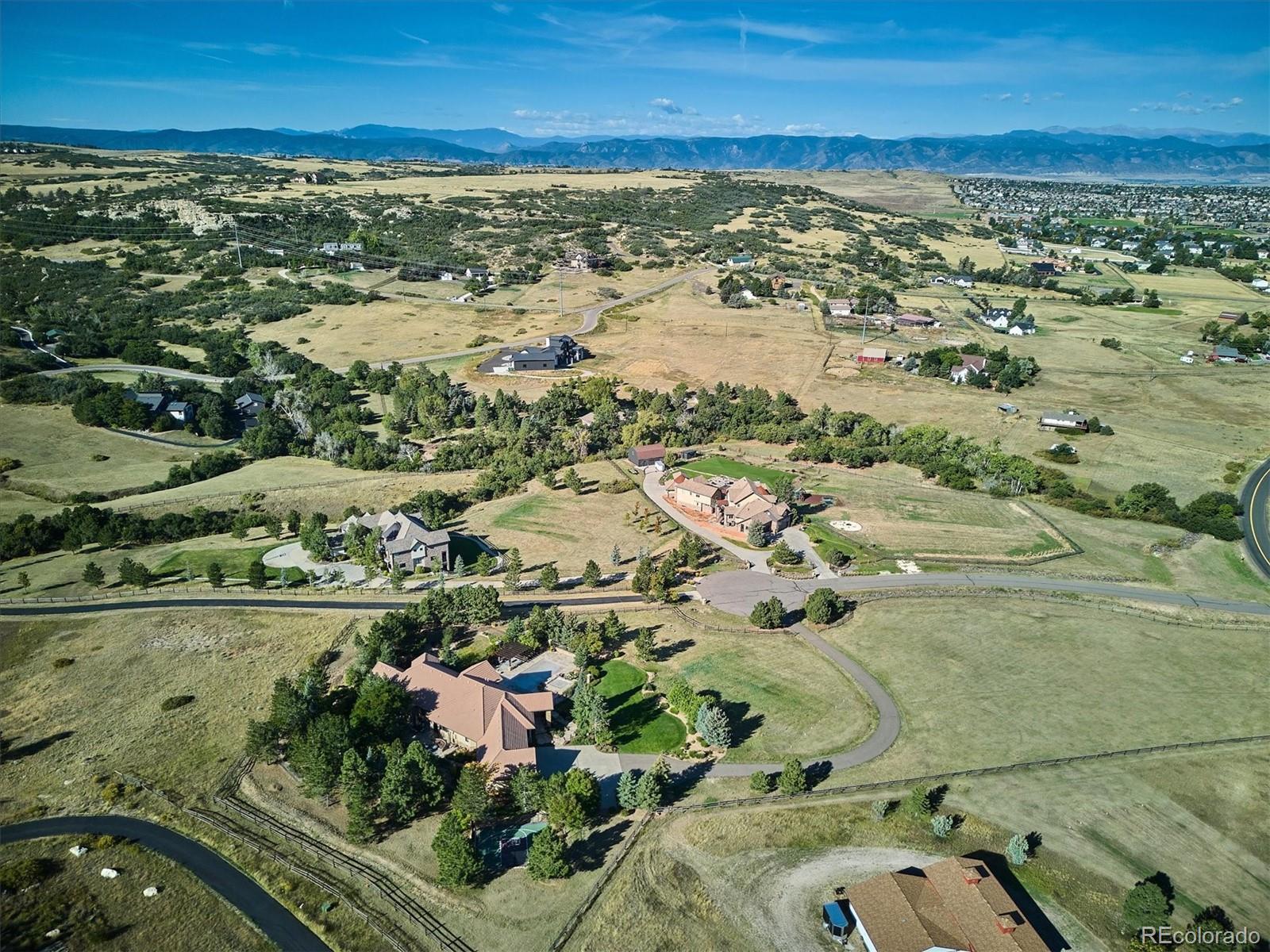 Experience refined country living in this exceptional custom estate nestled on 4.95 pristine acres in the prestigious MacArthur Ranch. This Home Has FULL WEST MOUNTAIN VIEWS from almost every room! Perfectly positioned just 15 minutes from premier shopping and dining, this property offers the ideal blend of privacy, convenience, and elevated design.Thoughtfully crafted with a spacious ranch-style floor plan, the home features four expansive bedrooms, each with its own private sitting area and spa-inspired en suite bathroom, creating a true retreat for family and guests alike. Every level is complete with a guest powder room, ensuring comfort and convenience throughout.Designed for both everyday living and grand entertaining, the interiors showcase high-end finishes, custom upgrades, and meticulous attention to detail at every turn.Step outside to your private resort-style oasis, where a sparkling swimming pool, relaxing hot tub, and elegant pergola invite you to unwind while taking in sweeping, picturesque views. A separate yard provides the perfect space for children or pets, while the sport court adds an extra element of fun and recreation.Car enthusiasts will appreciate the impressive four-car garage, featuring built-in cabinetry, sleek epoxy floors, and an electric vehicle charger.This is Colorado luxury living at its finestwhere space, sophistication, convenience and lifestyle come together seamlessly. This property is also zoned for horses!