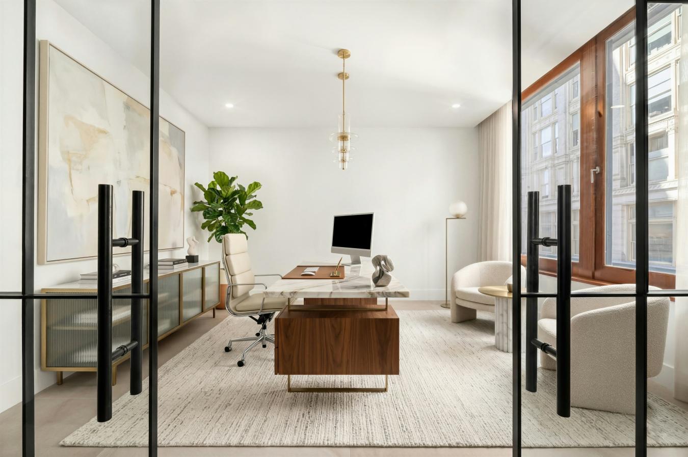 Many downtown lofts give you scale, but far fewer make that scale feel calm, warm, and genuinely easy to live in. This one does. Eleven-foot ceilings and oversized mahogany-encased windows give the great room real volume and character, but what stays with you is not the size alone. It is how open, quiet, and immediately settling the room feels. Heated floors and a gas fireplace make it rarer still: a large downtown home that feels inviting the moment you walk in, and like somewhere you would actually want to return to at both ends of the day. The kitchen stays fully open to the living area, which is exactly what you want when people are over, but it is built to function as a real everyday space rather than just a decorative one. Valcucine cabinetry, Sub-Zero and Miele appliances, a vented five-burner cooktop, built-in coffee service, and a concealed washer/dryer make it feel capable, efficient, and fully thought out. It supports daily life just as well as it supports entertaining, which is where many homes like this start to fall apart. The primary suite carries that same sense of ease. Double exposures, plentiful storage, and a second fireplace make it feel genuinely removed from the rest of the home, while the marble-clad bath is scaled and finished in a way that feels restorative. The secondary bedroom is equally well supported, with generous storage and its own marble bath. The study, beside the living room and lit by oversized north-facing windows, gives the layout another layer of usefulness without feeling like leftover space. It can be a true office, guest room, or third bedroom, which is exactly why it matters. It gives the home flexibility without making any part of it feel improvised. What makes this space so compelling is that nothing here feels forced. It can be social when you want it to be, private when you need it to be, and flexible without ever feeling compromised. Many three-bedroom homes can give you enough rooms. Far fewer make those rooms work together this naturally. Additional comforts include heated floors, a hidden full-size washer/dryer, substantial built-in storage, full-service staffing, a fitness center, a planted roof deck with sweeping views, and an additional storage unit. With just 22 units and two lofts per floor, Altair offers boutique scale and real discretion in a part of downtown defined by convenience. Designed by Centra Ruddy in 2005, it puts restaurants, parks, shopping, and transportation immediately outside, while preserving something much harder to find inside: quiet, order, and relief from the citys pace. That contrast is a big part of the appeal. You get the energy of Flatiron and Chelsea when you want it, but home still feels like a place where the day can actually come down. What makes this one difficult to replace is that it resolves tradeoffs you already know too well: loft character versus comfort, city energy versus calm, openness versus actual livability. Many three-bedroom homes can give you enough rooms. Far fewer make those rooms work together with this much clarity, scale, and ease.