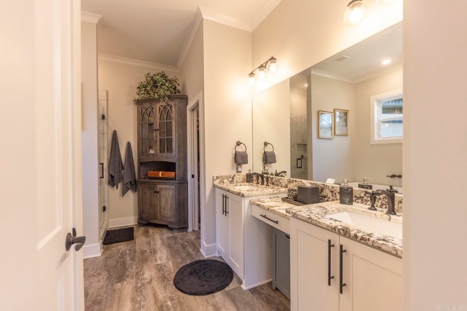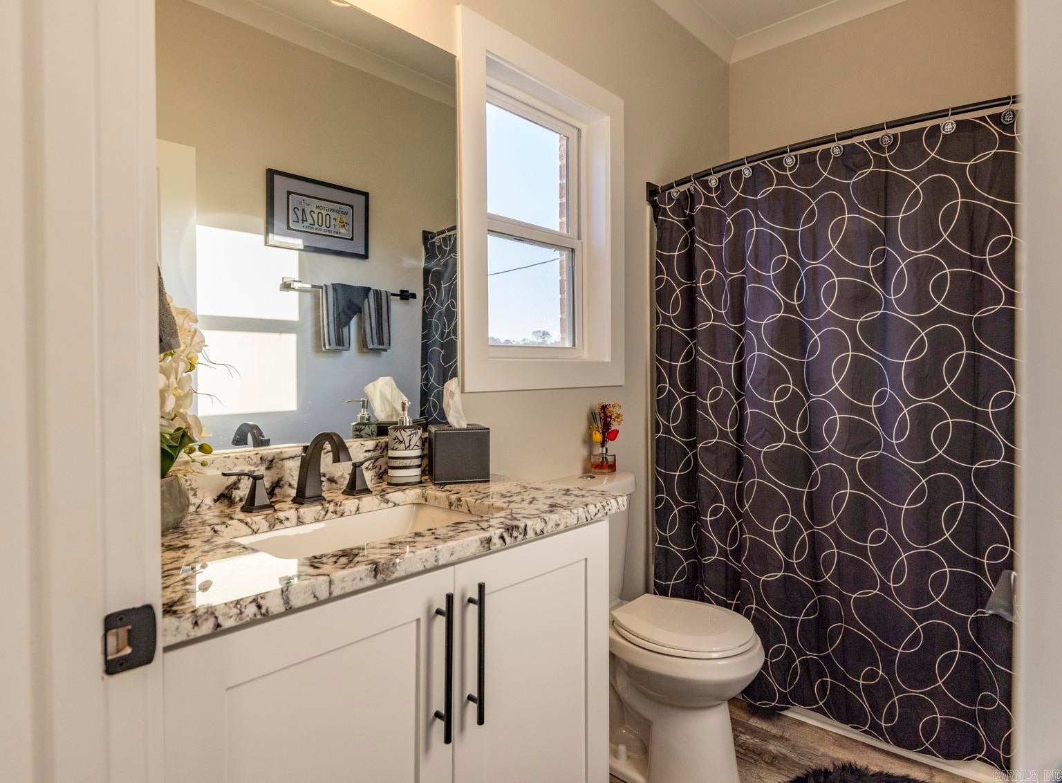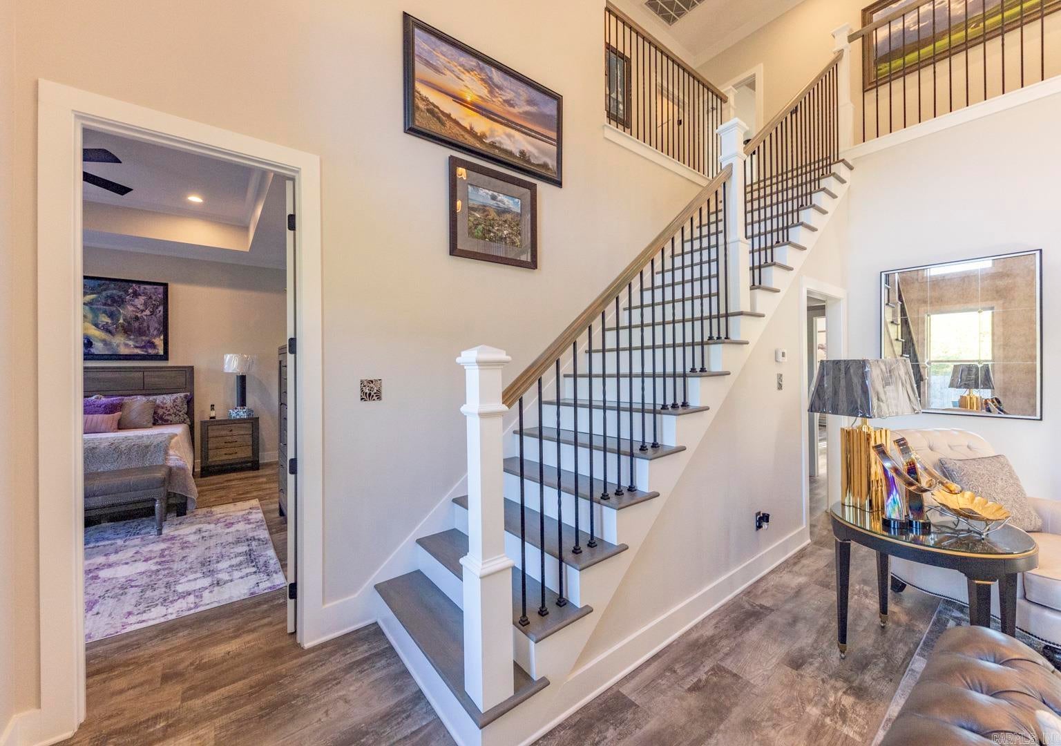 Stunning gated modern home, nestled on approximately 1 acre, conveniently located just seconds away from I-30, offering easy access to nearby amenities. As you enter, youll be welcomed into a spacious and unique living room featuring a high tray ceiling adorned with a stunning light fixture, creating an inviting atmosphere for relaxation and entertainment. The kitchen boasting quality granite countertops & a double oven, and plenty of cabinets for storage & walk-in pantry. Main level, youll find the luxurious master suite, providing a private retreat for homeowners. Additionally, theres a man cave/den, perfect for unwinding or entertaining guests, & a convenient laundry room. Upstairs, 3 bedrooms offer comfortable accommodations for family members or guests, each with their own bathroom for added convenience. A bonus room provides additional space for various activities/hobbies. The property also features an extra-large 3-car garage with beautiful cabinets, offering ample storage for vehicles & equipment. Additionally, theres a patio for relaxing, an extra shed within the gated fenced-in yard. This gorgeous home offers perfect blend of luxury, comfort & convenience.