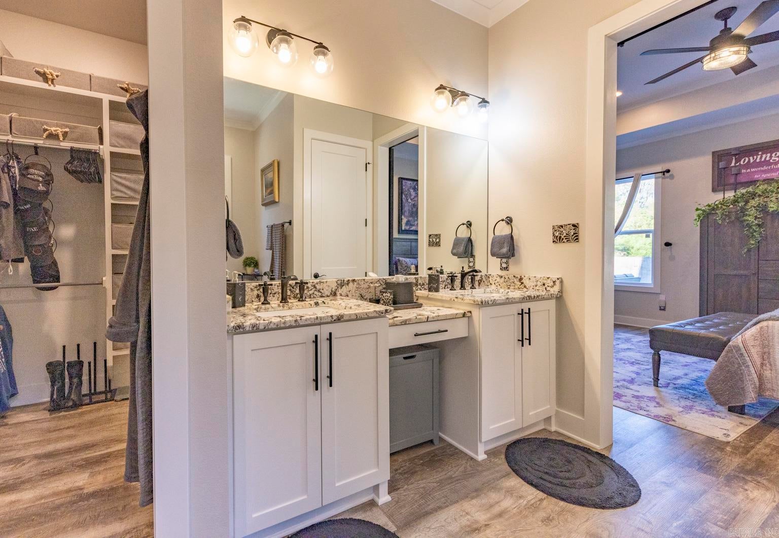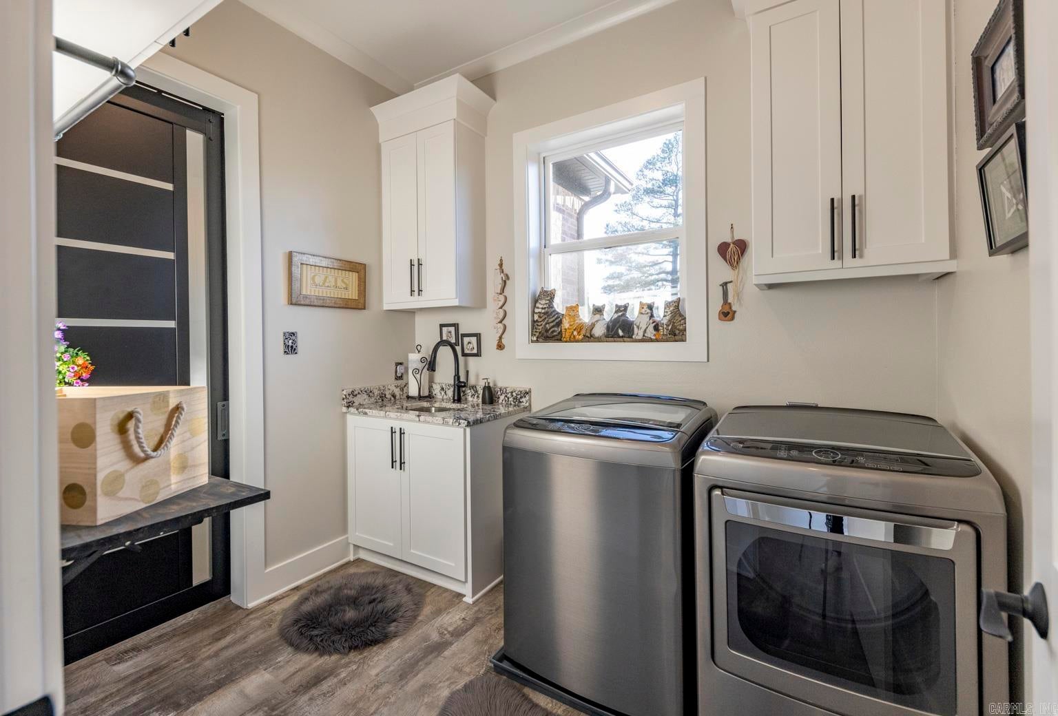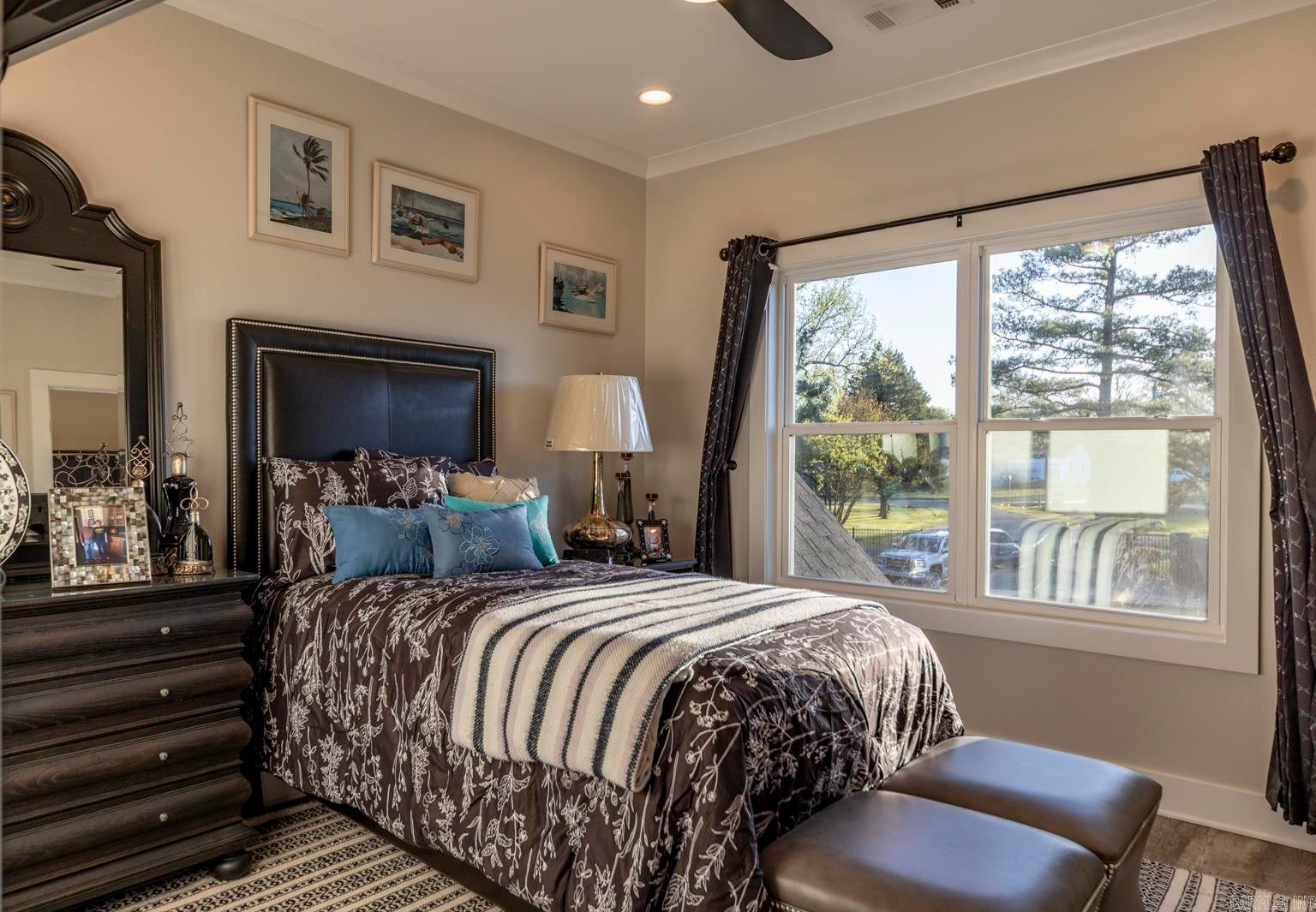 Stunning gated modern home, nestled on approximately 1 acre, conveniently located just seconds away from I-30, offering easy access to nearby amenities. As you enter, youll be welcomed into a spacious and unique living room featuring a high tray ceiling adorned with a stunning light fixture, creating an inviting atmosphere for relaxation and entertainment. The kitchen boasting quality granite countertops & a double oven, and plenty of cabinets for storage & walk-in pantry. Main level, youll find the luxurious master suite, providing a private retreat for homeowners. Additionally, theres a man cave/den, perfect for unwinding or entertaining guests, & a convenient laundry room. Upstairs, 3 bedrooms offer comfortable accommodations for family members or guests, each with their own bathroom for added convenience. A bonus room provides additional space for various activities/hobbies. The property also features an extra-large 3-car garage with beautiful cabinets, offering ample storage for vehicles & equipment. Additionally, theres a patio for relaxing, an extra shed within the gated fenced-in yard. This gorgeous home offers perfect blend of luxury, comfort & convenience.