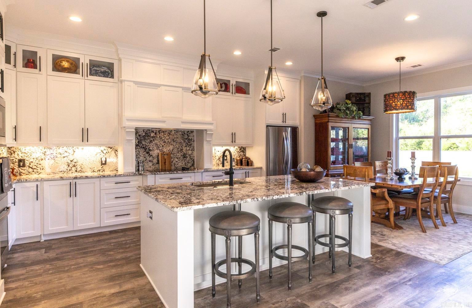 Modern luxury blends seamlessly with warmth, sophistication, and timeless design in this stunning white brick residence nestled within the exclusive gated enclave of Mallard Pond. This picturesque community features private streets lined with charming lanterns, a scenic gazebo, and a tranquil dock overlooking the lake creating a peaceful, storybook setting just outside the city limits.