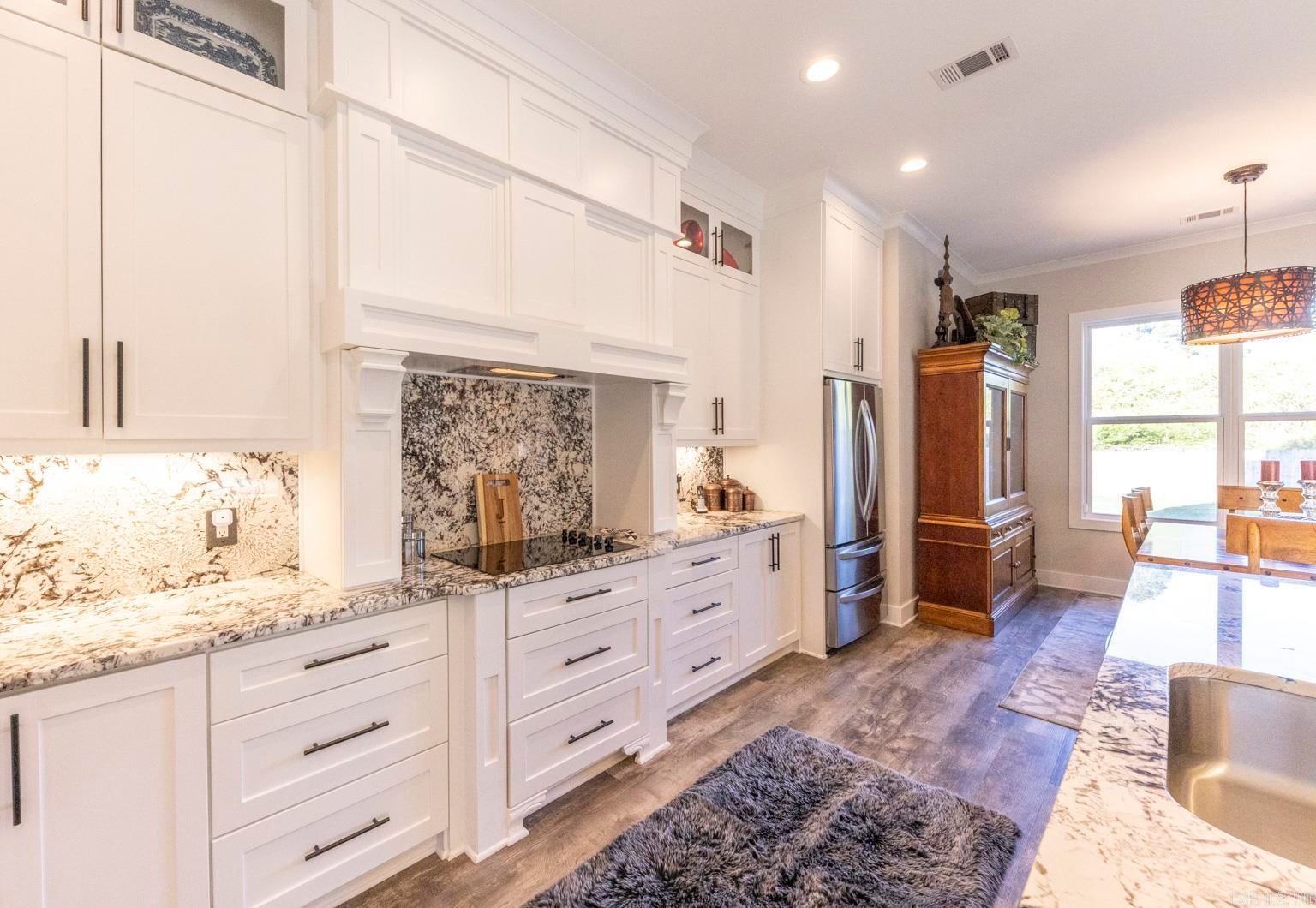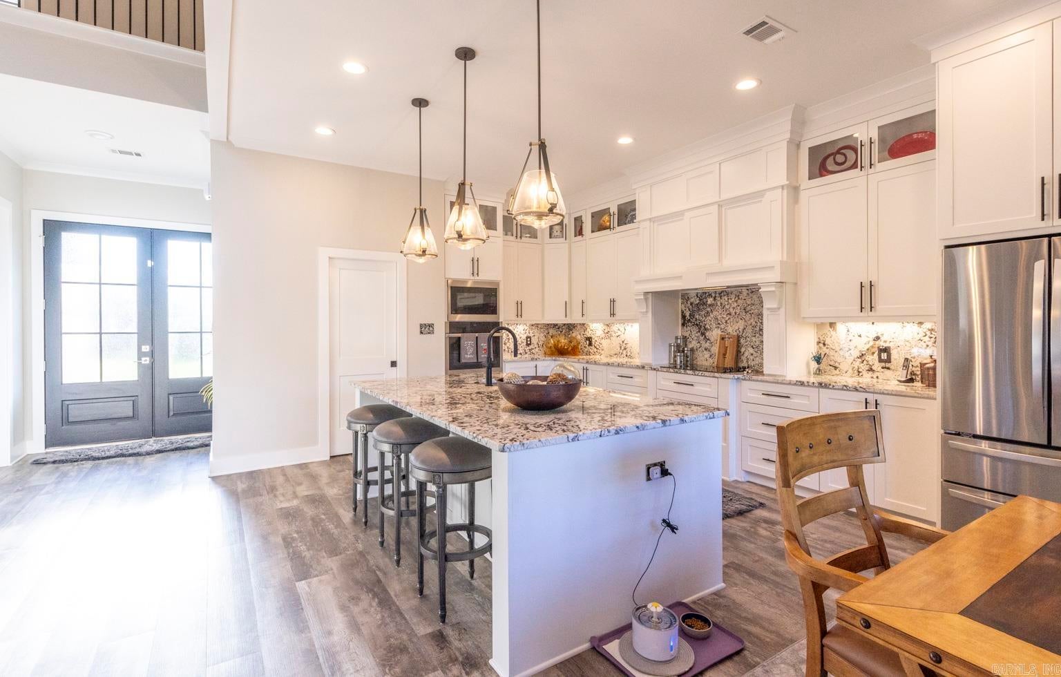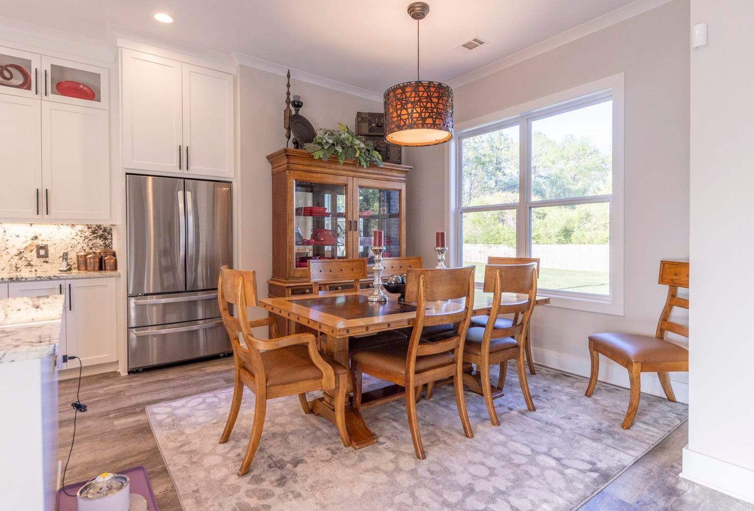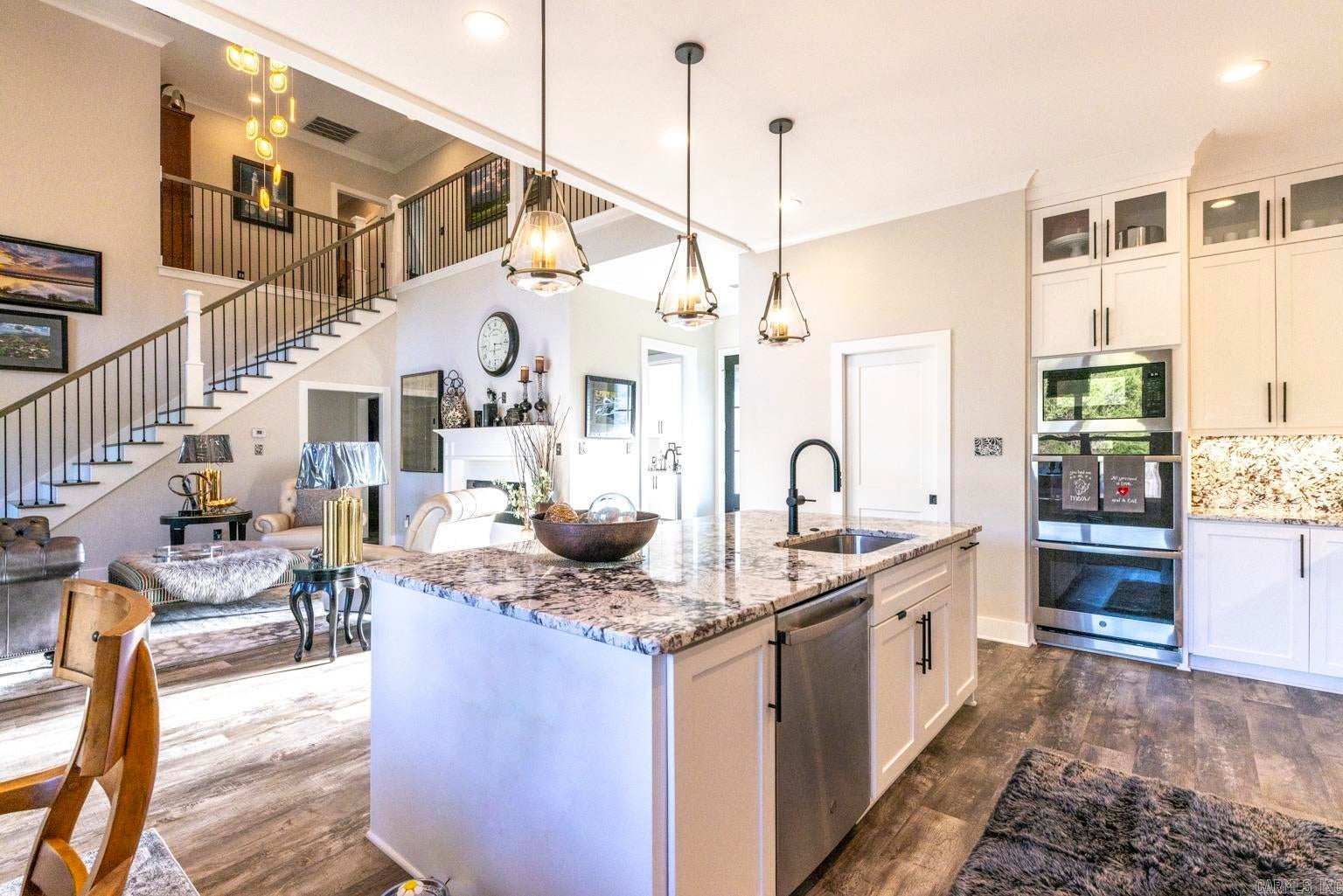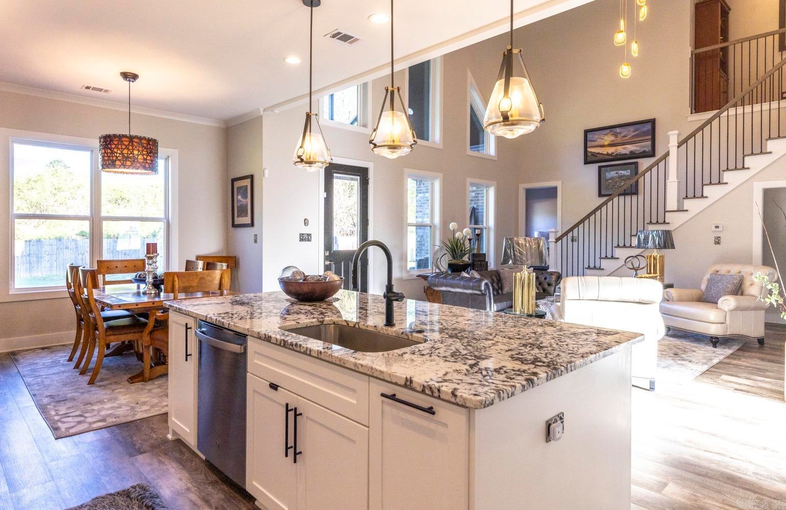Modern luxury blends seamlessly with warmth, sophistication, and timeless design in this stunning white brick residence nestled within the exclusive gated enclave of Mallard Pond. This picturesque community features private streets lined with charming lanterns, a scenic gazebo, and a tranquil dock overlooking the lake creating a peaceful, storybook setting just outside the city limits. Residents enjoy a close-knit atmosphere surrounded by beautiful views and thoughtful amenities that elevate everyday living. Located in the highly sought-after Pleasant Grove ISD just north of I-30, this home offers unbeatable access to top-rated schools, leading healthcare facilities, and a wide array of shopping, dining, and entertainment options. Whether youre enjoying a night out at a local bistro or heading to Shreveport, Louisiana or Little Rock, Arkansas via nearby gateways, convenience is always within reach. From its sleek lines and striking curb appeal to the welcoming front porch, every detail sets the tone for what awaits inside. Step into a sun-drenched interior where soaring ceilings, expansive floor-to-ceiling windows, and a beautifully crafted wooden staircase anchor the open-concept living space. The great room exudes comfort and elegance with exposed wooden ceiling beams and a contemporary gas fireplace, creating a refined yet inviting atmosphere. The chefs kitchen is a true showpiece, featuring stainless steel appliances, a gas cooktop, herringbone-patterned subway tile, glass pendant lighting, and stunning countertops that flow into a sit-down dining surface. A statement chandelier in the dining area adds a touch of drama and completes the cohesive design. Just off the main living area, a single-panel glass door reveals a spacious private office or creative studio, outfitted with custom built-ins and ample room for productivity, inspiration, or quiet focus. Whether youre working from home or pursuing a passion project, this dedicated space offers both style and substance. Upstairs, a versatile loft provides additional living space, ideal for a media room, play area, or quiet retreat. The primary suite is a sanctuary of style, boasting cathedral ceilings, a luxurious soaking tub, a glass-tiled walk-in shower, dual vanities, and a spacious closet with built-in drawers and shelving. Thoughtful extras abound, including a generously oversized mudroom with built-in cubbies, bench seating, and storage nooks perfect for organizing daily essentials and keeping the home clutter-free. This functional hub connects effortlessly to the garage and laundry room, streamlining routines with elegance and ease. Youll also find an oversized laundry room with a utility sink and a roomy garage designed for convenience and storage. Step outside to a beautifully landscaped, fully fenced backyard that offers both privacy and tranquility. The spacious covered porch is perfect for year-round enjoyment whether youre hosting summer barbecues, sipping morning coffee, or unwinding in the evening with friends. With ample room for outdoor dining, lounging, or play, this backyard is a true extension of the home, designed for comfort, connection, and effortless entertaining. With a tankless water heater, premium finishes throughout, and a second gas fireplace, this residence is as efficient as it is elegant. Quiet, secure, and impeccably designed, this Mallard Pond masterpiece defines modern living in a private, gated setting where every detail speaks to quality, style, and thoughtful craftsmanship.