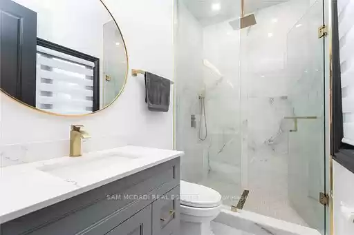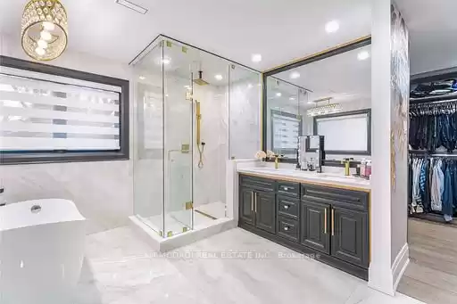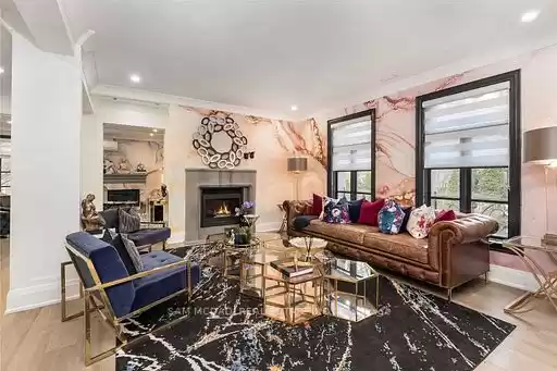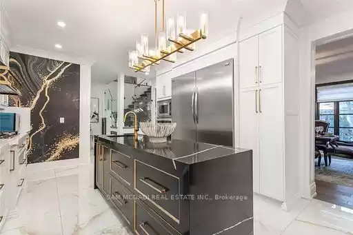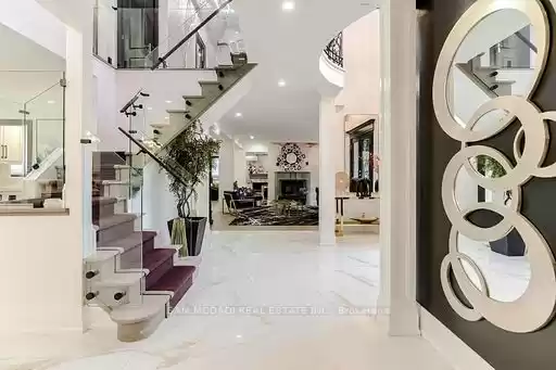 Positioned along South Oakville's most prestigious Lakeshore corridor on a deep 177-ft lot, this extraordinary custom residence offers over 6,500 SF of refined living space where craftsmanship and materiality take precedence. The main level unfolds from the moment you enter w/ immediate architectural impact: natural Crema Marfil marble floors w/ underfoot heating, soaring cathedral ceilings, gallery-style wainscoting, and statement chandeliers throughout. The chef's kitchen is a showpiece w/ backlit onyx marble surfaces, a Sub-Zero fridge & freezer, full Miele suite, and an oversized centre island w/ direct walkout to the deck. A designer powder room in matching onyx w/ a smart toilet completes the level. Four bedroom suites plus a versatile office convertible to a 5th bedroom offer luxurious accommodation. Each boasting custom-fitted walk-in closets and private ensuites; two upper ensuites feature heated floors.The third-level primary retreat rivals a five-star hotel w/ illuminated boutique dressing room and spa-inspired 5pc ensuite featuring a freestanding soaker tub, Travertine marble vanities, and heated porcelain floors. The lower level offers a family room w/ handcrafted fluted Travertine marble gas fireplace, custom media wall, and walkout to a private backyard w/ stone patio & a pergola. A circular driveway accommodates 12+ vehicles for hosting friends and family. Control4 governs 28 individually controlled ceiling speakers, motorized shades, dual-zone HVAC, all lighting, TVs, and security. Built w/ Teflon-coated aluminum roofing, 5" spray foam insulation throughout all exterior walls and roof sheathing, copper and brass plumbing made of the highest quality, and HRV ventilation for exceptional year-round efficiency. Steps to the bustling Bronte Village waterfront with an endless variety of exciting new dining and boutiques options, top-ranked schools, parks, easy access to downtown Toronto & GTA via Bronte Go or the QEW.