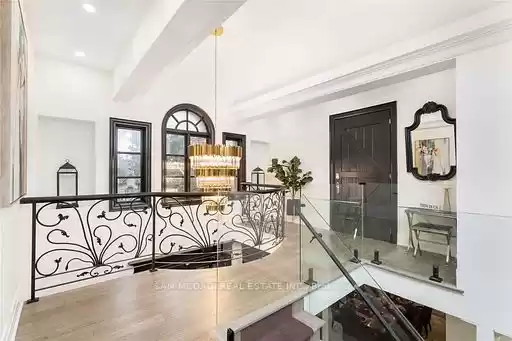 Welcome to this lovely home set on a 198ft wide lot w/ ravine views. Eloquently designed by David Small Designs & constructed by Venchiarutti Builders, this home spans over 11,000 SF w/ 54 bdrms, 9 baths & unparalleled craftsmanship throughout. The captivating main lvl offers an open concept flr plan that intricately combines all the living areas elevated w/ soaring ceilings, expansive windows & a mix of elegant marble & h/w floors. For culinary enthusiasts, the chefs kitchen is adorned w/ top of the line appliances, marble counters, soft closing draws & an eat-in breakfast area. Around the corner, a spice ktchn & butlers servery w/ w/i pantry awaits. The sophistication continues into the alluring sunken 2-storey family rm w/ flr to ceiling double sided fireplace, the lovely living rm w/ cathedral ceilings, the formal dining room, the elegant office & the sun-filled solarium w/ access to your bckyrd oasis. Ascend to the upper lvl via the elevator where 5 charming bdrms are located, including the Owners suite w/ generous size w/i closet, a 5pc ensuite & french glass doors leading to a private balcony o/l the mature greenery. Designed for entertaining, the bsmt provides direct access to the lovely bckyrd & fts a common room anchored w/ a stone fireplace offering unobstructed views of the rec area, the wine cellar and the wet bar. Additional amenities incl: a 2-tiered theatre, a nanny suite, 3 guest bdrms & a sauna. Step out into your private bckyrd oasis - a true retreat designed for entertaining or some R&R. The meticulously landscaped grounds ft a salt-water pool, pool house, lounge areas & a covered porch.