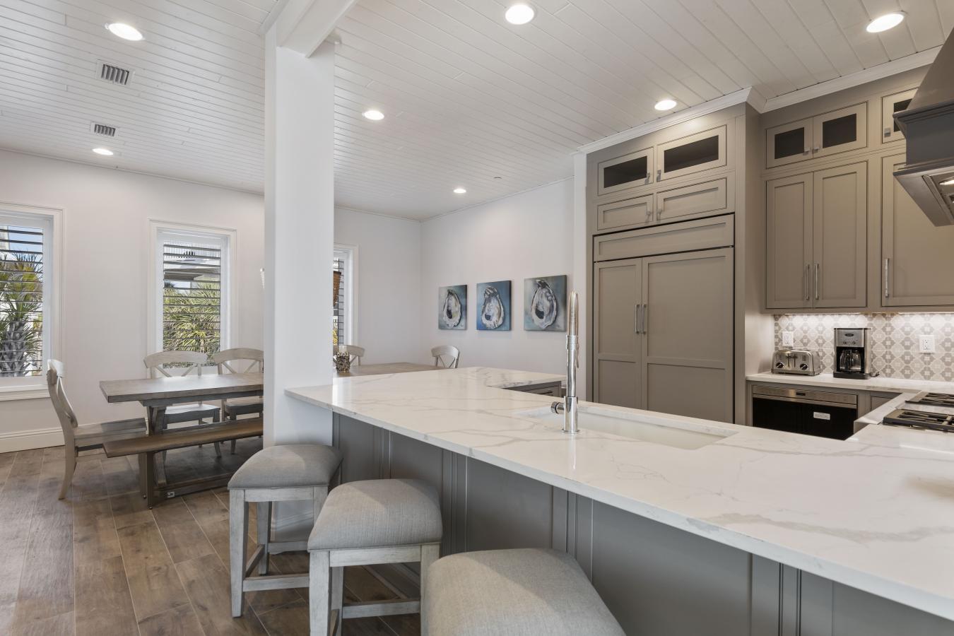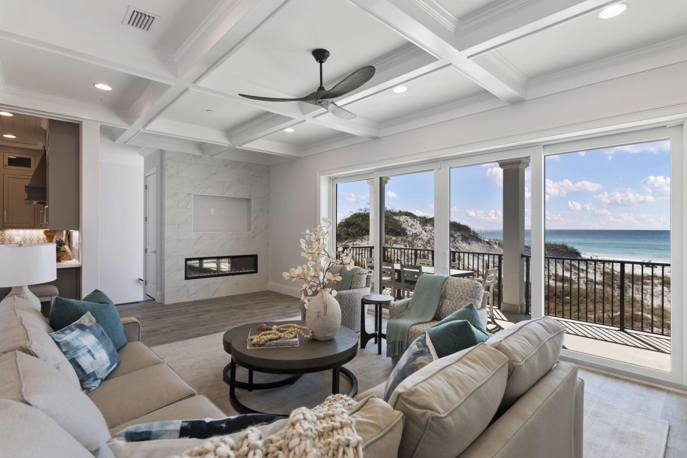 An exceptional Gulf-front residence that defines elevated coastal luxury, perfectly positioned along the pristine shores of 30A. Encompassing 4,216 sq ft with 4 Gulf-front bedrooms, this remarkable property sits on nearly an acre with 109 feet of direct Gulf frontage & private access via a shared dune walkover with Unit A. Designed to capture uninterrupted views of the emerald waters, the home offers multiple outdoor living spaces, including three Gulf-front balconies & a stunning rooftop terrace with a private pool overlooking the coastline. Thoughtfully designed by Eric Craig of B. Designed, the residence showcases impeccable craftsmanship, clean architectural lines, and a seamless, flowing layout. Interiors are enhanced by soaring 9-10ft ceilings, wood-look porcelain tile, custom mosaic details, whitewashed spruce ceilings, and predominantly Kohler fixtures, all complemented by curated lighting and refined finishes throughout. Engineered for both durability and efficiency, the home features ICF construction, impact-rated glass, superior insulation, four high-efficiency HVAC systems with built-in dehumidifiers, a tankless gas water heater, a central vacuum, a security system, and full smart home integration for effortless remote control. The main living level is designed for both relaxed living and elegant entertaining, featuring a Gulf-front great room with expansive windows, a covered balcony, and a chefs kitchen appointed with Sub-Zero refrigeration, a Wolf dual-fuel range with an 8-burner gas cooktop, a wine cooler, custom cabinetry, and a designer backsplash. Architectural details such as coffered ceilings and tongue-and-groove accents further elevate the space. Spanning four levels, the home offers multiple living areas and beautifully appointed bedroom suites, all Gulf-front, each designed to maximize views and privacy. The third level features two Gulf-front suites with balcony access and an additional living area, while the top-floor primary suite serves as a private retreat with sweeping Gulf views and a spa-inspired bath complete with a freestanding tub and walk-in shower. A first-floor game room with a kitchenette and full bath provides a perfect transition from beach to home, ideal for entertaining. The rooftop level is a true showpiece, featuring a private pool, expansive paver deck for sunning, and sleek glass railings that frame unobstructed panoramic Gulf views. An elevator services all four levels for added convenience, and the property includes a 1-car garage with additional parking in the drive. Offered fully furnished and professionally designed, this turnkey residence presents an exceptional opportunity as a primary home, a second residence, or a high-performing investment. With proven rental income of 282K in 2025 and 88K already secured for 2026, the property offers immediate revenue potential alongside long-term appreciation. Ideally located in the heart of Seagrove Beach, this exclusive setting features a private, palm-lined street shared by only 3 other Gulf-front homes. Enjoy close proximity to Seaside, Alys Beach, and Rosemary Beach, along with local favorites such as Old Florida Fish House, Buddys Seafood Market, Beachy Bean Coffee, and Coastside 30A. Outdoor enthusiasts will appreciate nearby Eastern Lake, one of the areas rare coastal dune lakes, as well as Deer Lake State Park, scenic nature trails, and the Timpoochee Trail for biking and exploration. A rare opportunity to own a truly distinctive Gulf-front property in one of 30As most coveted locations.