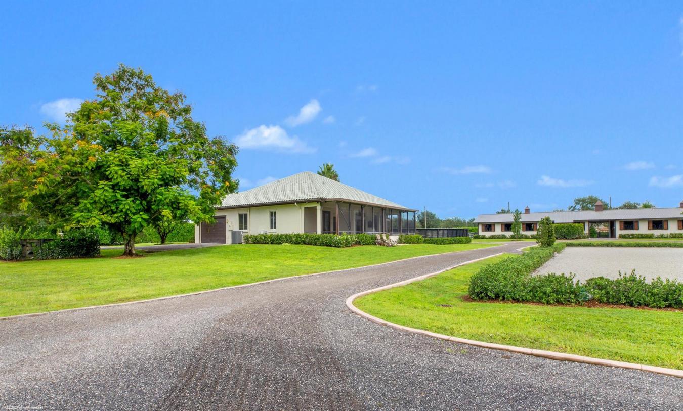 Get Covered! Get of the sun when you buy this 5-acre farm which boasts an updated 3Br/3Bth home, 20 stalls, covered riding arena, outdoor arena & grass field! The main center-aisle barn has 16 stalls with feed, tack & laundry rooms, plus a studio apartment. The new covered arena with mirrored wall has an additional 4 stalls, grooming area, feed & tack rooms, Both arenas have ebb & flow watering systems. There are 7 grass paddocks, round pen, and a 4-horse walker. The house has been freshly updated with new floors, all new bathrooms & updated kitchen. There is plenty of room on the property to build a larger main residence and then current home could then become staff housing. This property has unlimited options and is in a prime location just minutes from all competition venues.
