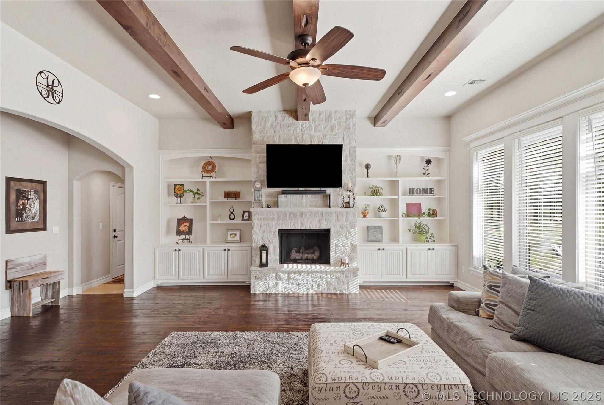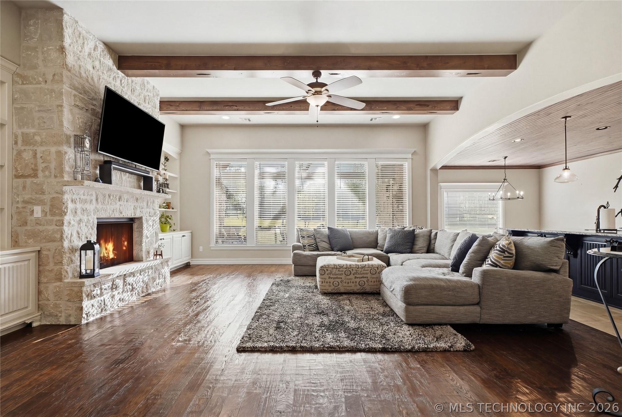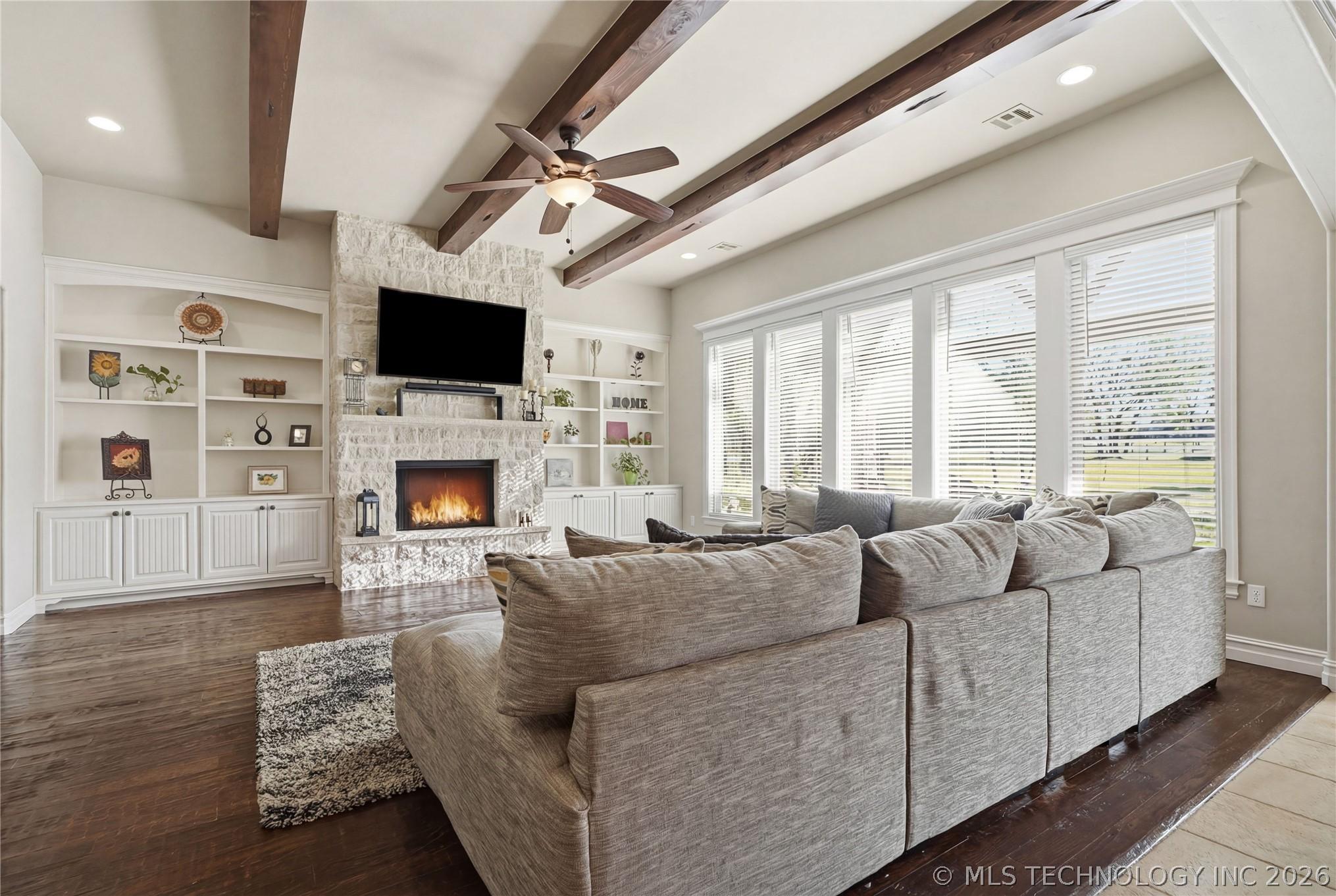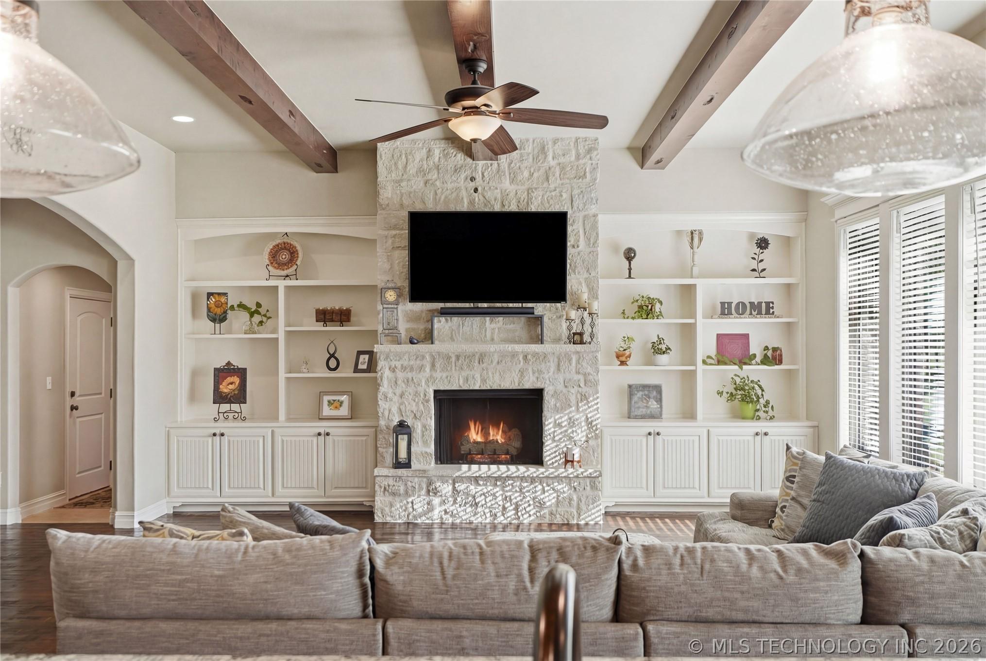 EXECUTIVE HOME MOVE-IN READY! Discover the sought-after Helmerich Plan on a 1.01acre lot, featuring 4 spacious bedrooms, 2.5 baths, a 3-car garage, private study, and versatile game room. Designed with luxury in mind, this home boasts hand-scraped hardwood floors, natural stone countertops, solar blinds installed in living room and dining area, with an app to schedule open and close. Elegant architectural details throughout. Enjoy year-round comfort with spray foam insulation, a high-efficiency 16 SEER AC, and a 95% efficient furnace. Every detail is crafted for style, comfort, and energy savingsready for you to call home!