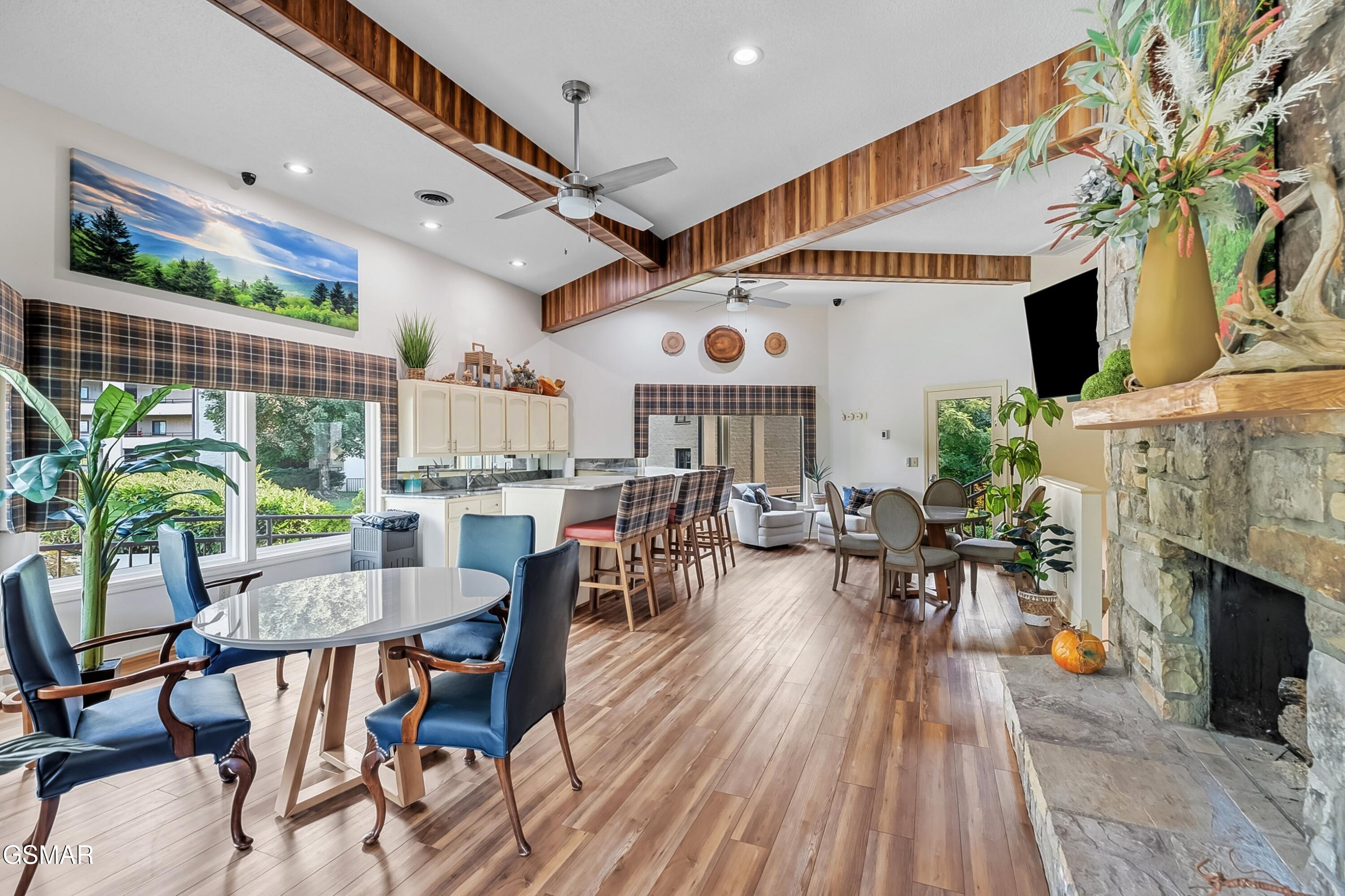 Enjoy the panoramic wooded and mountain views of Mount Le Conte with effortless access from a reserved covered parking spot directly next to the elevator lobby at 1704 Hidden Hills Rd, Unit 504, Gatlinburg, TN 37738. The mountain view is absolutely stunning in person—far more breathtaking than photos can ever show!This spacious 3-bedroom, 2-bathroom condo with 2,537 sq ft is being sold fully furnished and is available for permanent residence or long-term rental use only - short-term rentals are not permitted. The third bedroom is currently used as an office but can easily be converted back to a full bedroom with the addition of French doors and closet doors. Inside, you will find an open living area with a wood burning fireplace, large walk-in closets, a kitchen pantry, and a nice-sized laundry room. The primary suite includes a private bath and walk-in closet, while the private sunroom provides a year-round wooded retreat & mountain views. An HVAC system installed in July 2021 with a 10-year warranty provides peace of mind, along with a designated storage unit in the attic for added convenience.LeConte Towers offers resort-style amenities including a seasonal pool and hot tub, tennis - pickleball court, two grilling areas, beautifully landscaped grounds, and a clubhouse with a reservable kitchen, bar, dining room, and TV lounge. The HOA fee covers the exterior of the unit, community amenities, generators for elevators only for bad weather, water, sewer, internet, chimney maintenance and pest control.Tucked away in a peaceful, private setting, LeConte Towers is located in Gatlinburg's Arts & Crafts District with close proximity to dining, shopping, and the Greenbrier entrance to the Great Smoky Mountains National Park. 5th Floor Units with a panoramic view in this building are rarely available—don't miss this opportunity.Information is taken from tax records and is deemed reliable but not guaranteed. Buyer to verify all details to their satisfaction.