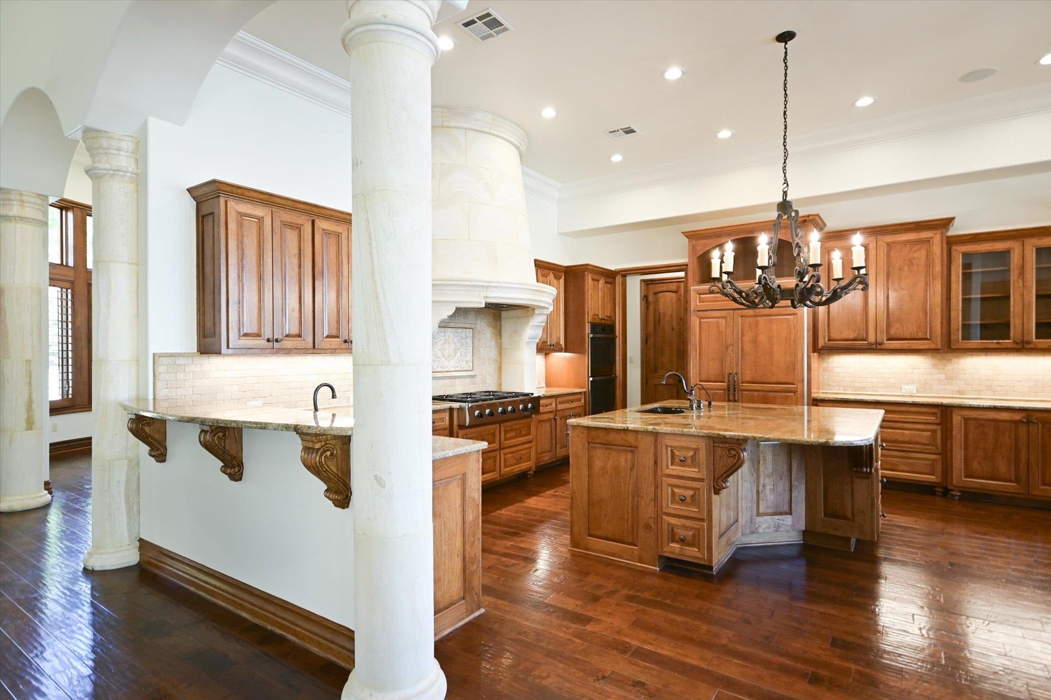 Positioned on 136 feet of prime open-water frontage along Lake LBJ, this custom Horseshoe Bay residence captures expansive lake views from nearly every room. Set on a quiet cul-de-sac and framed by lush, park-like landscaping, the property offers a private waterfront setting. Recently refreshed with a complete interior paint update, the home feels brighter and more in tune with its sun-filled surroundings. Soaring ceilings and walls of windows bring in natural light while connecting the living spaces to the lake beyond. Wood flooring anchors the main level, where the great room with a travertine fireplace flows into the dining area and kitchen. The kitchen is designed for everyday living and entertaining, featuring a large island, walk-in pantry, gas cooktop, double ovens, and Sub-Zero refrigerator. A casual dining area overlooks the water and enhances the lakefront setting. The main-level primary suite offers lake views, a sitting area, spa-style bath with dual vanities, soaking tub, walk-in shower, and generous closets, along with an exercise room. Two additional ensuite bedrooms, a study with fireplace, wine room, powder bath and laundry complete the main floor. Upstairs, two ensuite bedrooms and a media room with balcony all enjoy lake views. Outdoor living includes a covered patio, outdoor kitchen, and a resort-style pool with grotto waterfall and spa. The waterfront features a covered hydraulic boat slip with touchless cover, dual PWC lifts and composite decking. Schedule your private showing today.