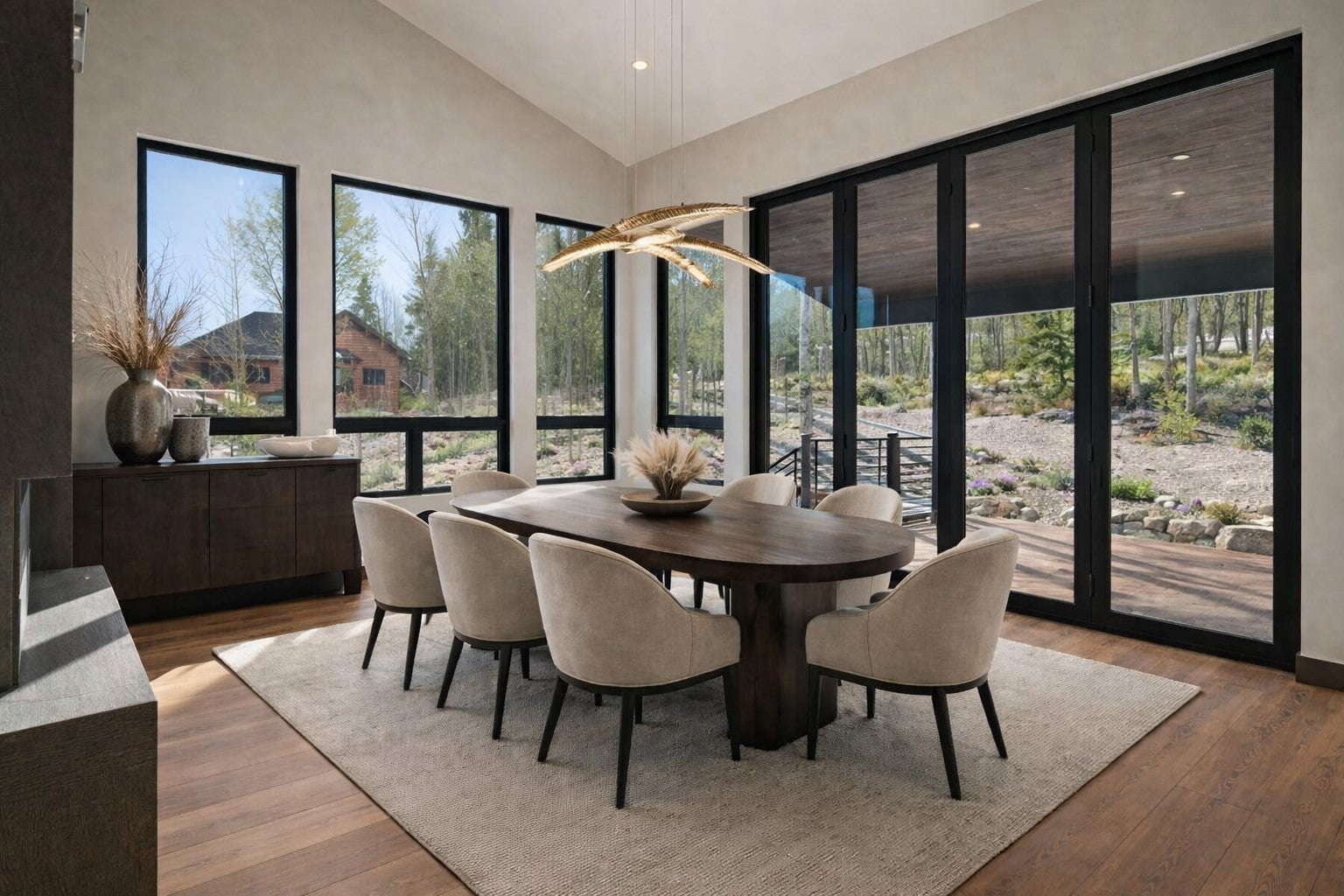 Just completed new construction in the Eagles Nest Golf Course community, this Silverthorne Mountain Modern Estate showcases breathtaking views from nearly every window, including the Keystone ski area in the distance. Designed for entertaining and everyday comfort with an elevator, the open floor plan features multiple living areas, floor-to-ceiling windows, and seamless indoor-outdoor living.