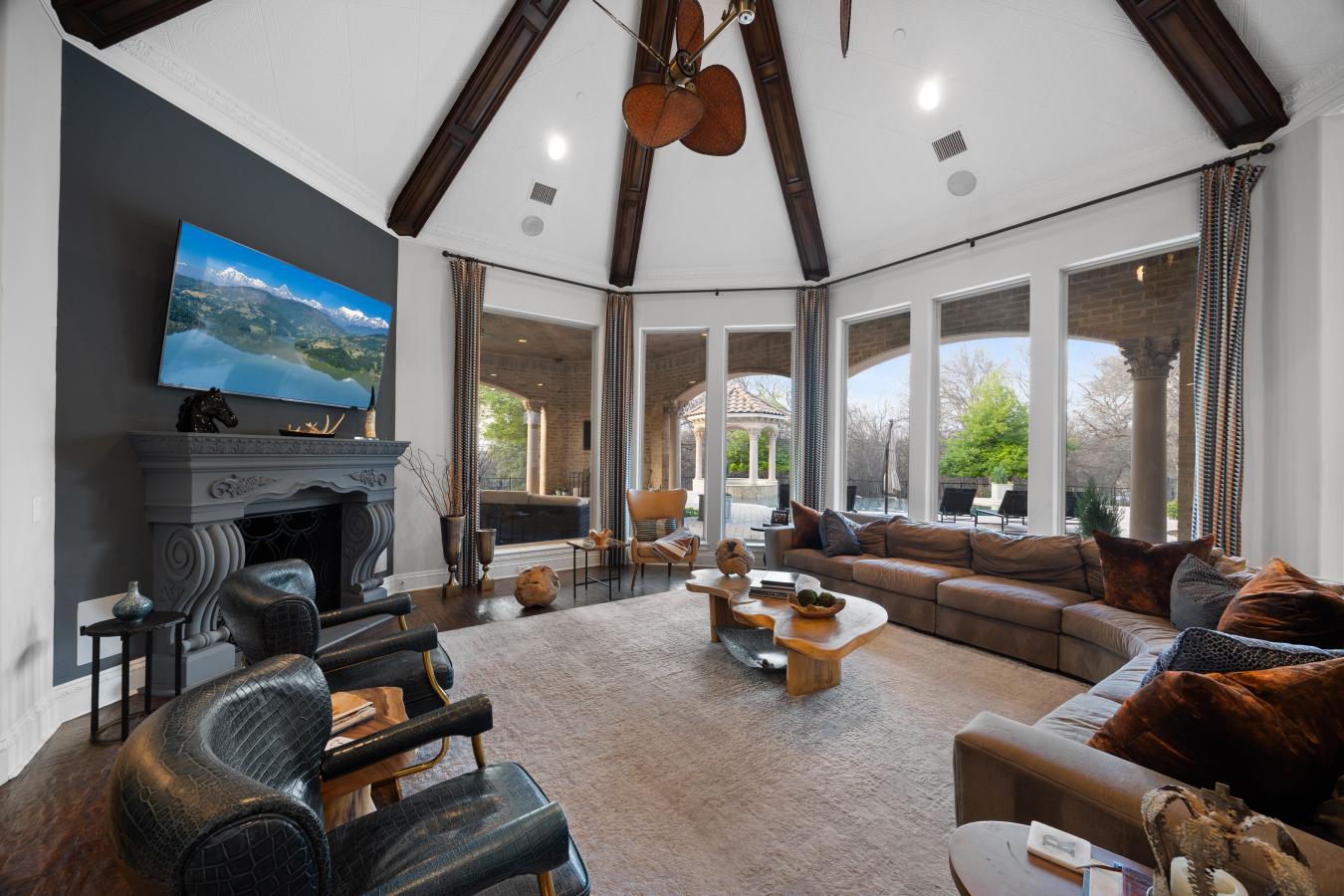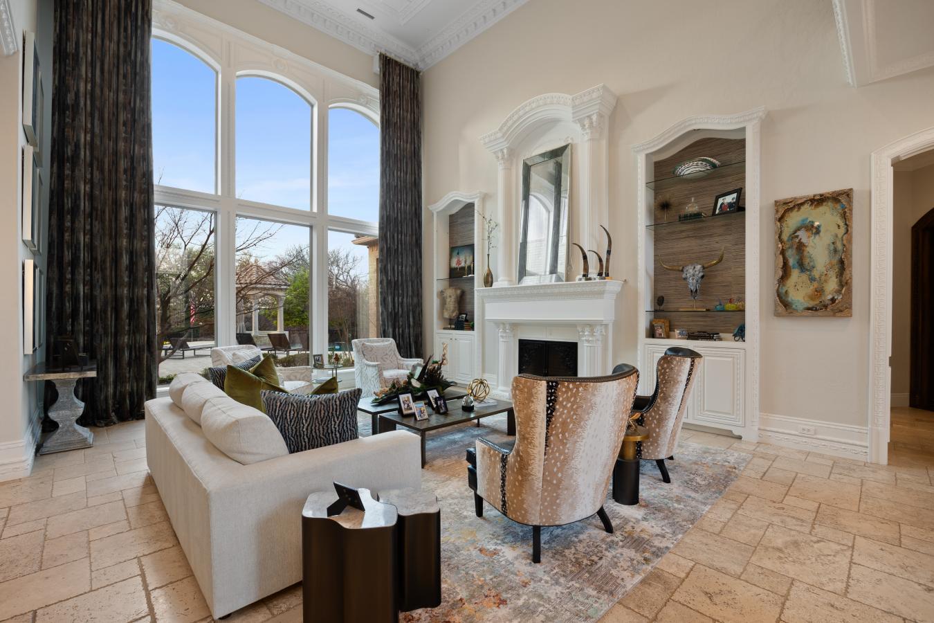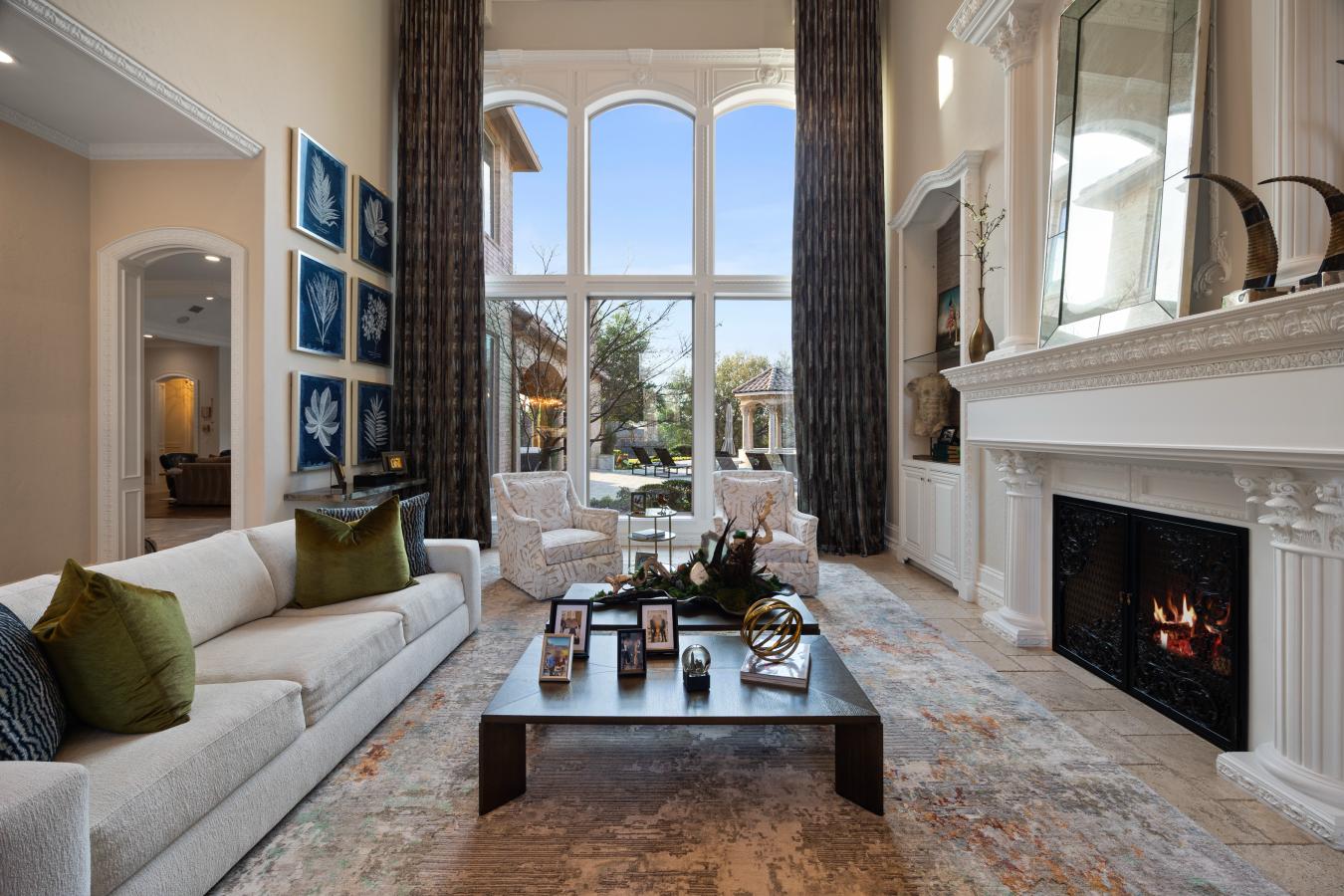 Welcome to Texas Living! Magnificent custom home thoughtfully created for elevated family living. This light-filled home offers soaring ceilings, arched windows, and a warm neutral palette. Timeless finishes include European engineered oak hardwoods, decorative lighting, plastered walls, and custom white oak cabinetry.The open-concept kitchen features quartz countertops and a sculptural plaster vent hood, flowing into the living area with a dramatic plastered fireplace. Custom built-ins, wood paneling, and a cozy reading nook with built-in bookshelves add style and function.Spa-inspired baths include floating vanities, freestanding soaking tubs, and porcelain tile. Home offers 6 bdrms, 6 full baths, 1 1/2 bath, 2 flex rms, plus a garage apartment with full bath. The primary suite includes an additional bdrm and full bath.Enjoy year-round outdoor living with a pool, outdoor kitchen, and outdoor fireplace.