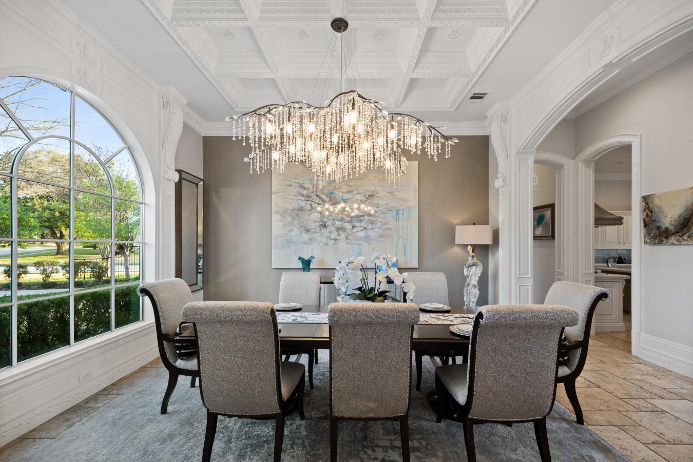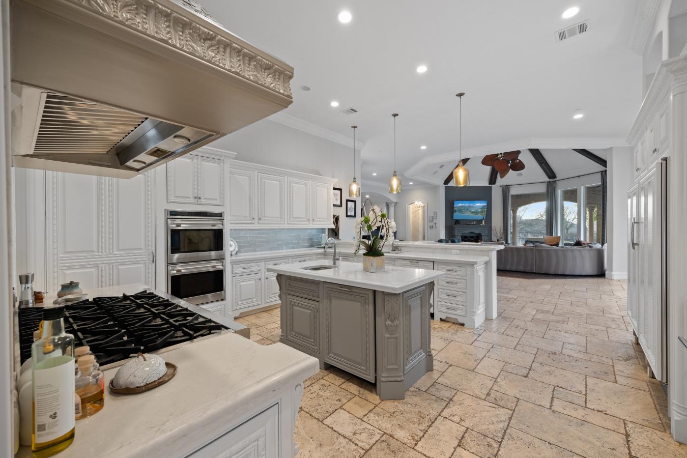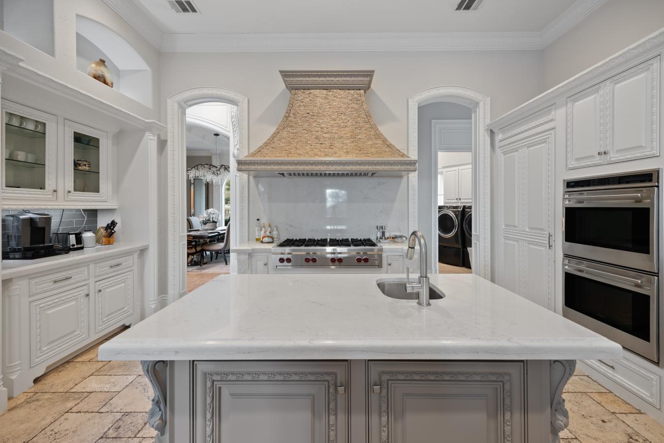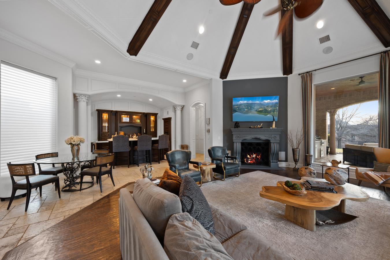 Welcome to Texas Living! Magnificent custom home thoughtfully created for elevated family living. This light-filled home offers soaring ceilings, arched windows, and a warm neutral palette. Timeless finishes include European engineered oak hardwoods, decorative lighting, plastered walls, and custom white oak cabinetry.The open-concept kitchen features quartz countertops and a sculptural plaster vent hood, flowing into the living area with a dramatic plastered fireplace. Custom built-ins, wood paneling, and a cozy reading nook with built-in bookshelves add style and function.Spa-inspired baths include floating vanities, freestanding soaking tubs, and porcelain tile. Home offers 6 bdrms, 6 full baths, 1 1/2 bath, 2 flex rms, plus a garage apartment with full bath. The primary suite includes an additional bdrm and full bath.Enjoy year-round outdoor living with a pool, outdoor kitchen, and outdoor fireplace.