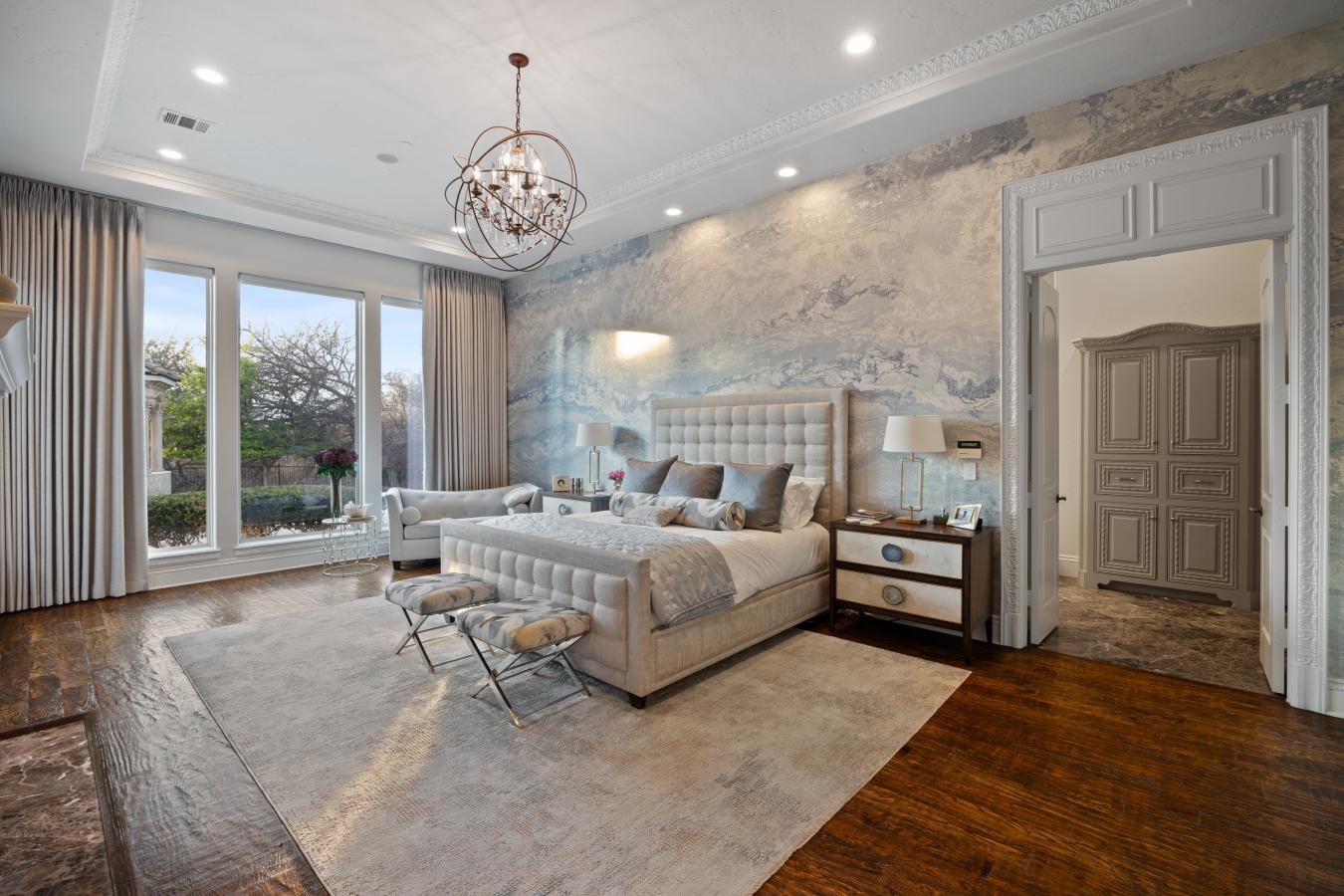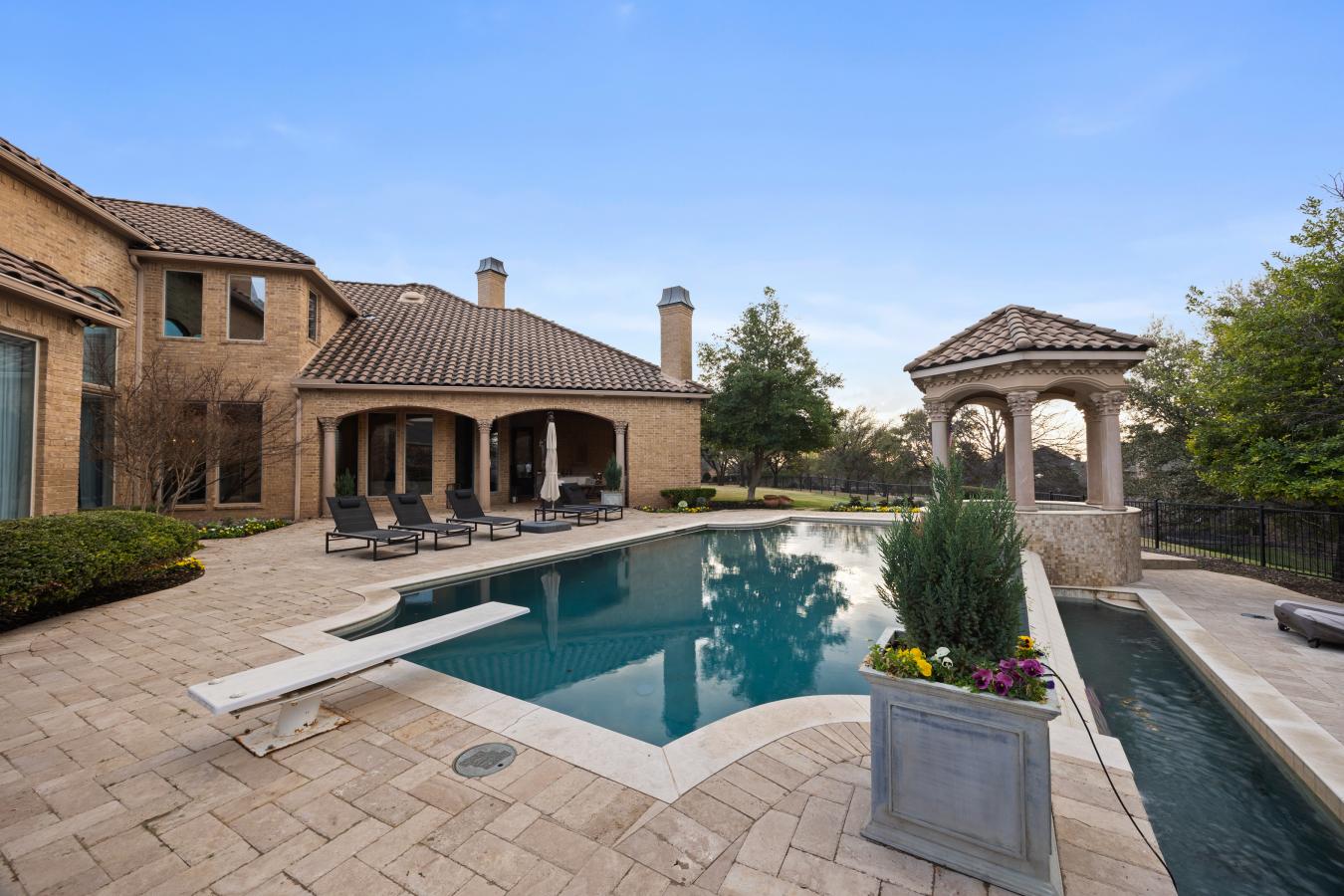 "One of the Original Custom Builder Estates of Starwood." Originally crafted as the personal residence of luxury builder Peckham, this remarkable Starwood estate reflects the elevated craftsmanship and architectural presence reserved for a builders own home. Set on a rare .668-acre corner lot backing a tranquil greenbelt and creek, the property offers privacy, scale, and breathtaking views rarely found in Friscos premier gated community. Spanning more than 8,600 square feet, the Mediterranean-inspired residence blends timeless architecture with thoughtful modern updates. Inside, interiors reimagined by Dallas designer Lauren Dickson of LDI Studio introduce refined flooring, designer lighting, and beautifully curated living spaces centered around the formal living room, the great room, the chefs kitchen, and the dramatic reserve bar, creating the ultimate environment for entertaining and gathering. Outdoors, an infinity-edge diving pool and raised spa overlook the lush creekside setting, offering a private resort-style backdrop for everyday living. The home continues to unfold with a boutique-style primary dressing room, a screening room for unforgettable movie nights, and an upstairs game lounge with a wet bar-perfect for hosting friends over a great game of poker. A rare opportunity to own one of Starwoods original estate properties-a legacy home designed for living, entertaining, and creating the next chapter of memories.