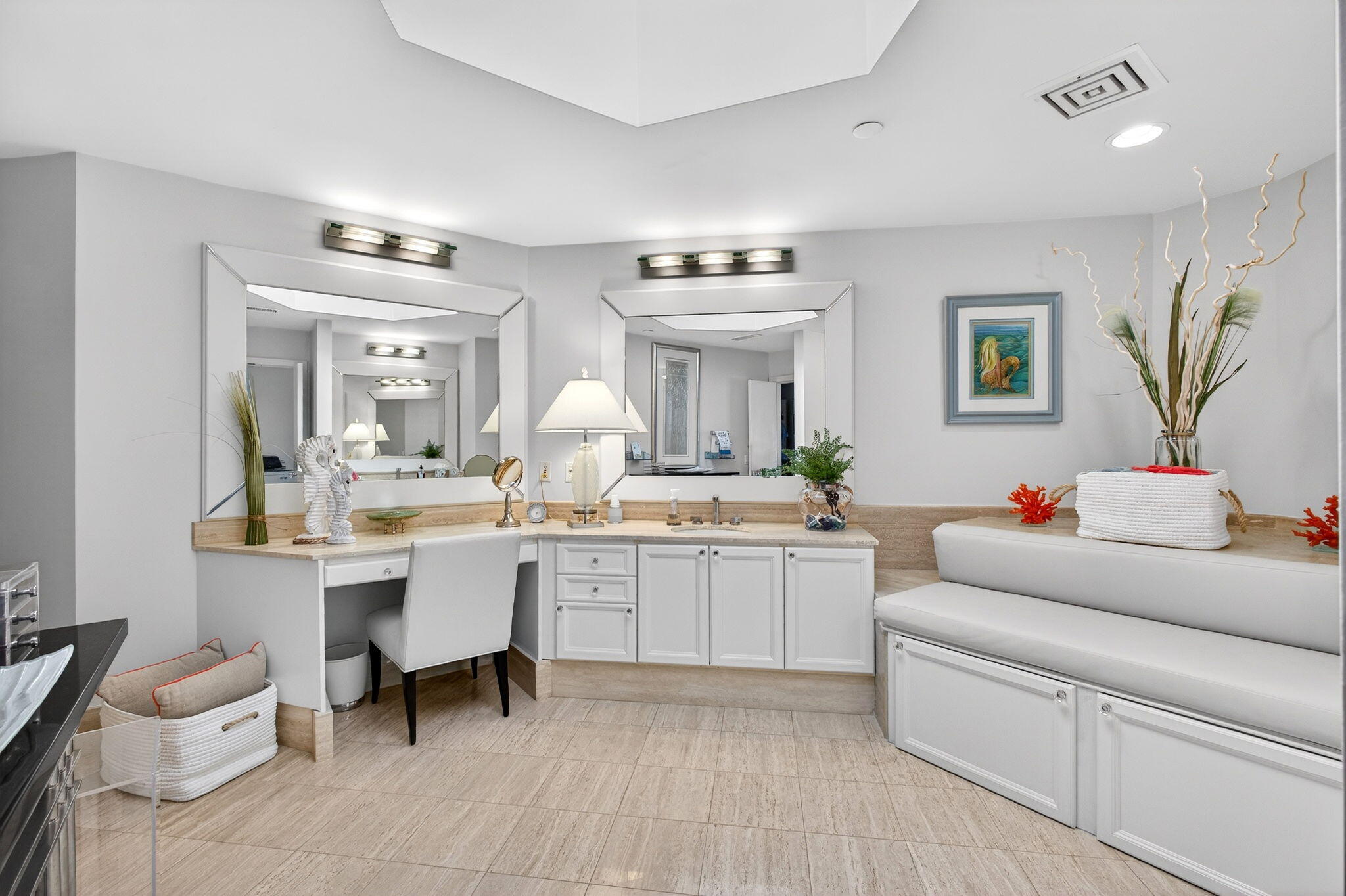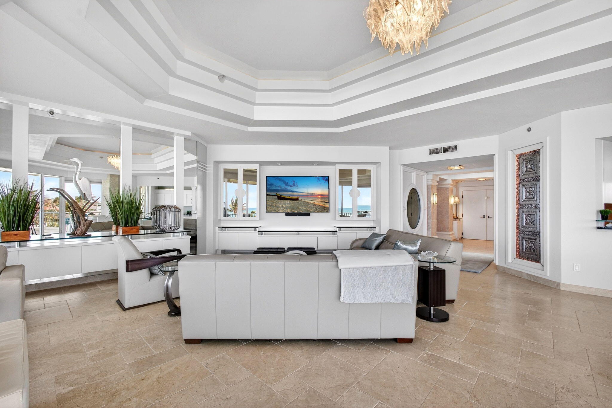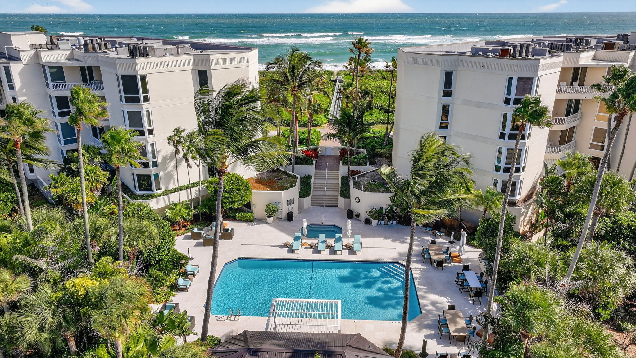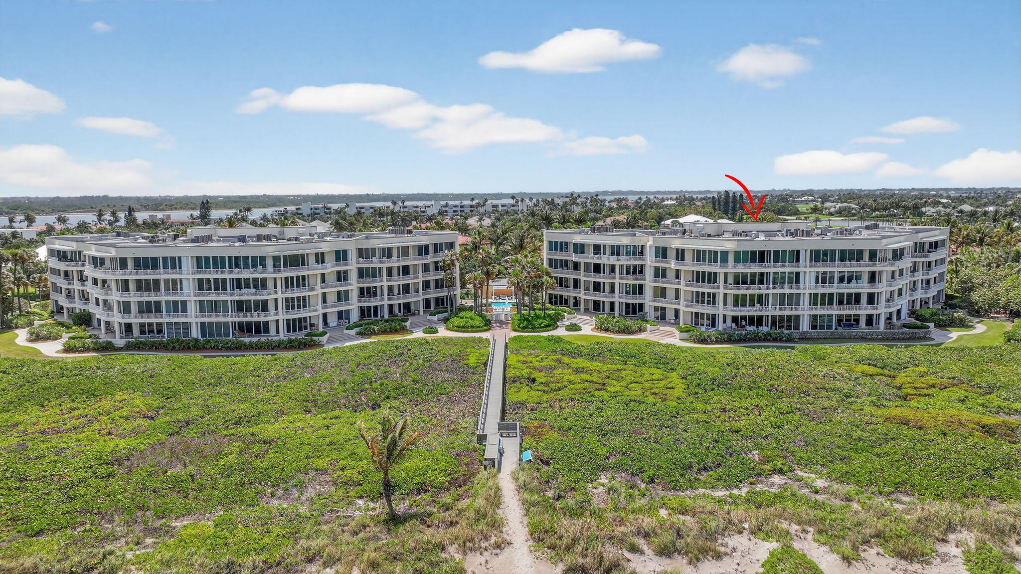Experience elevated coastal living in this three bedroom, three and a half bathroom Sailfish Point PENTHOUSE with unobstructed Atlantic Ocean views. Arrive via elevator access shared by just two residences per floor, into a light-filled interior with volume ceilings, skylights, and open-concept living.