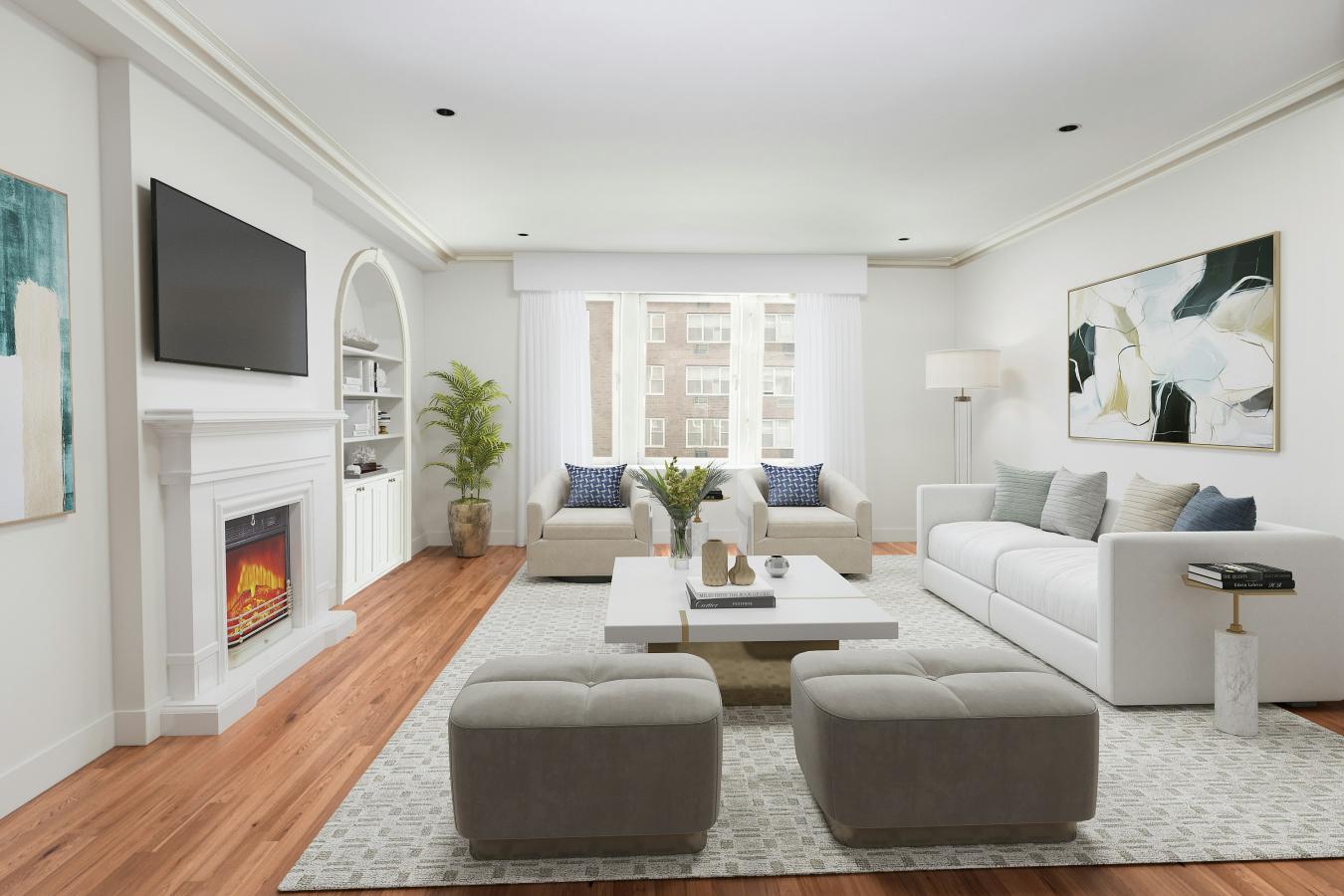 A rare opportunity awaits at this elegant Madison Avenue residence, ideally positioned at the coveted crossroads of 79th Street. Arriving via a semi-private landing, the home opens to a gracious 35-foot gallery adorned with barrel-vaulted ceilings and refined cove lighting-an impressive introduction to the space. The generously proportioned living room, bathed in natural southern light, features a beautiful gas fireplace as its anchor. The homes organic flow continues into a grand formal dining room, distinguished by its own unique decorative fireplace-perfect for both intimate dinners and larger gatherings. The newly renovated kitchen suite is thoughtfully designed with rich walnut cabinetry, extending seamlessly into a separate butlers pantry and an inviting breakfast room. Outfitted with top-of-the-line appliances-including two Wolf ovens, a five-burner Wolf cooktop, a Miele refrigerator, and a wine refrigerator-the space combines function with sophistication. Storage throughout the home is abundant. This classic residence offers three spacious bedrooms, each with its own en-suite bathroom, along with oversized new windows, soaring 103" ceilings, and central air conditioning for modern comfort. Located at 39 East 79th Street, this full-service building offers a full-time doorman, live-in superintendent, private storage, and remarkably low maintenance charges. Pets are welcome.