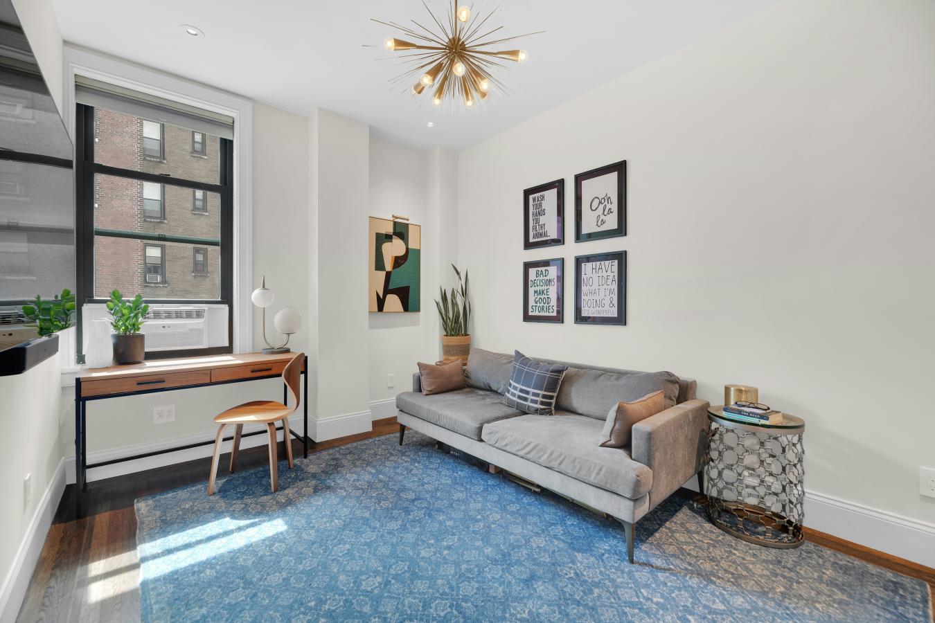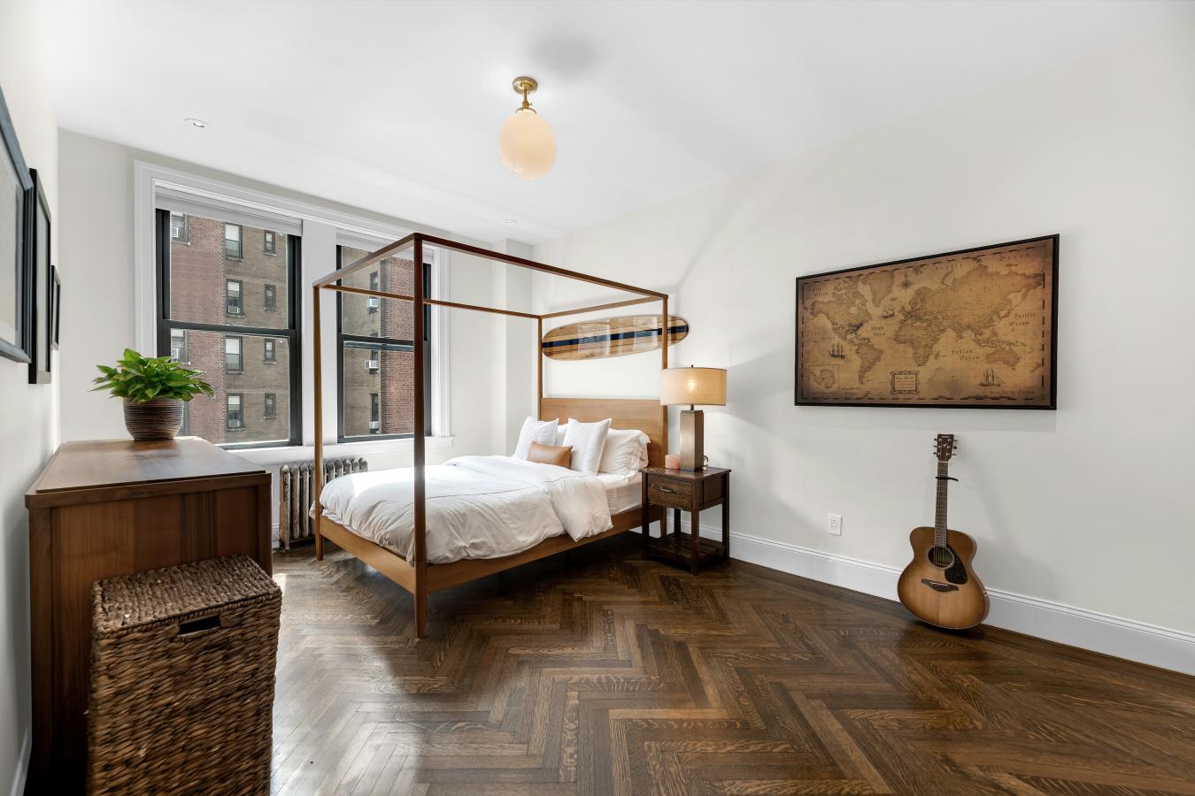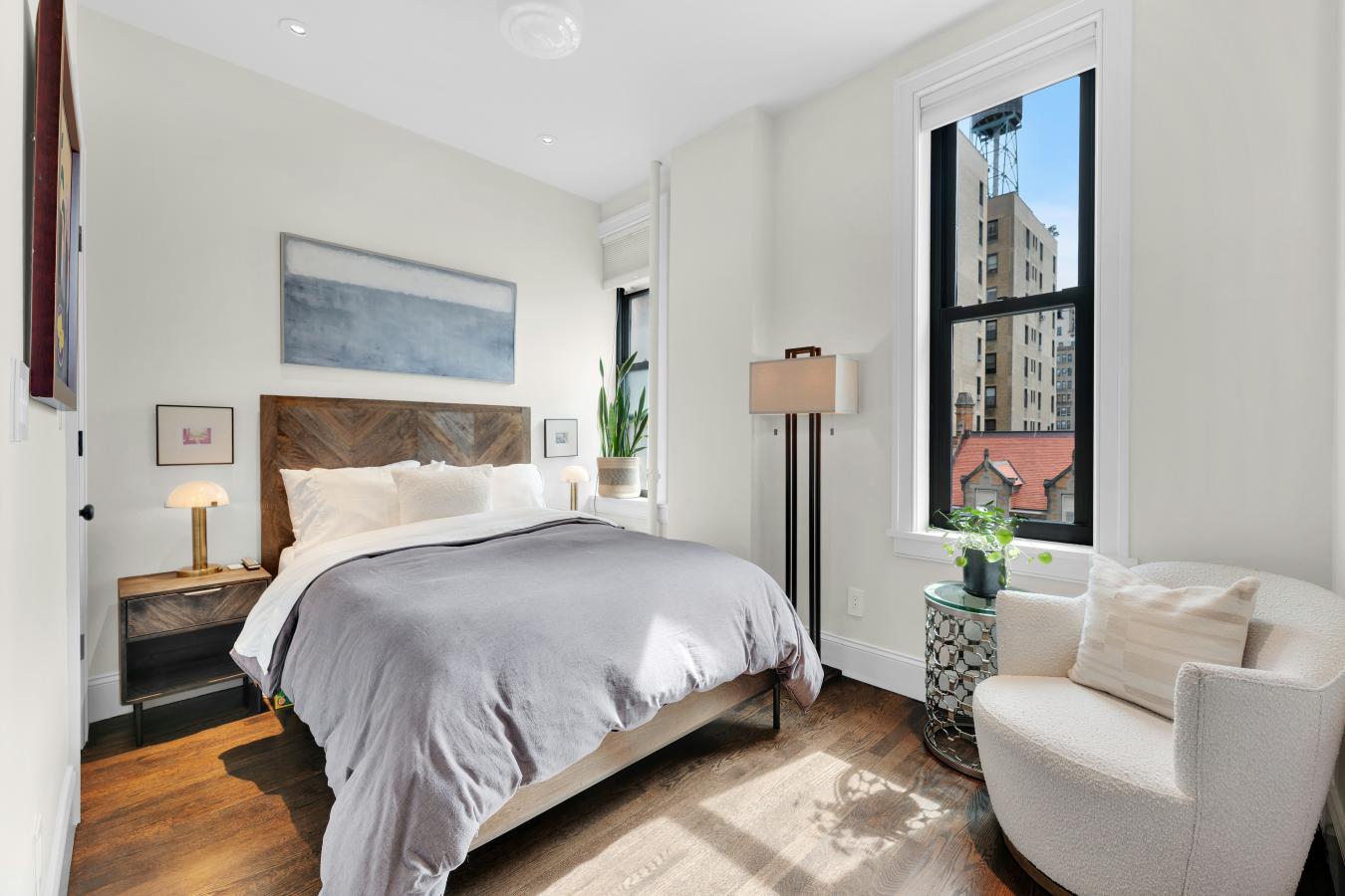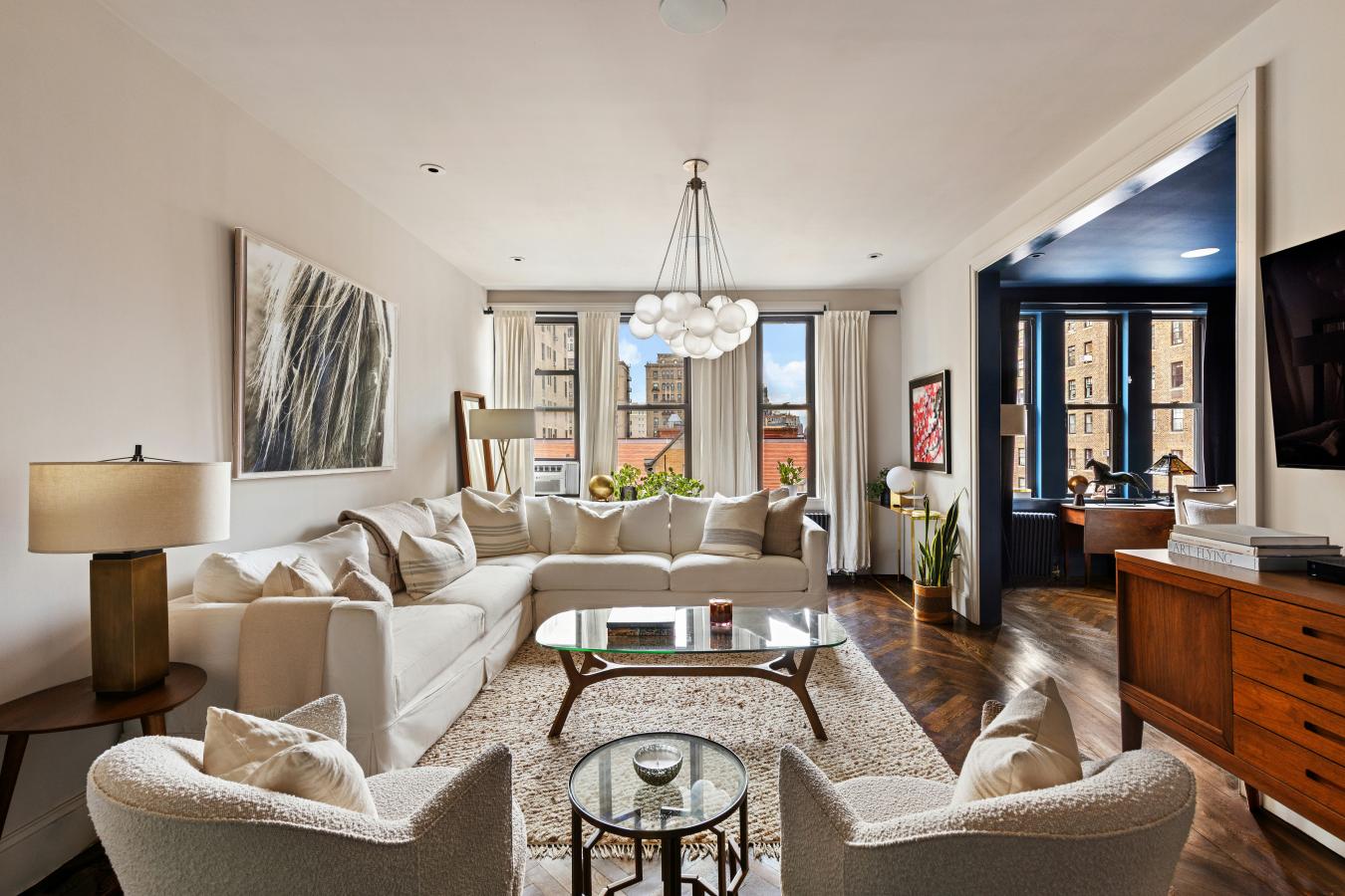 Sun-flooded High Floor Corner Classic 7 on West End Avenue just off West 82nd Street has been exquisitely renovated and smartly reconfigured to live comfortably as a true four-bedroom, three-bathroom home, with gracious space for entertaining. Grand proportions, high ceilings, and oversized windows add volume to this expansive footprint. Attention to detail is evident throughout, from recessed lighting to bespoke fixtures. The layout has been intelligently reimagined to maximize flexibility and comfort while keeping intact the double wide Living Room and Formal Dining Room (Enjoy the 26 foot-wide expanse of gathering space with custom dimmable recessed lights, chandeliers, and built in ceiling speakers). The windowed eat-in kitchen is exquisitely appointed with stone countertops extending seamlessly through the backsplash, and chic custom cabinetry accented with interior lighting. Stylish and trimmed out with the highest level of finish, this chefs-grade kitchen is also practical, featuring high-end appliances including a 42" wide Sub-Zero refrigerator, 36" Bertazzoni induction range, Wolf ventilation hood (vented out) and Sharp microwave drawer. A custom built-in banquette is perfectly positioned beneath the windows, creating an inviting dining area overlooking the charming architecture across West End Avenue. The best surprise, hidden in an oversized, extra deep pantry cabinet, is an XL-sized washer/dryer (vented out) with approximately 4.5 cubic feet capacity offering meaningfully greater volume than typical w/d units found in nyc residences (the ultimate luxury!!!!). The primary wing serves as a private retreat, featuring corner East and South facing windows, brilliant sunlight, an expansive custom walk-in closet and a spa-like windowed bathroom with double vanity, soaking tub, and steam shower. Wake up to gorgeous views of the exquisite buildings with sight lines that extend to the Beresford. Secondary bedrooms are flooded with natural light from bright Southern exposure throughout the day. Well- proportioned, they easily fit king-sized beds, or have ample space to lay out a den with an open up sofa sleeper. Full bathroom off the hallway services bedrooms 2 and 3, and functions as a powder room for guests. Luxurious finishes include Calacatta penny tile, Gold Kohler fixtures, and 3 different luxurious shower heads. A former maids room has been expanded into a true fourth bedroom/bathroom suite serving the current owners as a guest wing, with ample space for a queen bed, end tables, and large bureau. The former maids bathroom was fully relocated and expanded to incorporate a generous sized 3 foot deep shower stall with wall hung toilet, and elegant custom laid mosaic tile floor. The home is outfitted with all new electric and plumbing, including thoughtful details such as an entry "electric kill switch" control for departure and arrival in the foyer. Ceilings are dropped enough to accommodate the future installation of central air conditioning, as the current owners had planned, but didnt take the added time needed to complete. With everything else rebuilt and refinished, the original hardwood herringbone floors have remained beautifully preserved, retaining the charm and history of the homes prewar heritage. 465 West End Avenue, also known as The Umbria, is a well-maintained prewar cooperative designed by the esteemed architect D. Everett Waid. The building has undergone significant upgrades, including modernized self-service elevators (transitioned from attended operation) and a fully restored and renovated lobby, enhancing convenience and adding to curb appeal in this grand prewar co-op with impeccable staff and generous sized, sprawling homes. Apartments rarely come available in this beloved UWS building as it is a coveted address with very low turnover!