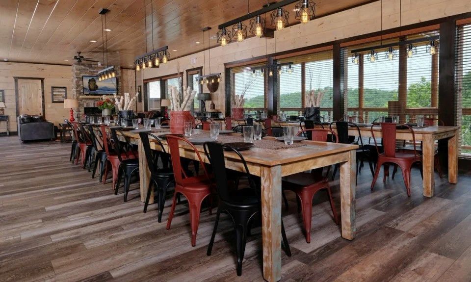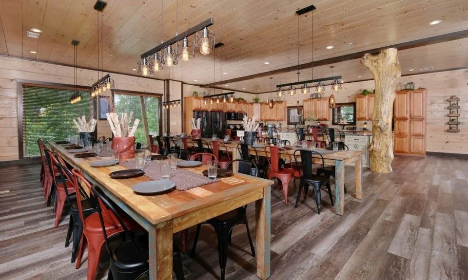 : Two 16-bedroom luxury lodges side by side creating an extraordinary 32-bedroom, 34-bath Smoky Mountain retreat compound. Welcome to Big Forest Retreat & Big Forest Lodge, each offering 9,160 square feet of upscale design and comfort and accommodating 67 guests per lodge -- 134 guests combined.