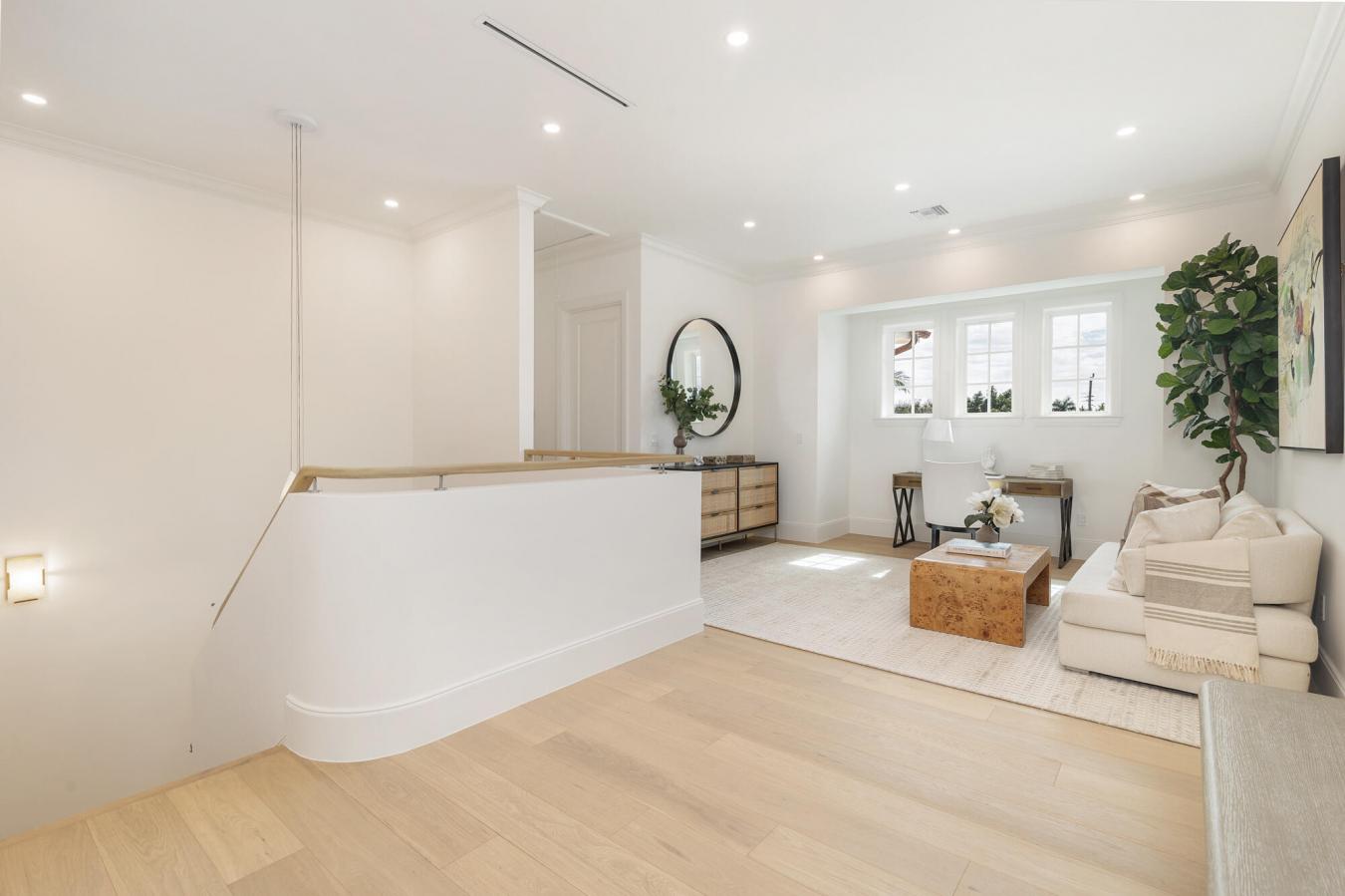 Situated yards away from Flagler Drive and the Intracoastal Waterway rests this stunning new construction home. Featuring 5 bedrooms, 5 full bathrooms and 2 powder rooms, this 5,660 total square foot home was built and designed with extreme attention to detail. Walking in the home, your eyes immediately affix to the incredible millwork. Every inch of this home was designed for the most discerning buyer. The kitchen is a dream come true boasting marble countertops, custom made cabinets, Thermador appliances, a Lacanche Range and a butlers pantry with ample storage space. With a built-in back-lit bar and custom built in shelving, the open concept family/ living/ dining room is both cozy and luxurious. Highlighting a first floor primary bedroom with cathedral ceilings, a massive walk-in shower/ tub wet room, an oversized dual walk-in closets, a private laundry room and a 7 x 26 private office/ loft. The primary bedroom and all its finishes were very obviously curated by a professional designer.The second floor offers a large loft area, laundry room and 4 bedrooms each with an en-suite bath. Step into your own private Florida oasis. This resort-style backyard is anchored by a sparkling pool framed by lush, mature landscaping for total privacy. A spacious covered loggia offers the perfect place to relax or entertain. The cabana provides an outdoor kitchen and a dedicated pool bath for convenience. Designed for year-round enjoyment, this outdoor retreat blends comfort, beauty, and coastal living at its finest. Close to Worth Avenue shopping, Five-Star restaurants, I-95, PBI Airport, Mar-a-Lago, fabulous white sand beaches and much more.