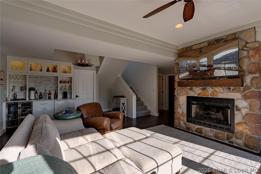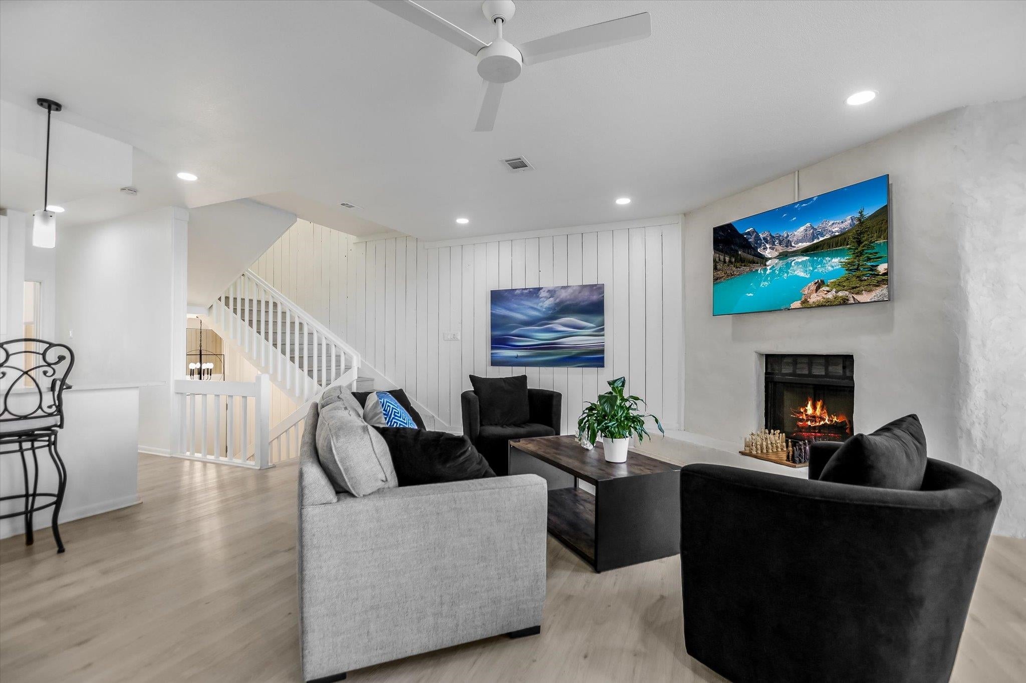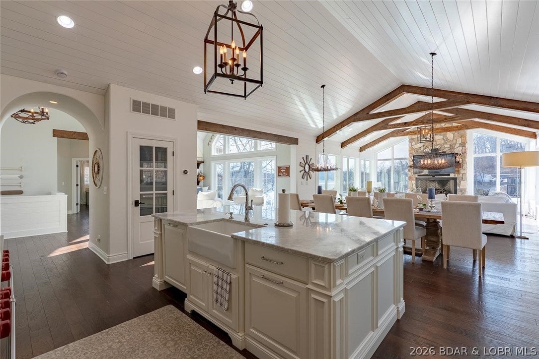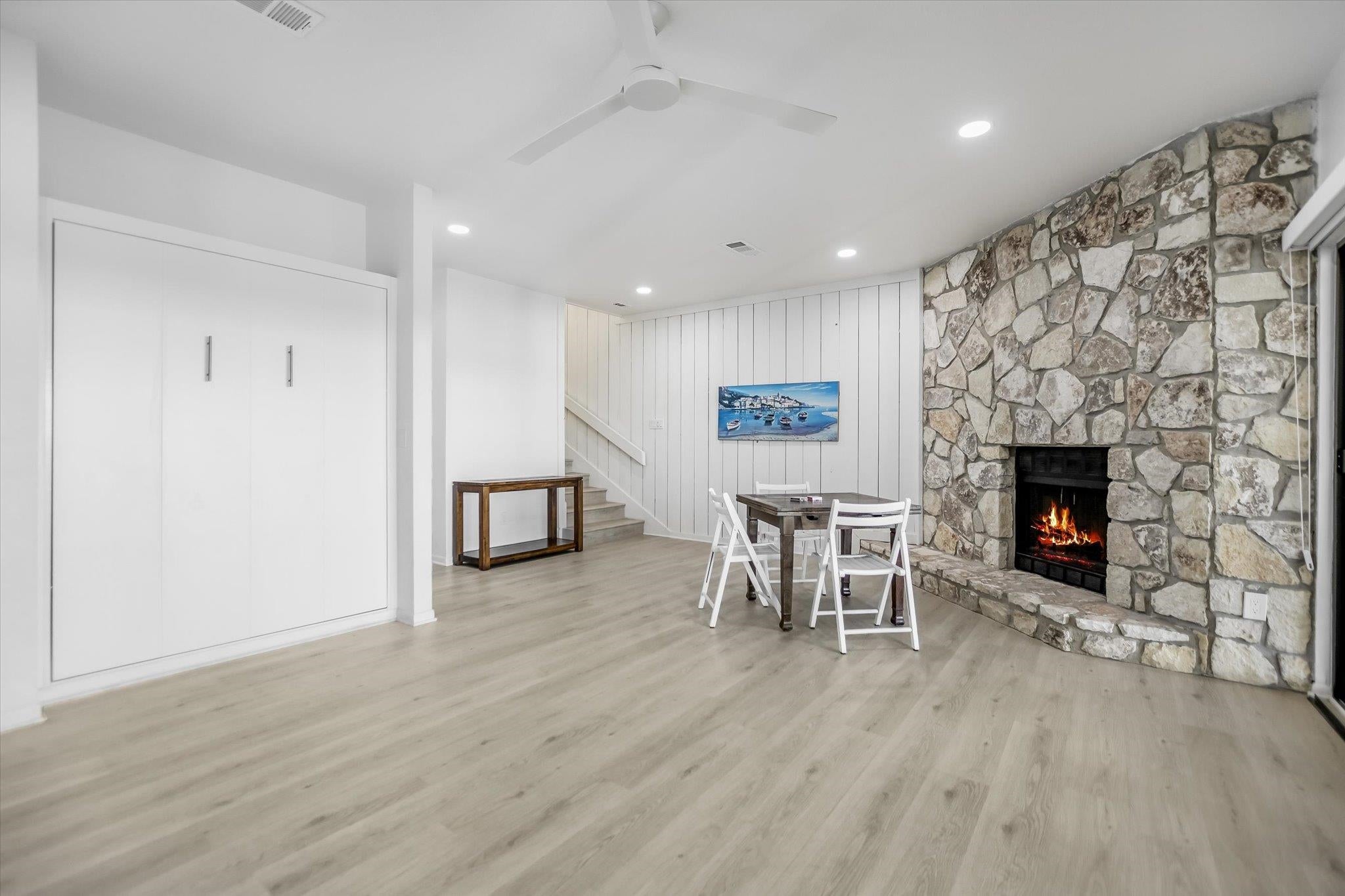 Remarkable turn-key lake home that truly checks every box! Recently updated with thoughtful design and luxury finishes, this home impresses with vaulted ceilings, walls of windows, and stunning lake views. The inviting hearth room flows into a gourmet kitchen featuring high-end appliances, extensive custom cabinetry, and a spacious dining area centered around a beautiful stone fireplace.