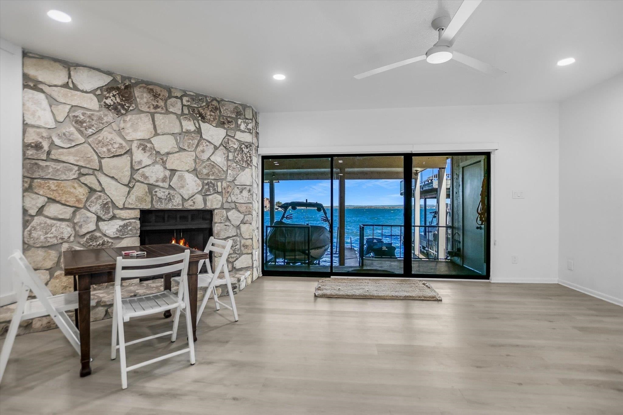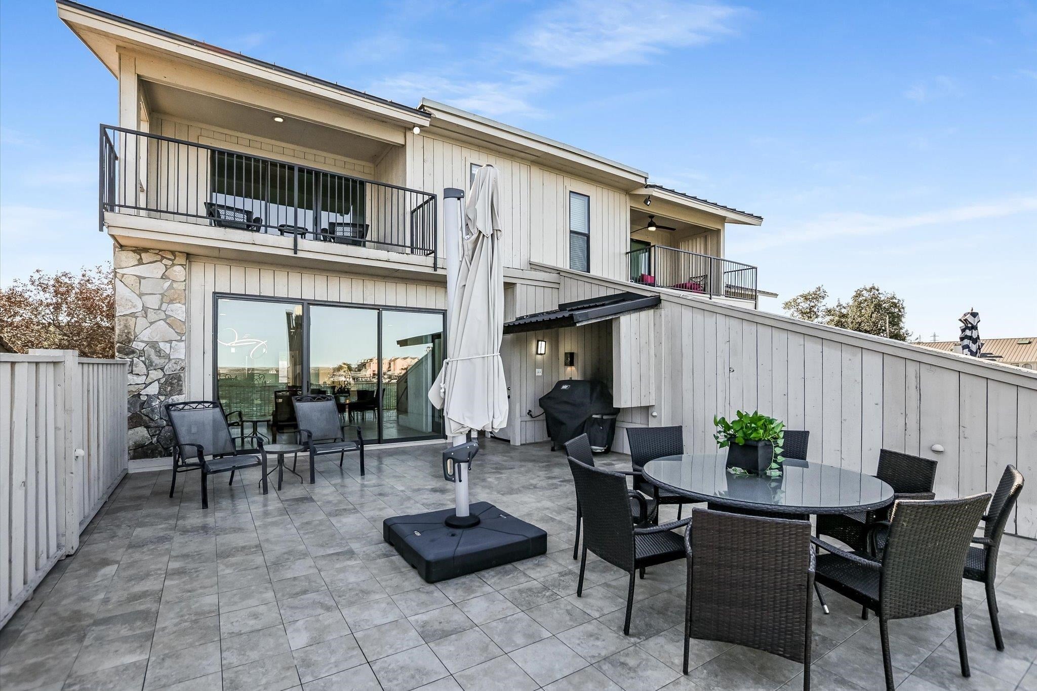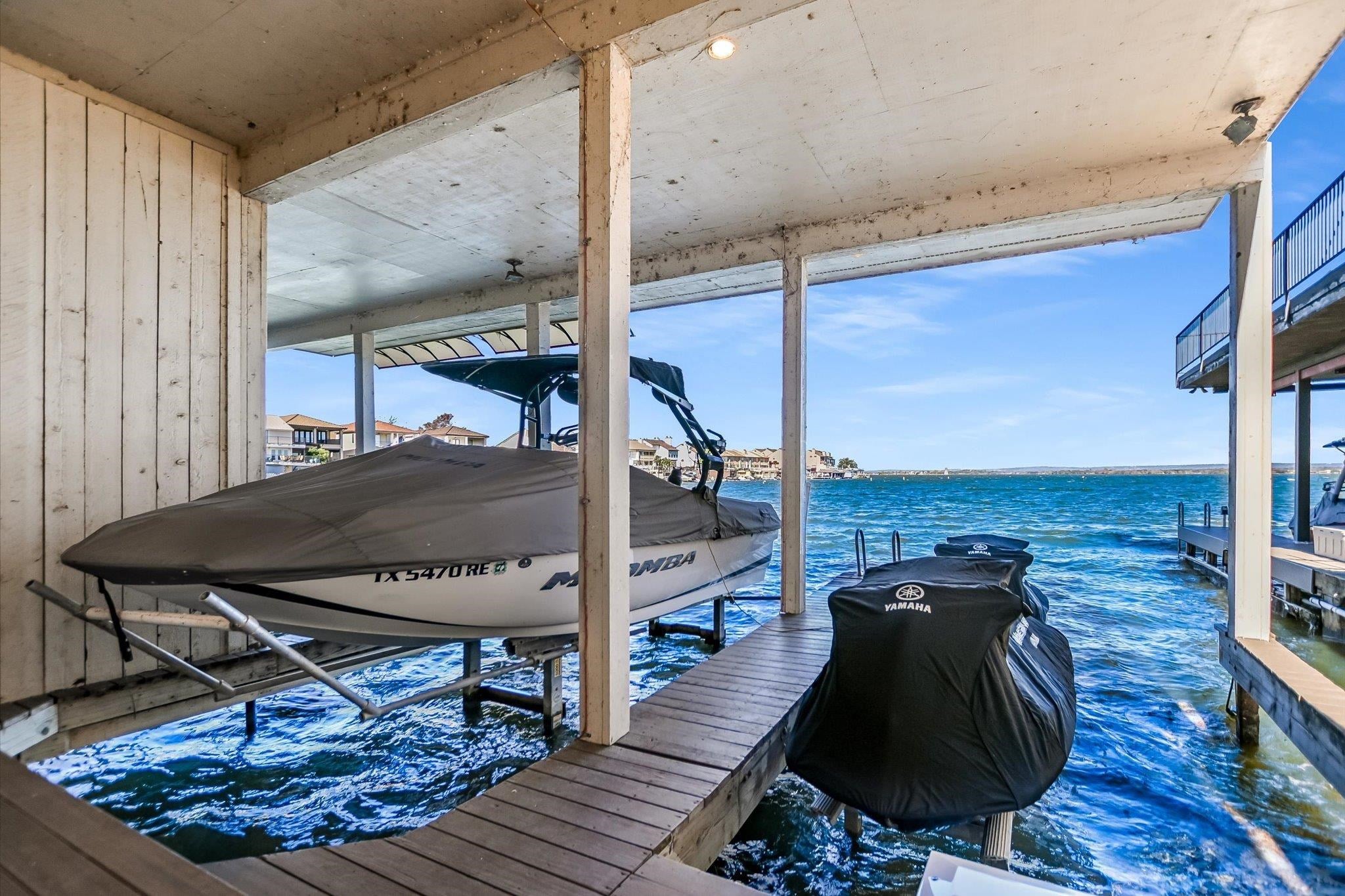 Perfectly positioned on the open waters of Lake LBJ, this exceptional gated waterfront townhome offers a rare blend of luxury, comfort, and iconic Hill Country scenery. With coveted north exposure and uninterrupted views of the Horseshoe Bay lighthouse, this residence captures the essence of refined lakeside living. Thoughtfully updated, the home features warm wood flooring throughout and an inviting, light-filled interior designed for effortless entertaining. The spacious kitchen is both elegant and functional, offering abundant cabinetry, a generous breakfast bar, and recent appliancesideal for hosting gatherings after a day on the water. Offering APPX. 2,700 Sq. Ft. (per owner), the home includes four bedrooms and five full baths, thoughtfully designed to comfortably accommodate family and guests while maintaining privacy and sophistication. The owners suite is a true retreat, highlighted by a private balcony overlooking the lake and his-and-her full baths, creating a spa-like experience framed by tranquil water views. Outdoor living is elevated by a large waterfront deck, perfect for entertaining family and friends while enjoying sunsets and cool lake breezes. Below, the private boathouse is equipped with a hydraulic boat lift and two hydraulic lifts for jet skis or wave runners, offering immediate access to the constant-level waters of Lake LBJ. Additional features include extra parking, a gated setting, and the rare opportunity to purchase the home fully furnished, with few exceptions