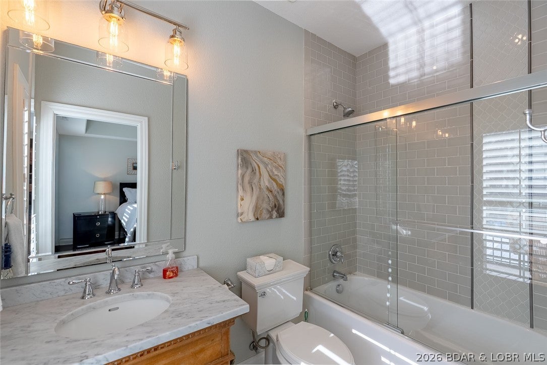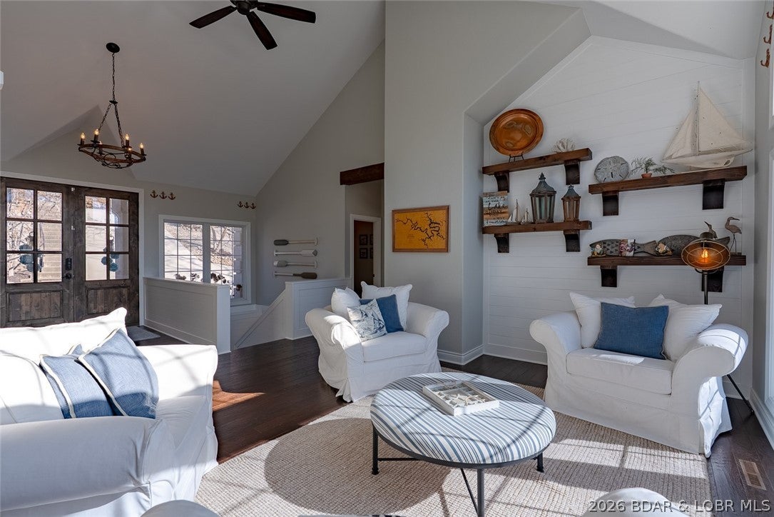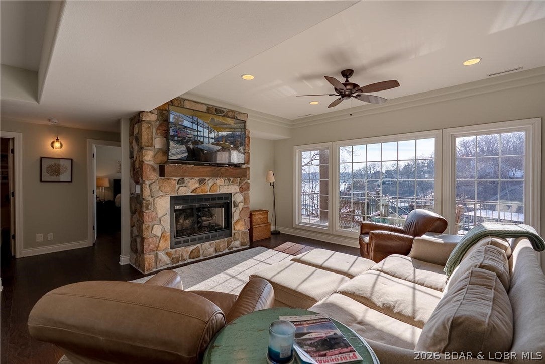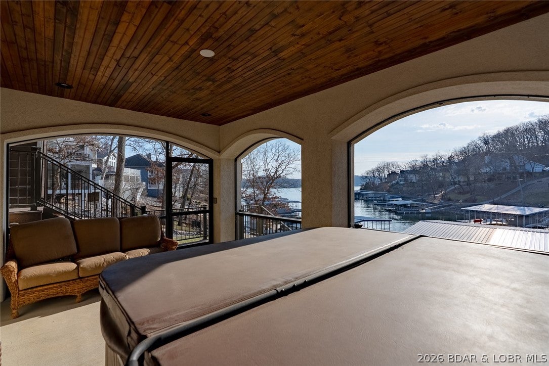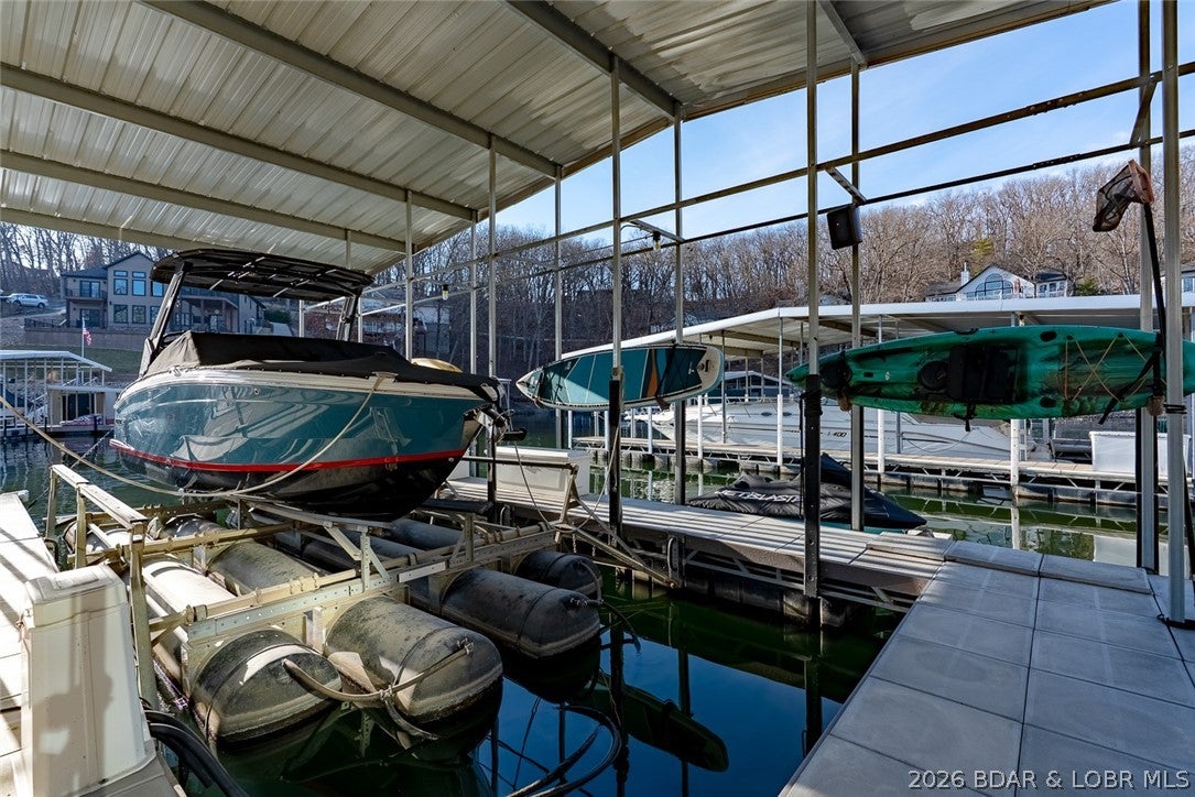 Remarkable turn-key lake home that truly checks every box! Recently updated with thoughtful design and luxury finishes, this home impresses with vaulted ceilings, walls of windows, and stunning lake views. The inviting hearth room flows into a gourmet kitchen featuring high-end appliances, extensive custom cabinetry, and a spacious dining area centered around a beautiful stone fireplace. Lakeside primary suite is a private sanctuary offering a spa-like bath with double vanity, soaking tub, tiled walk-in shower, separate water closet, and a walk-in closet with washer and dryer. The lower level is designed for entertaining with a large family room, full wet bar, lakeside en-suite, three additional bedrooms, 2 full baths, and a separate laundry/storage room. An oversized two-car garage provides space for a golf cart and workshop. Enjoy multiple outdoor living areas including two screened-in decks, one with a hot tub. Cart path leads to the concrete dock, currently configured with a 14x35 slip, with potential to expand to 16 wide. An additional 18x54 slip can be reopened. Located in a protected cove with main channel views, this property offers excellent access by land and water.