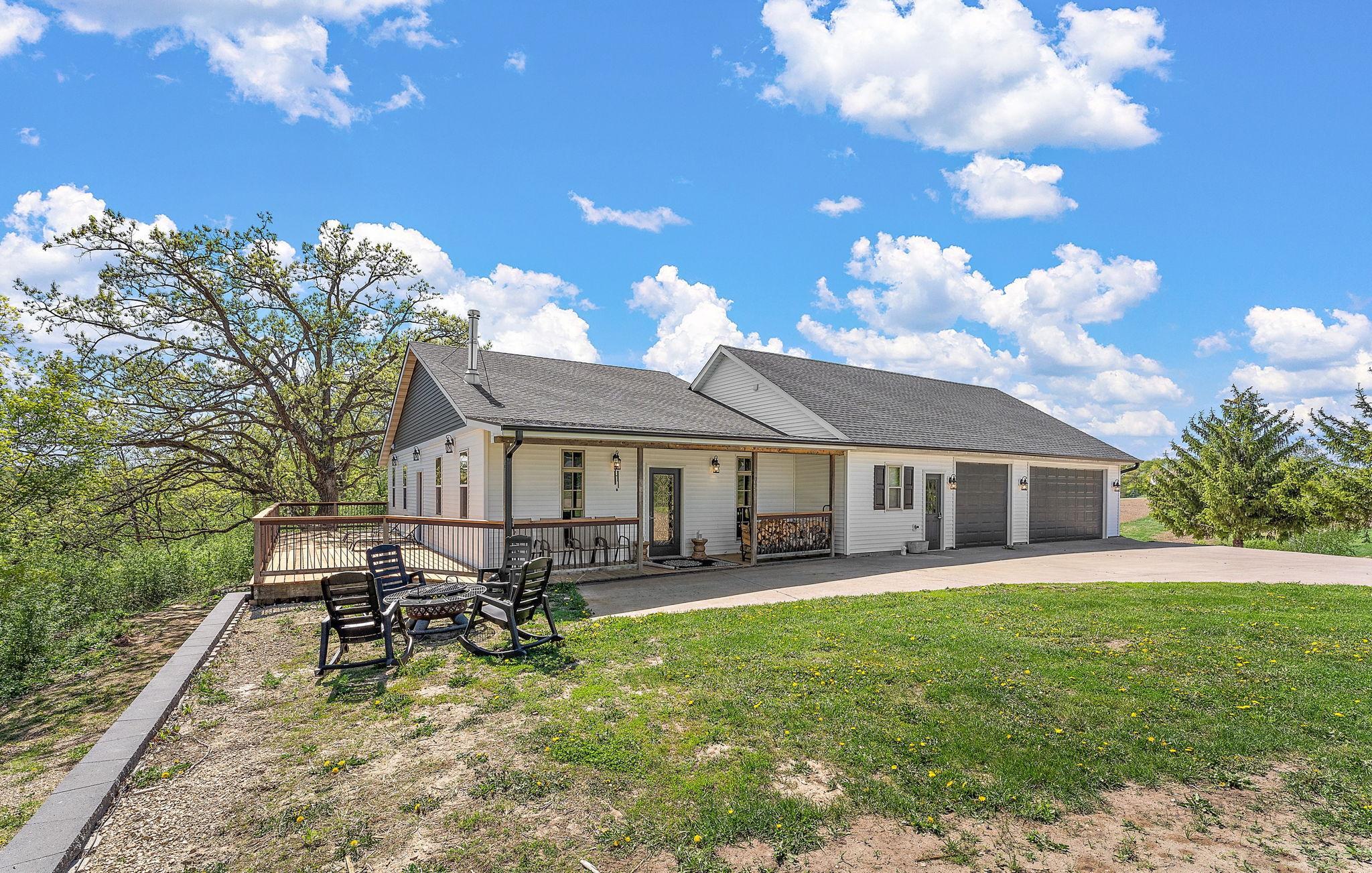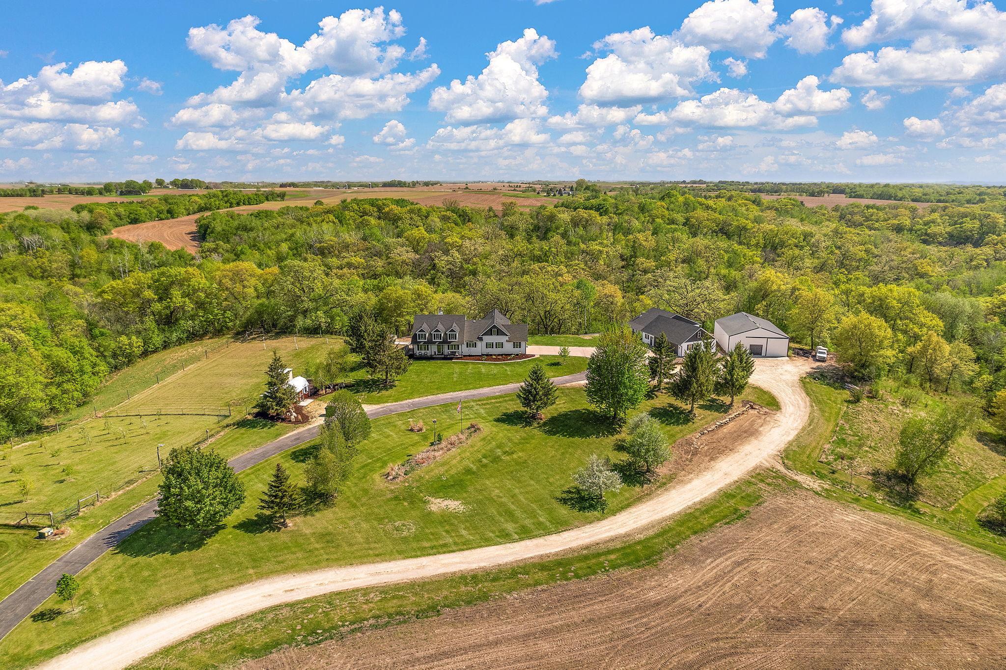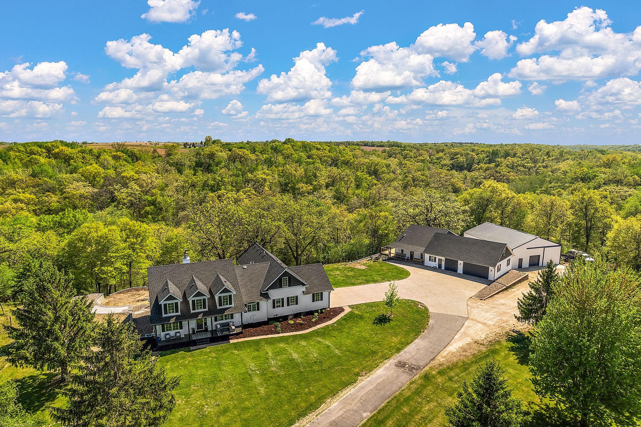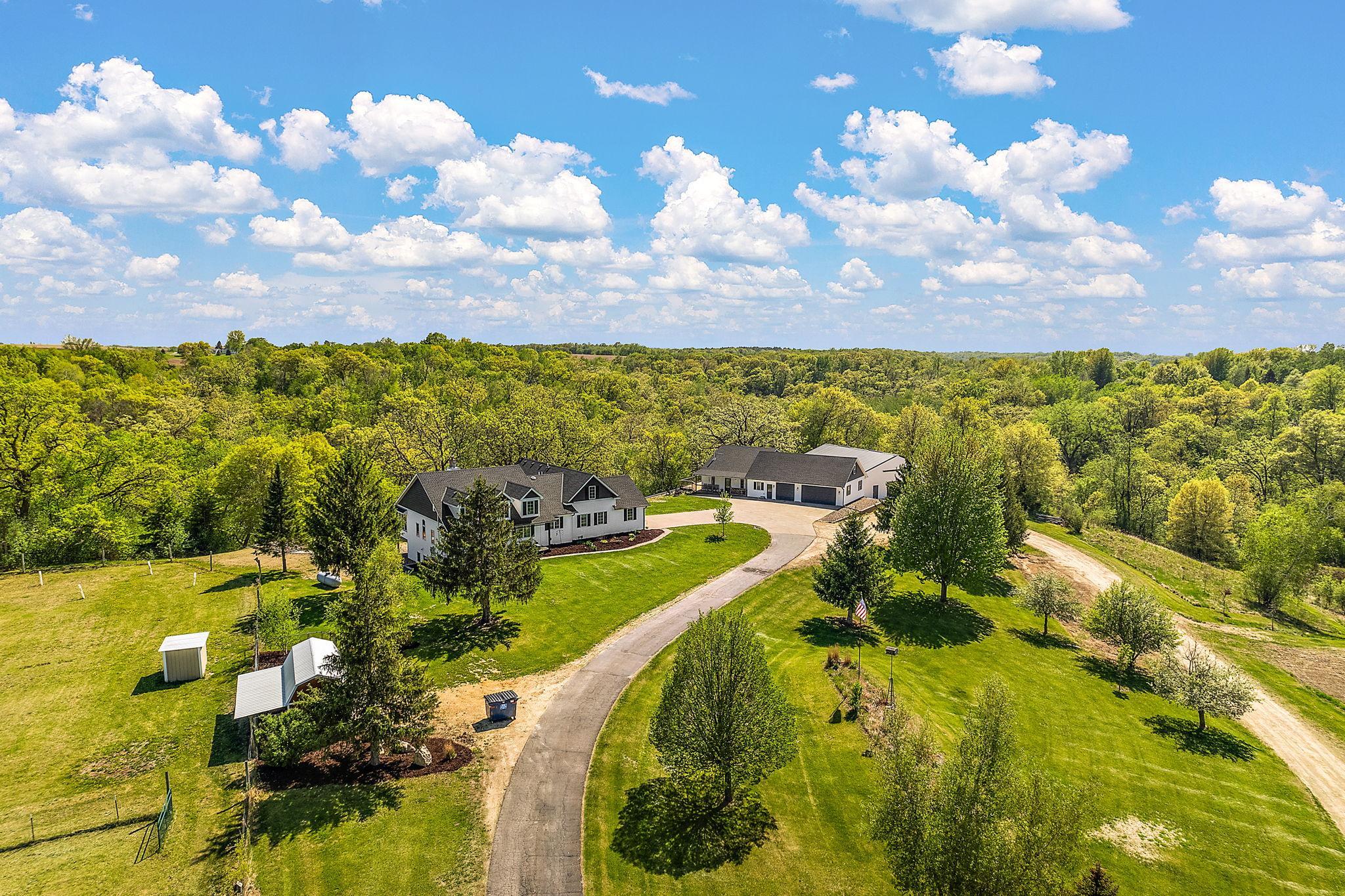 Welcome to this rare opportunity to own a truly unique and versatile property featuring a beautifully finished walkout rambler and a fully equipped secondary accessory buildingset on 25.36 acres of pristine land. The main home offers over 4,000 finished square feet with an open-concept floor plan, fresh paint, a spacious main-floor owners en suite, a flexible bonus room, and a charming three-season porchperfect for enjoying the peaceful surroundings in comfort. Adding even more value, the property includes a secondary accessory building of approximately 2,000 square feet, featuring a fully remodeled kitchen, 1.5 bathrooms, a private primary bedroom, and an attached garage. This versatile space is ideal for multi-generational living, guest accommodations, a rental unit, or even a private retreat. Additional highlights include a detached office building with bathrooms, perfect for a home-based business or creative studio, and a large pole barn with a finished concrete floor, great for storage, workshops, or hobbies. Store around 10 cars with all the garage space! The 25.36 acres are a true outdoor haven, offering crop land, designated hunting areas, and an abundance of natural wildlife, making it perfect for nature lovers, hunters, or anyone seeking peace and privacy. This one-of-a-kind estate is packed with features and endless potential. Dont miss your chance to own this extraordinary slice of country livingschedule your private tour today! The secondary building has an additional 2,359 square feet that can be used for entertaining with a kitchen and bathrooms.