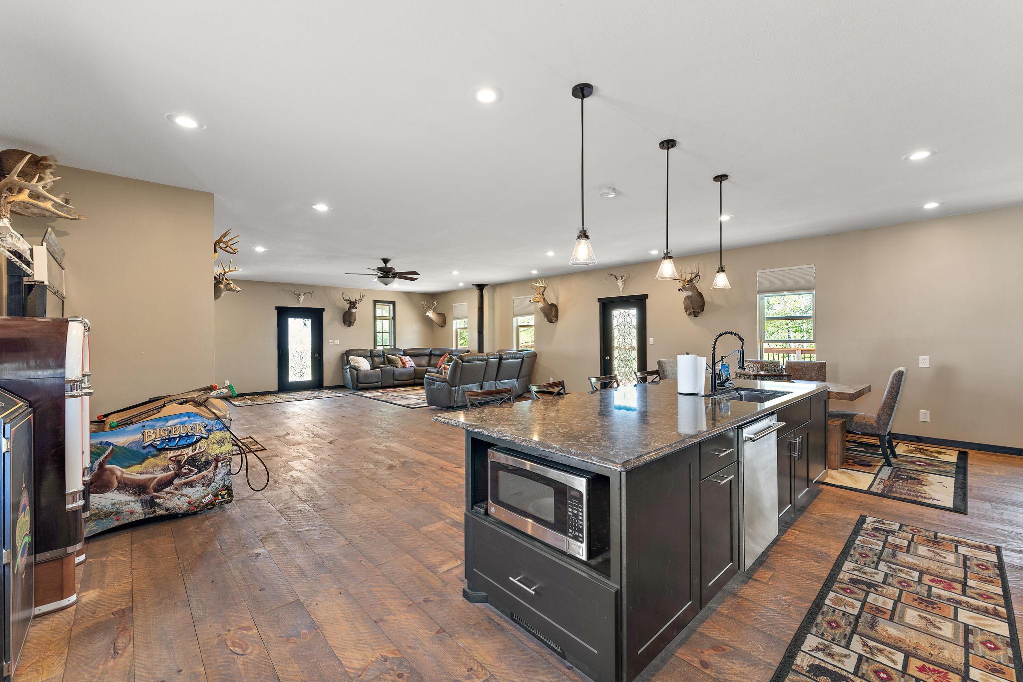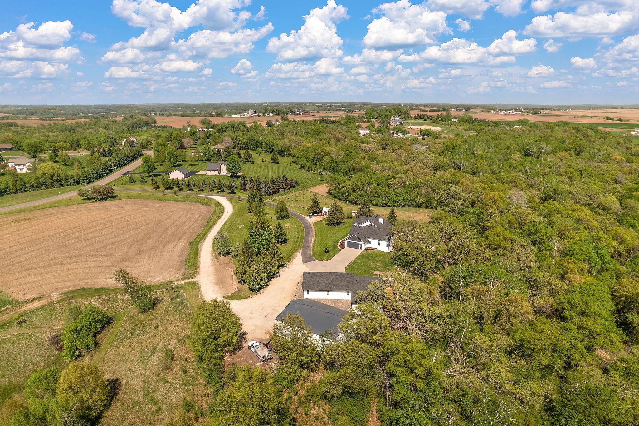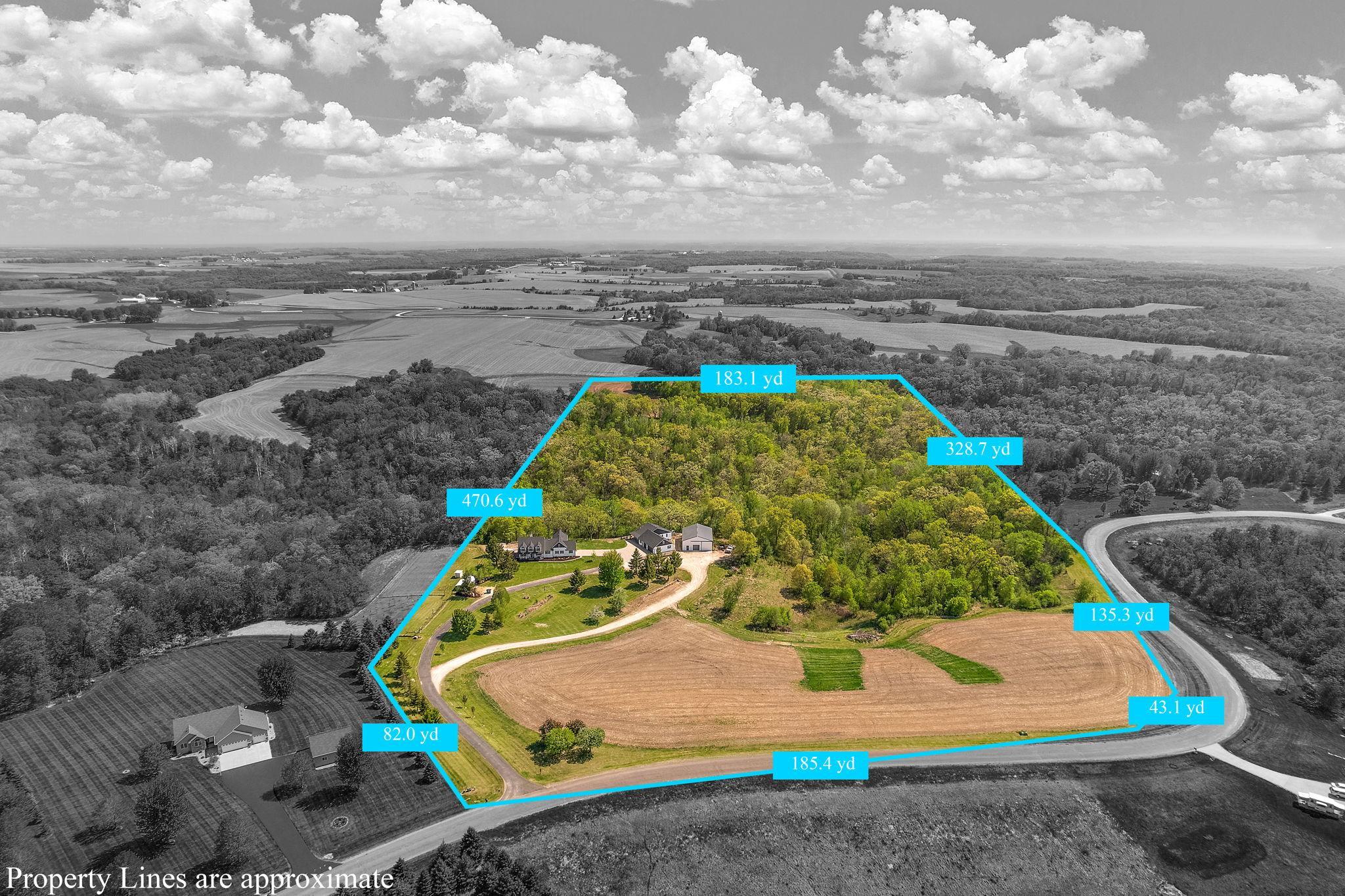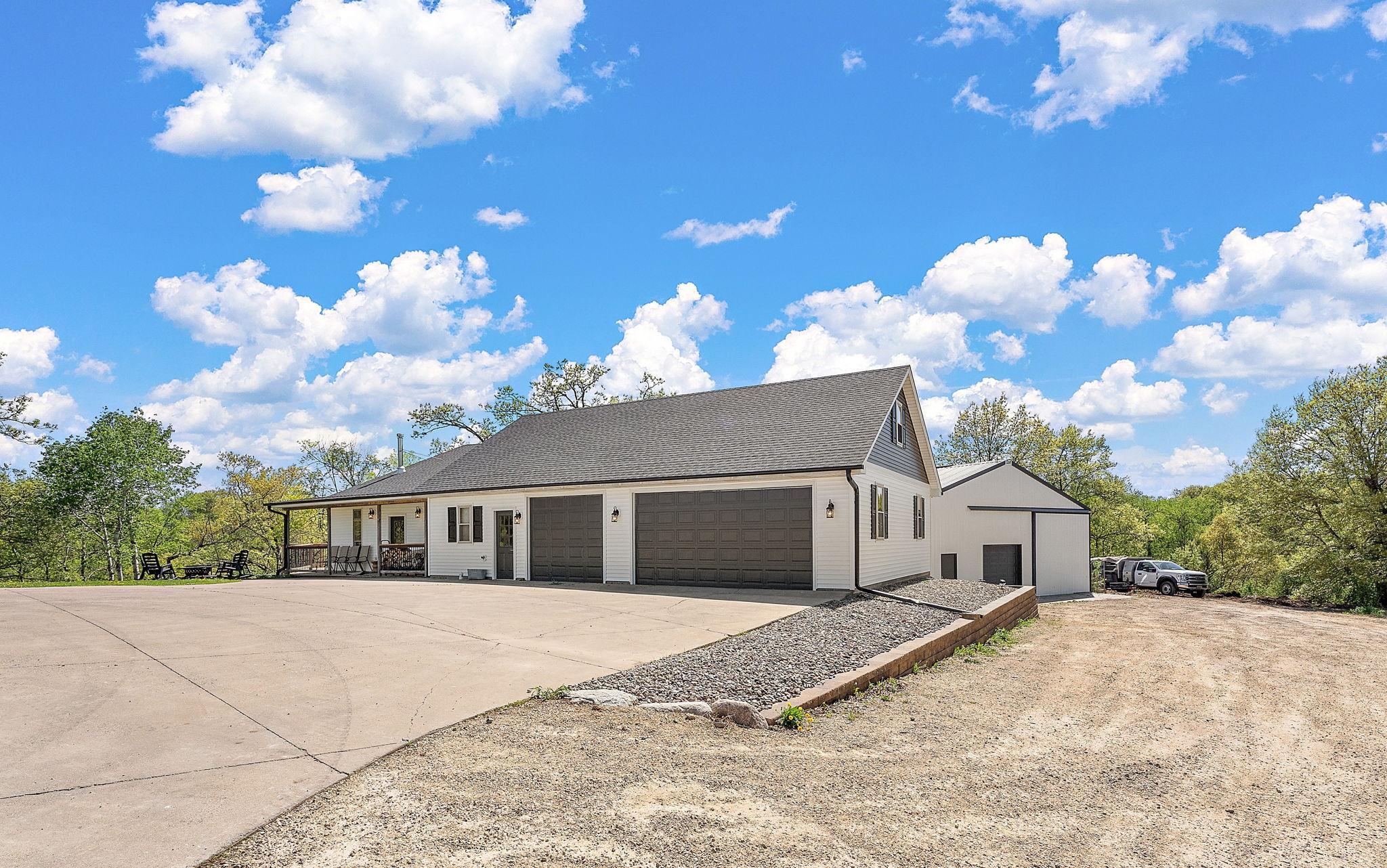 Welcome to this rare opportunity to own a truly unique and versatile property featuring a beautifully finished walkout rambler and a fully equipped secondary accessory buildingset on 25.36 acres of pristine land. The main home offers over 4,000 finished square feet with an open-concept floor plan, fresh paint, a spacious main-floor owners en suite, a flexible bonus room, and a charming three-season porchperfect for enjoying the peaceful surroundings in comfort. Adding even more value, the property includes a secondary accessory building of approximately 2,000 square feet, featuring a fully remodeled kitchen, 1.5 bathrooms, a private primary bedroom, and an attached garage. This versatile space is ideal for multi-generational living, guest accommodations, a rental unit, or even a private retreat. Additional highlights include a detached office building with bathrooms, perfect for a home-based business or creative studio, and a large pole barn with a finished concrete floor, great for storage, workshops, or hobbies. Store around 10 cars with all the garage space! The 25.36 acres are a true outdoor haven, offering crop land, designated hunting areas, and an abundance of natural wildlife, making it perfect for nature lovers, hunters, or anyone seeking peace and privacy. This one-of-a-kind estate is packed with features and endless potential. Dont miss your chance to own this extraordinary slice of country livingschedule your private tour today! The secondary building has an additional 2,359 square feet that can be used for entertaining with a kitchen and bathrooms.