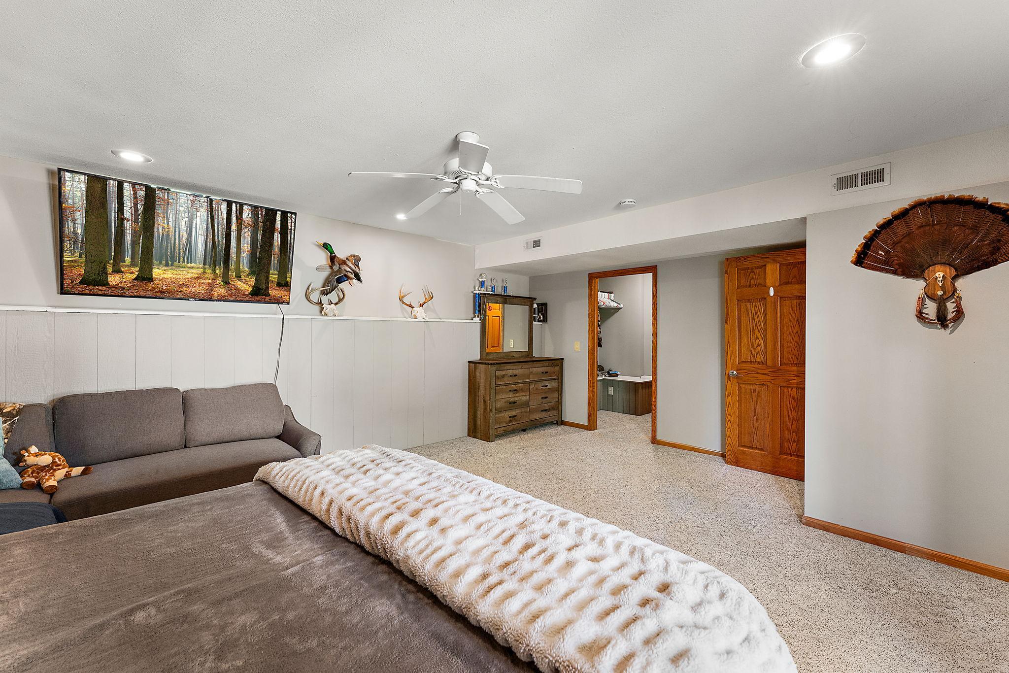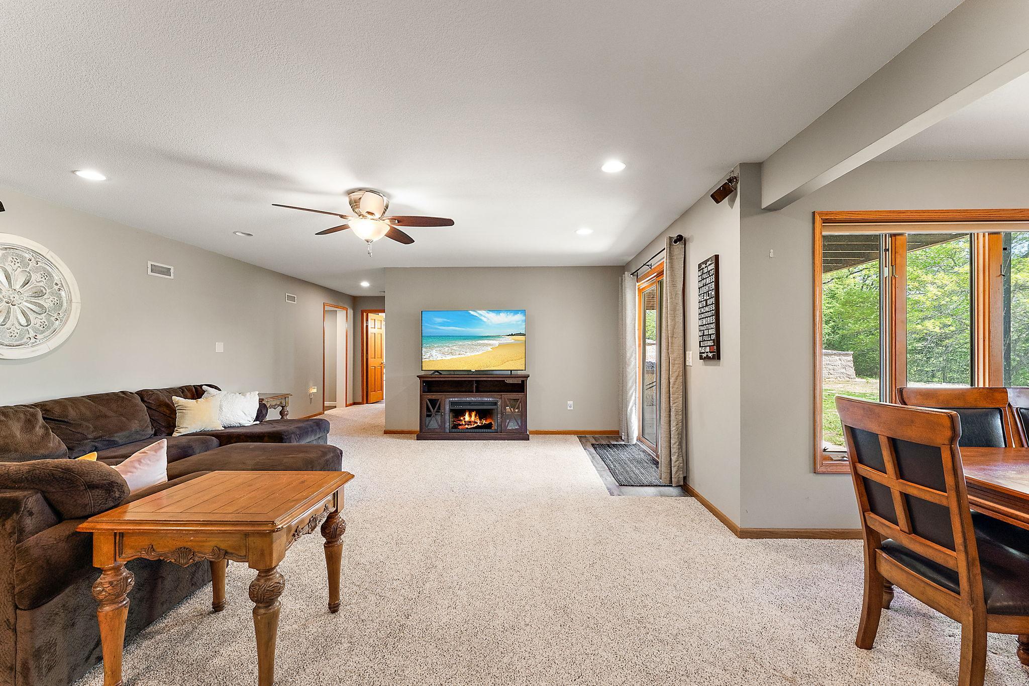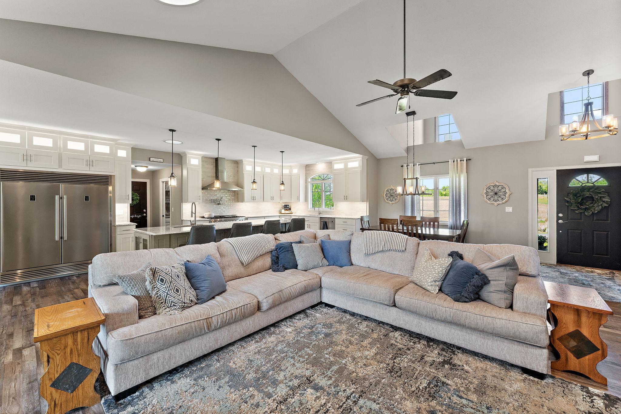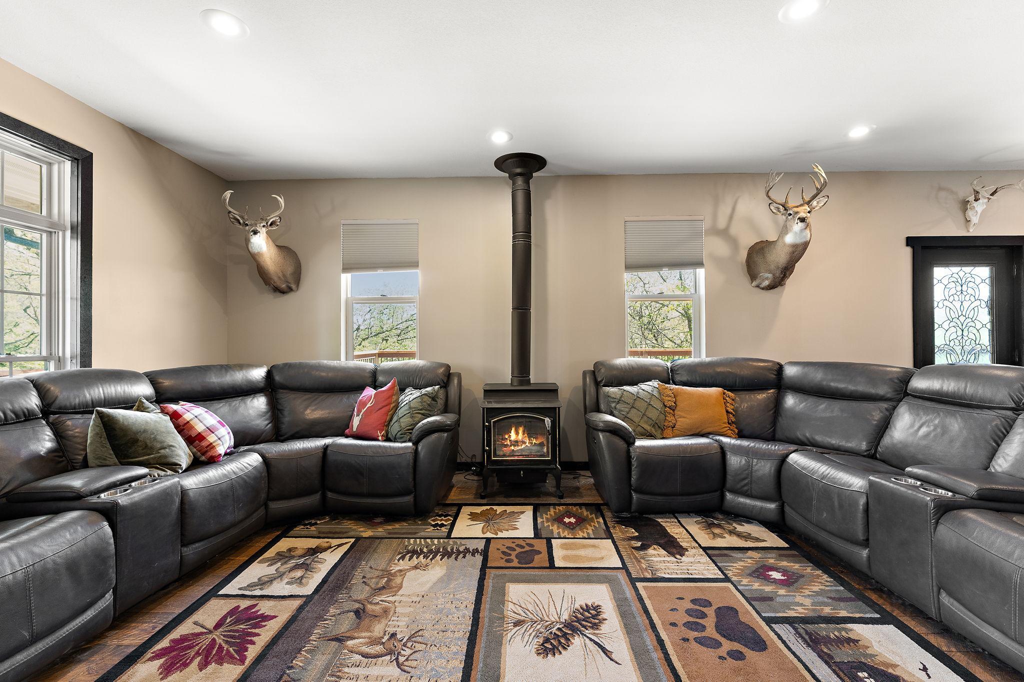 Welcome to this rare opportunity to own a truly unique and versatile property featuring a beautifully finished walkout rambler and a fully equipped secondary accessory buildingset on 25.36 acres of pristine land. The main home offers over 4,000 finished square feet with an open-concept floor plan, fresh paint, a spacious main-floor owners en suite, a flexible bonus room, and a charming three-season porchperfect for enjoying the peaceful surroundings in comfort. Adding even more value, the property includes a secondary accessory building of approximately 2,000 square feet, featuring a fully remodeled kitchen, 1.5 bathrooms, a private primary bedroom, and an attached garage. This versatile space is ideal for multi-generational living, guest accommodations, a rental unit, or even a private retreat. Additional highlights include a detached office building with bathrooms, perfect for a home-based business or creative studio, and a large pole barn with a finished concrete floor, great for storage, workshops, or hobbies. Store around 10 cars with all the garage space! The 25.36 acres are a true outdoor haven, offering crop land, designated hunting areas, and an abundance of natural wildlife, making it perfect for nature lovers, hunters, or anyone seeking peace and privacy. This one-of-a-kind estate is packed with features and endless potential. Dont miss your chance to own this extraordinary slice of country livingschedule your private tour today! The secondary building has an additional 2,359 square feet that can be used for entertaining with a kitchen and bathrooms.