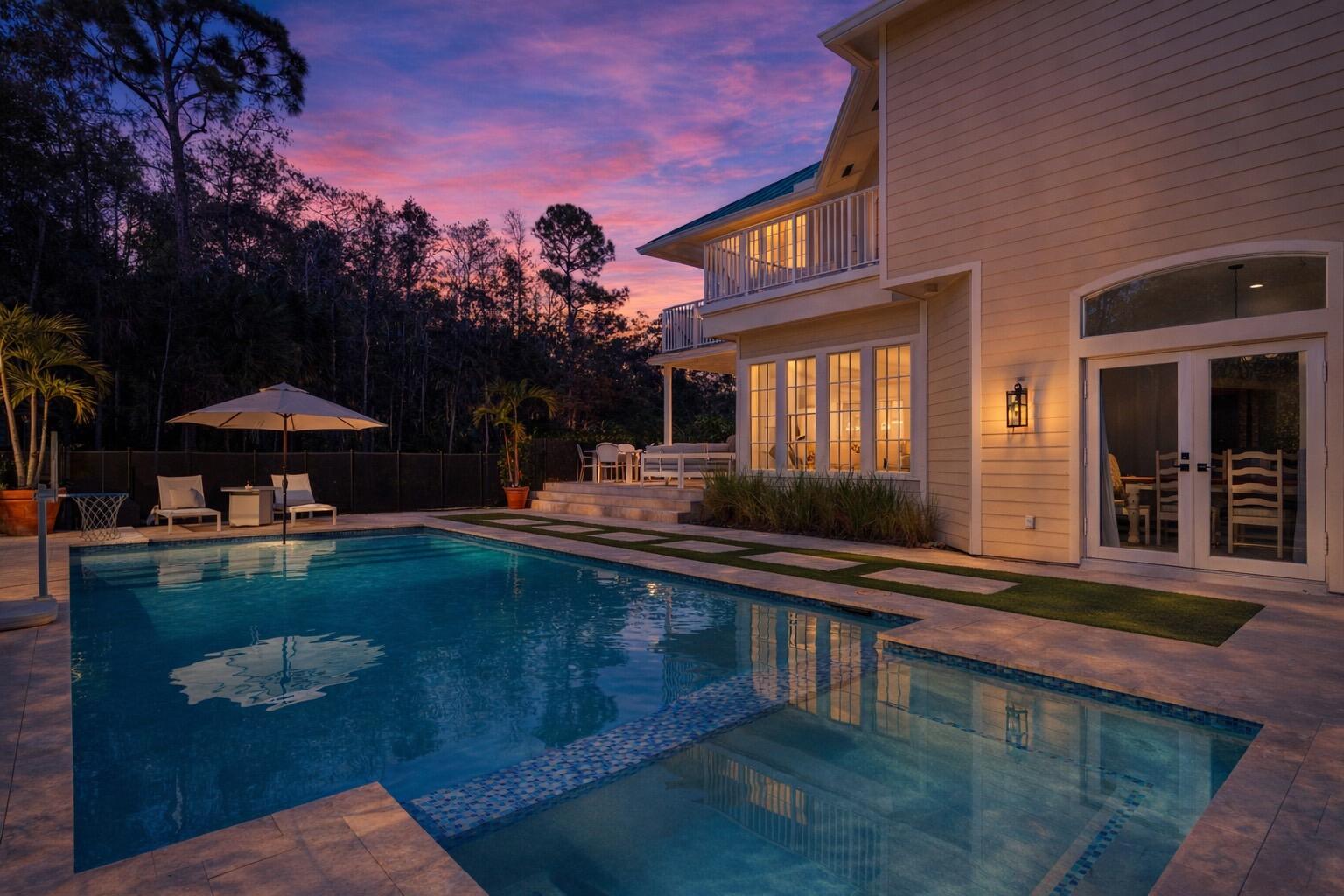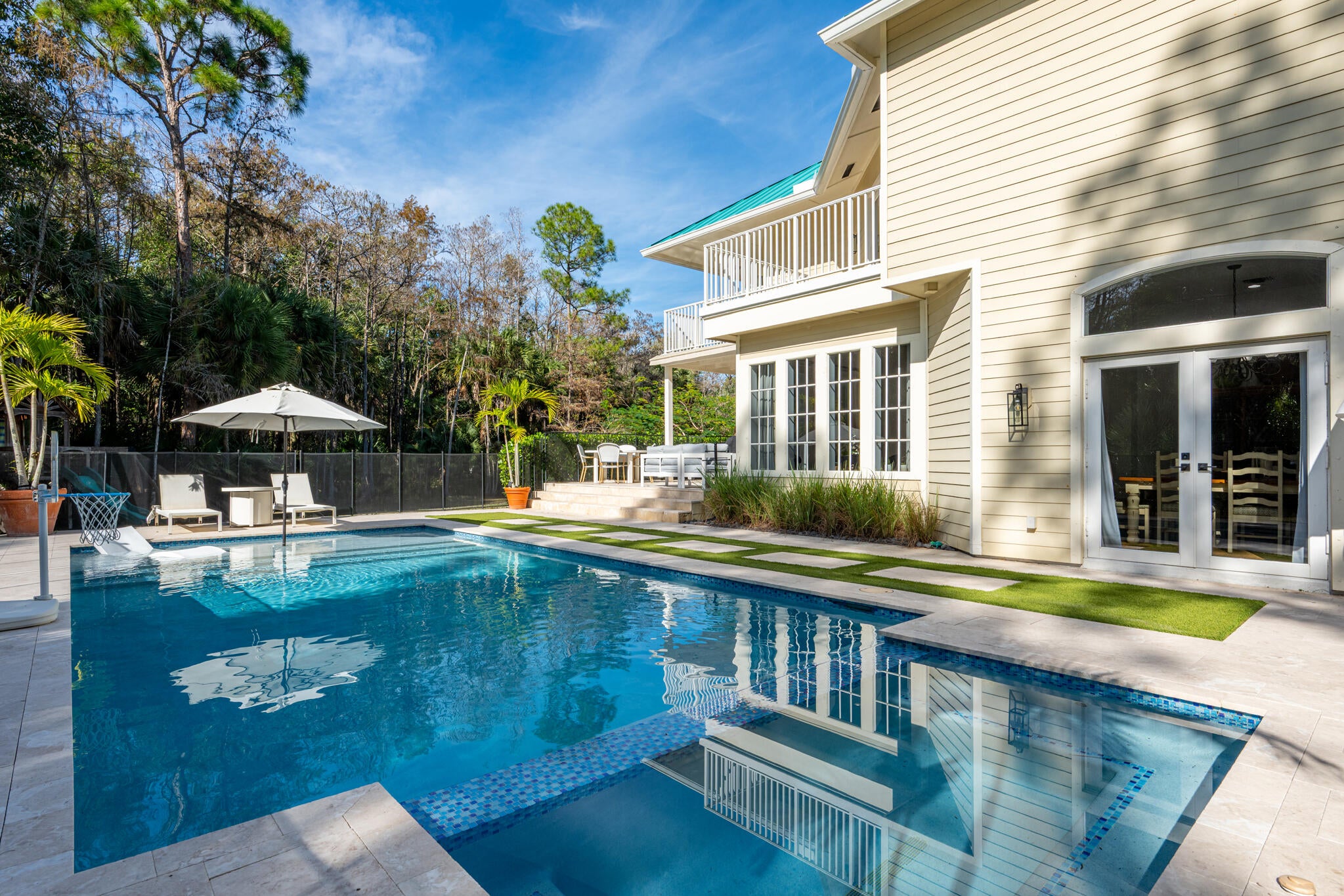 Tucked away on 5 beautiful acres in the desirable Fox Trail equestrian community, this exceptional residence offers a rare blend of coastal inspired architecture, spacious living spaces, and a newly installed resort-style pool. Surrounded by natural beauty and mature trees, the property provides unparalleled privacy while delivering a lifestyle of comfort and effortless entertaining.