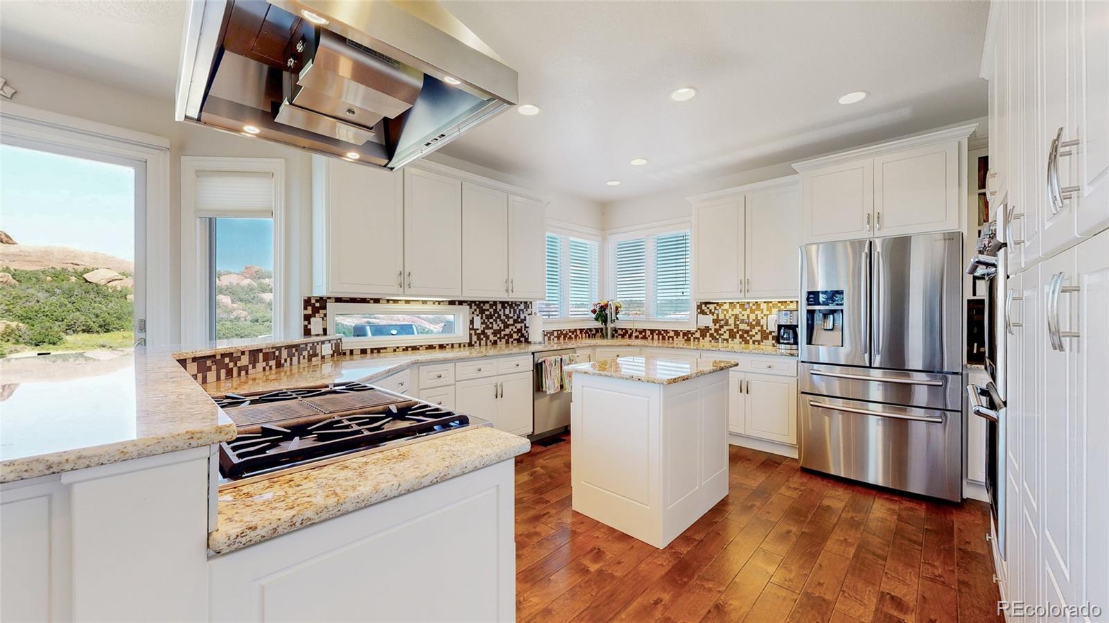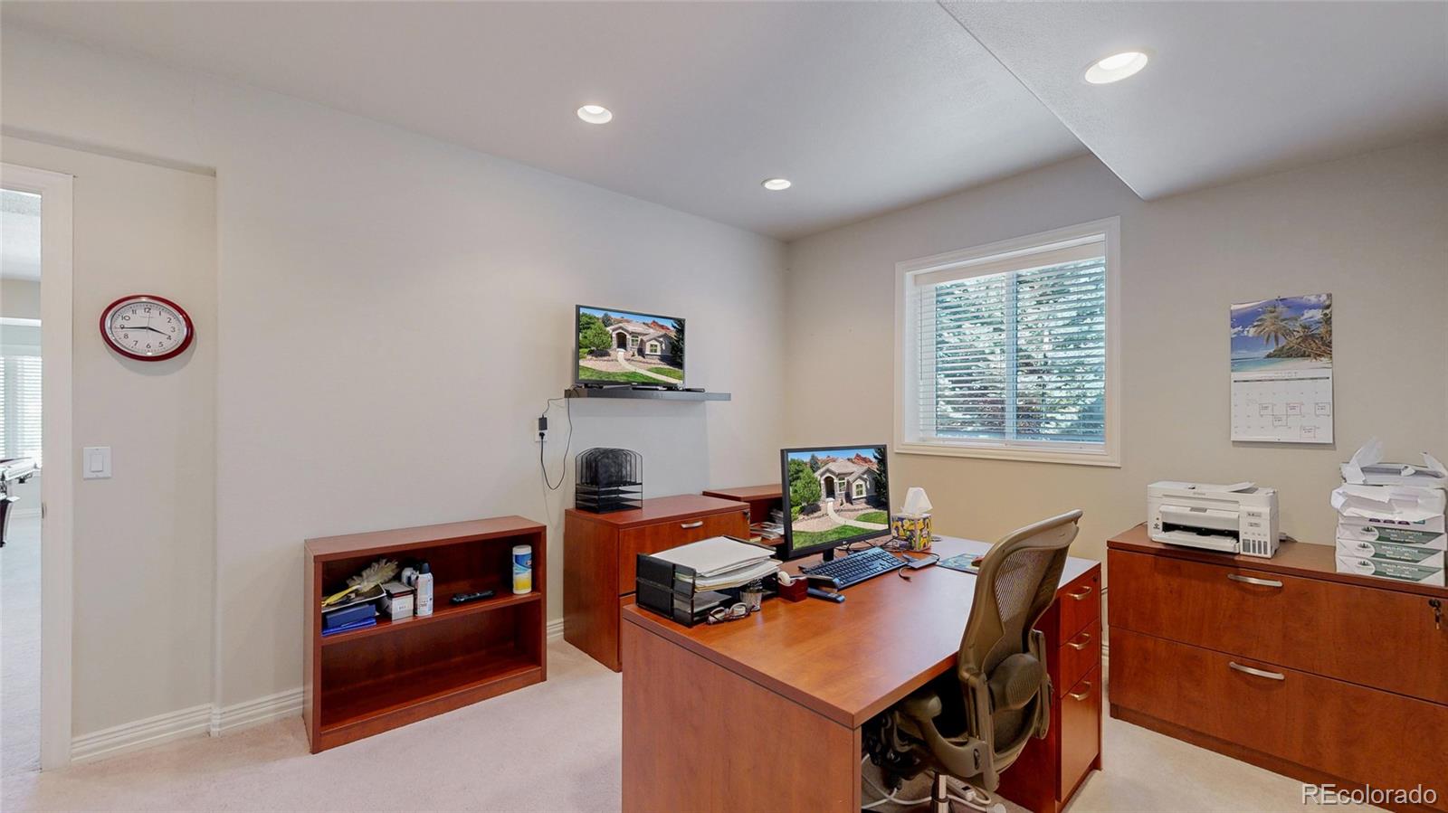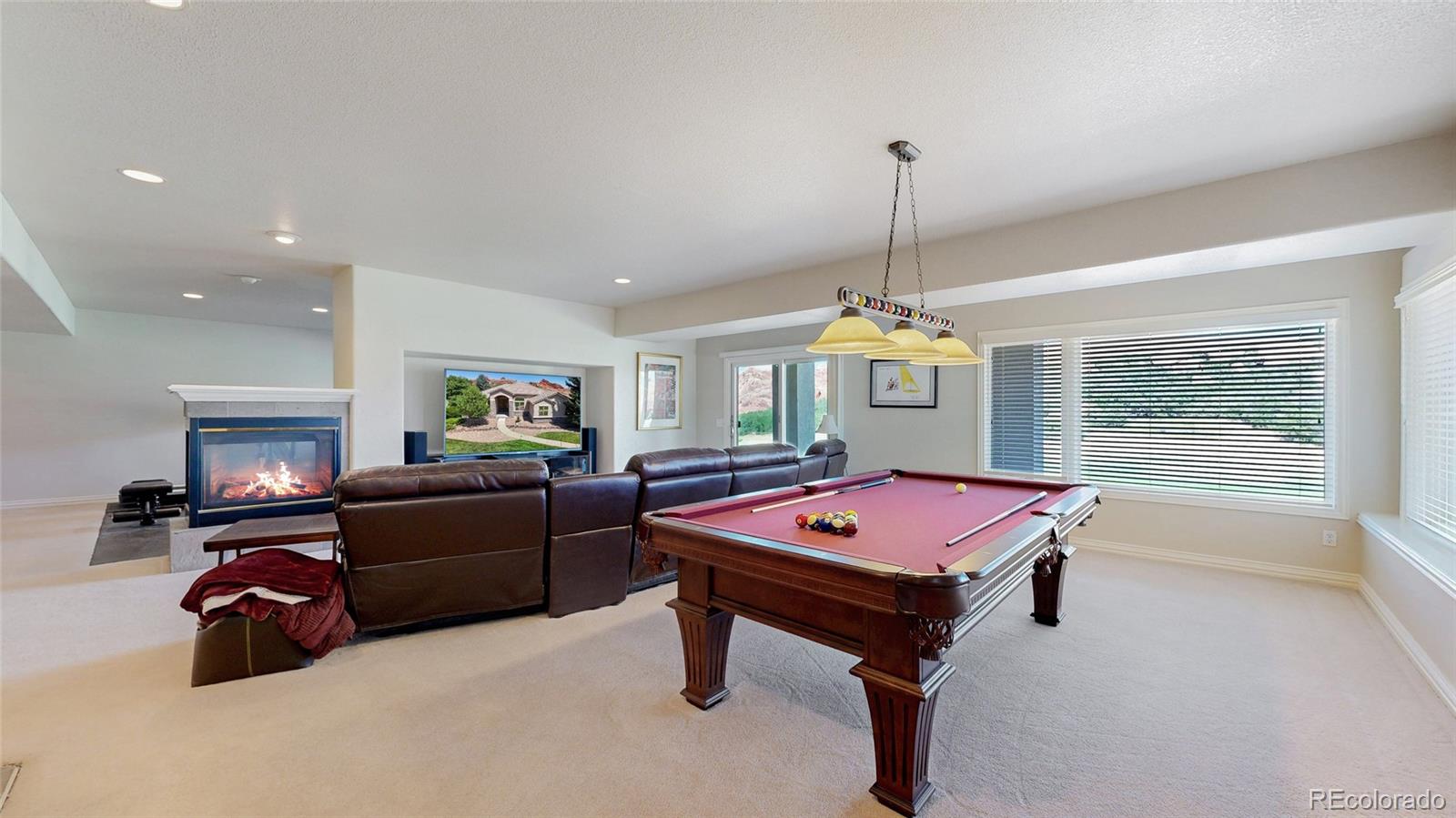 Located on the prestigious Arrowhead Golf Course, this stunning home offers breathtaking views! Step into the oversized great room featuring a cozy gas log fireplace, hand-scraped engineered hardwood floors, built-in shelving, and expansive windows that perfectly frame the scenic golf course and red rock vistas. The updated kitchen is a chefs dream, equipped with premium Thermador appliances, slab granite countertops, and a tile backsplash. Just off the kitchen, a new expanded composite deckpositioned on the east side of the homeoffers a peaceful evening retreat overlooking the fairway. Entertain in style in the formal dining room, which includes a built-in sideboard with a slab granite top and elegant glass-front cabinetry. The study is outfitted with custom built-in bookshelves and large windows that fill the space with natural light. The expansive primary suite is a true sanctuary, showcasing stunning views, gas fireplace, dual walk-in closets, and a newly remodeled spa-like bathroom complete with a freestanding tub, frameless glass shower, and a heated towel bar. A newly updated guest bathroom with a quartz-topped vanity serves the main floor, along with a secondary bedroom located on the opposite side of the homeperfect for privacyfeaturing its own brand-new bath. The spacious main floor laundry room includes built-in cabinetry, a utility sink, and washer/dryer. Downstairs, the walkout level is designed for entertaining. The family/recreation room features a fully equipped wet bar with a large wine refrigerator, granite countertops, tile backsplash, and even includes the pool table and theater seating! A secondary bedroom on this level offers a great option for a home office, while a large workout/flex space provides endless possibilities. Two additional bedrooms share a beautifully remodeled full bath. There is a flagstone patio with a dry under system for those rainy days. The oversized 3-car garage provides ample space for vehicles, gear, and toys.