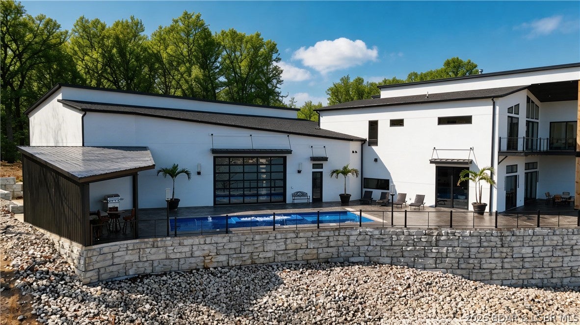 Panoramic main channel views of the Osage 24MM while also having a COVE protected dock! This NEW build estate is designed for luxury entertaining & refined everyday living. Encompassing 9,153 sq ft under roof, property includes 5,431 sq ft of sophisticated living space & an impressive 3,722 sq ft heated/cooled garage; ideal for showcasing cars, boats or the ultimate entertainment lounge. Interior features a chefs kitchen with a 64 side-by-side refrigerator/freezer, waterfall granite island & slab backsplash, designer lighting & a one-of-a-kind floating metal staircase w/ wood treads--following the natural curve of the trunk going up the staircase. Primary suite is a private retreat with breathtaking lake views & a spa-inspired bath with marble flooring & a distinctive open shower / soaking tub concept & desirable walk-in closet w/ custom shelving. Outdoor living feels like a private resort with its 40x16 pool, hot tub, tanning ledges and fountains, covered cabana, stamped concrete, torch-lit pedestals surround pool deck, finished w/ a fire pit. Exterior finished in stucco & stone, a flat driveway, sought after location by land/water & a massive private dock. A true masterpiece...