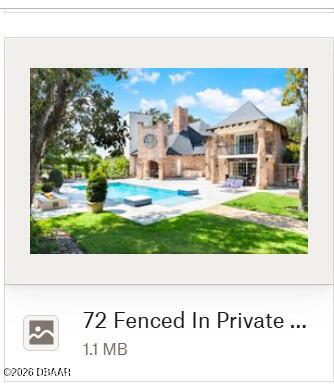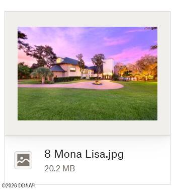 SPECTACULAR RIVERFRONT PRIVATE RESORT LIVING Welcome to an extraordinary estate where history, architectural artistry, and breathtaking natural beauty converge. Perched atop a rare natural dune with sweeping, pristine views of the Tomoka Basin, the Intracoastal Waterway, and the river beyond, this one-of-a-kind residence offers an unrivaled blend of privacy, prestige, and Old Florida charm. This remarkable property traces its roots to the historic Santa Lucia Plantation and was originally selected for its idyllic setting by John Anderson himself. The estates architect fittingly christened the residence The Mona Lisa, recognizing it as a true masterpiece of design and craftsmanship. The vision was brought to life by a world-renowned sea captain whose passion for durability and beauty inspired a fortress-like construction rarely seen in residential architecture. Built with millions of dollars worth of reinforced concrete construction creating a GRAND Estate!!! Spanning multiple parcels, the property offers extraordinary space and flexibility, including a buildable 200 x 60 Intracoastal waterfront lot and the primary homesite measuring 340 x 199, all positioned to capture breathtaking water views and spectacular sunsets. Whether enjoying peaceful mornings overlooking the Tomoka Basin or embarking on boating adventures from your private dock, life here feels like a permanent vacation.The Main ResidenceThe impressive three-story main home features expansive living spaces designed for both grand entertaining and comfortable everyday living.Highlights include: A dramatic two-story primary suite with dual spa-inspired bathrooms Three additional bedrooms with en-suite baths Five additional flexible spaces ideal for offices, lounges, guest quarters, or creative studios An attached four-car garageGuest House & Additional StructuresThe charming two-story cottage offers exceptional versatility and privacy. It features a bedroom or living area downstairs, two bathrooms, a kitchenette, and a spacious bonus room with remarkable acoustics--perfect for a music studio, art space, or additional apartment.The property also includes a 50 x 20 RV garage that could easily be converted into additional living quarters or a luxury hobby space. With its own private patio and generous grounds, the guest house is ideal for extended family, in-laws, or vacation rental potential. There is even ample room to add a pickleball or tennis court.A third structure provides another oversized garage with 12-foot ceilings, workshop space, and room for two vehicles--or the opportunity to install auto lifts for a collectors dream garage.Outdoor Resort-Style LivingThe grounds are nothing short of spectacular. Step outside to your private outdoor oasis featuring: A resort-style heated saltwater pool Expansive travertine patio and pool deck ideal for entertaining A striking gas fire wall feature creating the perfect setting for sunset gatherings A fully equipped summer kitchen with a brand-new gas grillImagine returning from a day on the water, docking your boat at your private dock, grilling the days catch, and relaxing poolside as the sun sets over the river.The meticulously landscaped grounds offer mature trees, shaded hammocks, and winding paths that create the feeling of having your own private waterfront park. A circular drive welcomes guests in grand style, while expansive rear parking easily accommodates dozens of vehicles.A separate entrance office adjacent to the garage provides an ideal professional space for meeting clients while keeping work distinct from your private residence.Chefs Kitchen The heart of the home is a stunning chefs kitchen designed for both culinary creativity and entertaining. Anchored by a dramatic 25-foot freestanding Austin limestone gas fireplace, the kitchen features: Thermador 6-burner gas range Built-in Thermador refrigerator/freezerThermador Wine refrigerator and commercial ice maker Brand-new Bosch dishwasher Custom wood cabinetry Farmhouse sink Expansive entertaining islandComfort, Efficiency & Peace of Mind Numerous upgrades and thoughtful features include: Commercial-grade garage doors Wind-rated windows and safety impact glass Two instant hot water heaters Solid wood 8-foot interior doors throughout Plug-in generator and 250-gallon propane tank Outdoor shower Dual irrigation systems using city water (no well)Sunlight streams through open stairways, filling the home with warmth while showcasing its spectacular views. New 10 thousand pound lift. Newly Walk through banana lined pathways to the river. youbanana-lined pathways to the river, reinforcing the unmistakable sense that youve arrived in your own private coastal paradise--just 2,000 feet from the Atlantic Ocean. There are discussions with the county of an inlet coming to Ormond Beach making entrance to the Atlantic Ocean only minutes away. A Rare OpportunityProperties of this caliber rarely come to market. Combining historic significance, architectural distinction, expansive acreage, and unparalleled waterfront views, The Mona Lisa offers a once-in-a-generation opportunity to own a true piece of Ormond Beach history while creating an extraordinary lifestyle.In 1903, the smooth, hard-packed sands of Ormond Beach became a proving ground for automobile inventors and drivers. These first speed tournaments in the US earned Ormond the title Birthplace of Speed.Ormond Beachs rich and diverse history reaches back several centuries. The area was populated by Native Americans and developed by sugar cane planters, ship builders, hoteliers and railroad magnates. It was the vacation home of millionaires and automobile manufacturers in the early 20th century. With the building of the rail line to Ormond in 1886 and the first bridge over the Halifax River in 1887, tourism and residential activities began to flourish. John Anderson and Joseph Price, builders of that first bridge, fulfilled their dream to build a hotel on the beachside. In 1888, the Ho