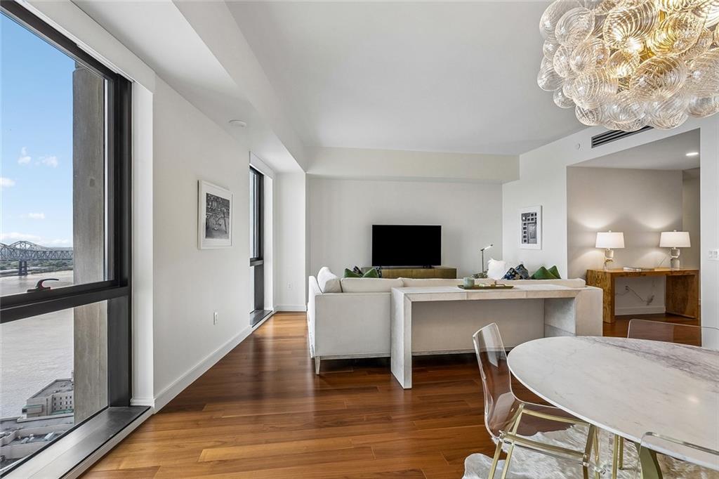 Experience unparalleled luxury inspired by the renowned Four Seasons brand, where sophistication welcomes you from the moment you arrive. This exceptional residence offers sweeping views of both the Mississippi River and the iconic skyline of downtownNew Orleans. br /Residents enjoy the convenience of valet parking for two vehicles, complemented by attentive concierge service that sets the tone for a truly elevated lifestyle. The buildings world-class amenities cater to every need, from morning coffee service to indulgent spatreatments, a state-of-the-art fitness center, golf simulator, and resort-style pool. br /Inside, the residence showcases a stunning chefs kitchen outfitted with premium appliances, sleek white lacquer cabinetry, and elegant white stone countertopsperfectly blending style and functionality. Expansive, thoughtfully designed windows anchor each room, filling the home with natural light by day and offering a warm, ambient glow in the evening. br /Designer lighting fixtures and curated furnishings enhance every space, creating a sense of comfort, scale, and effortless refinement. Additional features include an in-unit washer and dryer, as well as motorized shades with blackout capabilities in thebedrooms for optimal privacy and relaxation. br /This impeccably maintained, move-in-ready residence offers the rare opportunity to enjoy turnkey luxury living. Designer furnishings may be purchased separately; please inquire with the listing agent for additional details.
