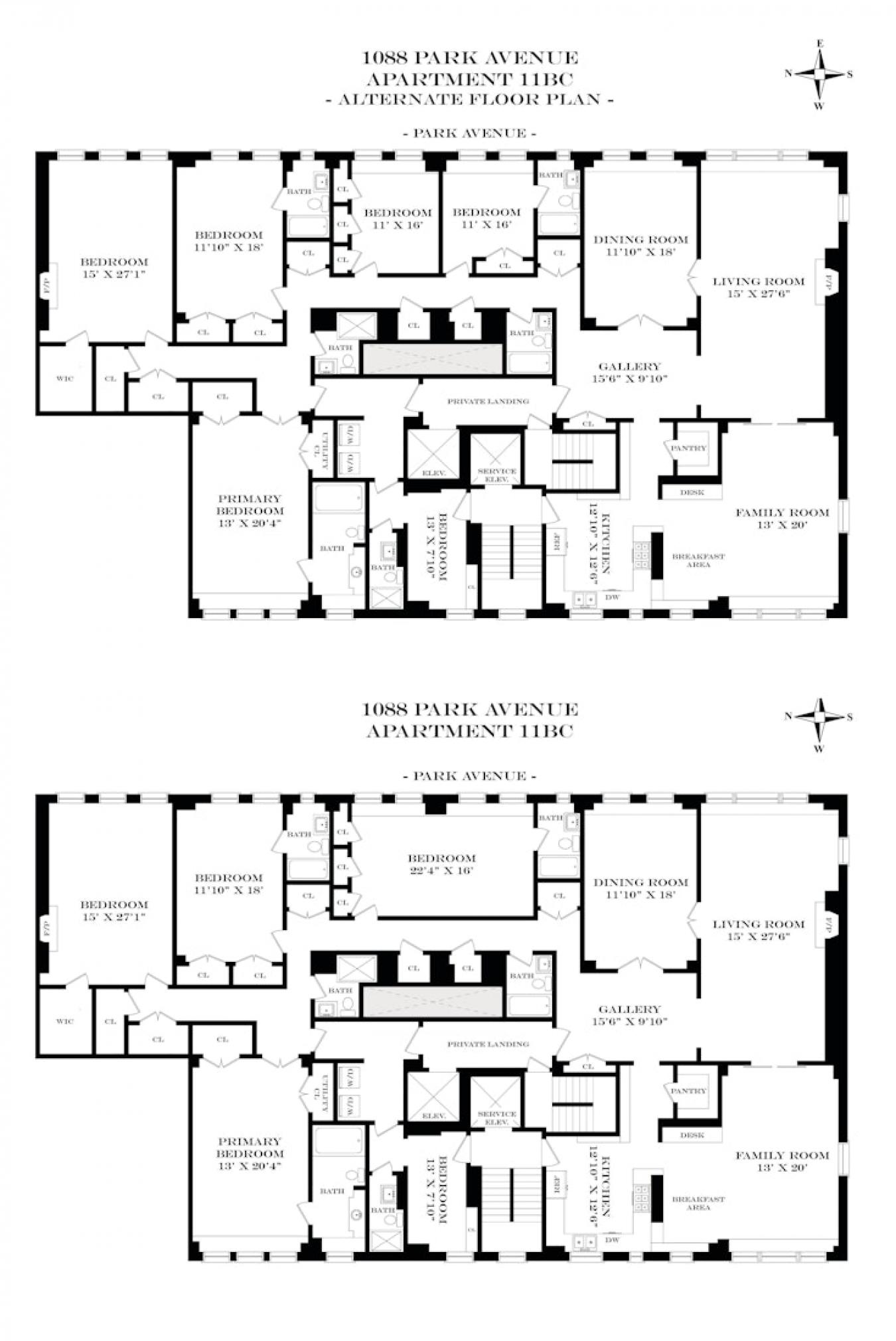 This elegant and expansive four-bedroom, four-and-a-half-bathroom residence at 1088 Park Avenue, located high above Park Avenue, offers beautifully proportioned rooms, open outlooks, and abundant natural light throughout. Meticulously renovated and impeccably maintained, the home seamlessly blends classic prewar grandeur with modern livability. A private elevator landing opens onto a gracious gallery leading to a sun-drenched living room with open views and an adjacent formal dining room perfectly suited for elegant entertaining. Immediately opposite the living room is an expansive casual corner family room with a separate dining area and an adjacent oversized-windowed kitchen. A thoughtfully designed private wing accommodates four spacious bedrooms, each with excellent light and storage, complemented by four full bathrooms and a separate powder room. The layout is exceptionally versatile and can readily support a fifth bedroom, as well as a home office, gym, or staff quarters, tailored to your needs. Additional highlights include central air conditioning, oversized windows, and an airy, open feel throughout. With its impressive scale, pristine condition, and rare flexibility, this residence represents a truly special Park Avenue offering. 1088 Park Avenue is a distinguished full-service cooperative with a 24-hour doorman, resident manager, two fitness centers, bike storage, laundry facilities, and private storage. The building is pet-friendly and permits up to 50% financing. Most importantly, the building has one of the largest and most beautifully landscaped private gardens of any building in Manhattan. Ideally situated on the Upper East Side, moments from Central Park, and surrounded by the neighborhoods finest dining, shopping, and schools, this exceptional home offers both elegance and convenience in one of Manhattans most coveted locations.