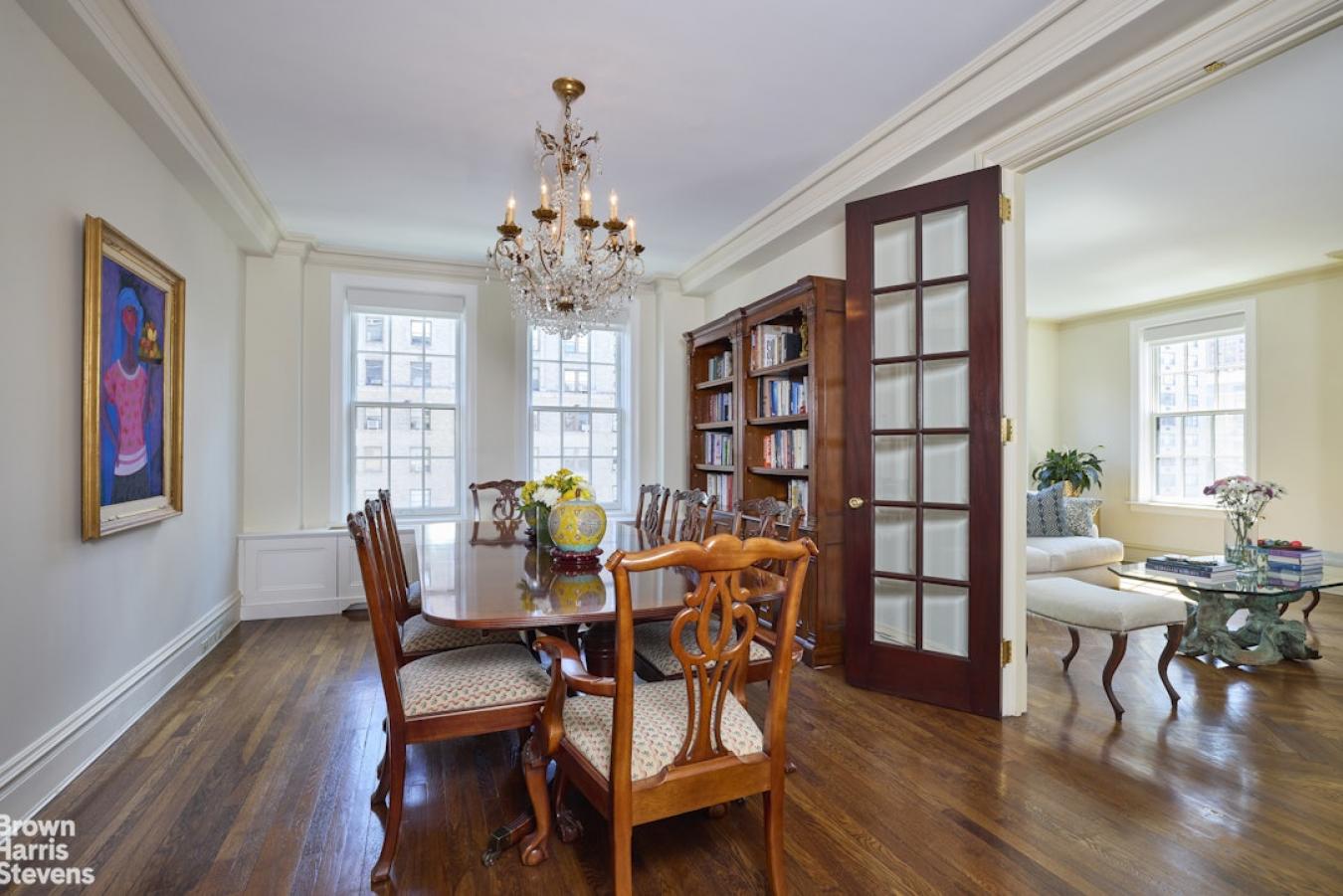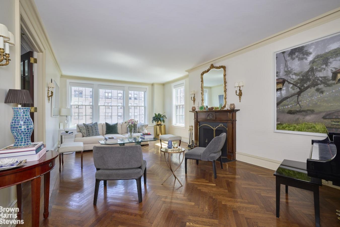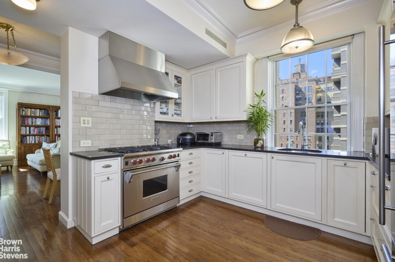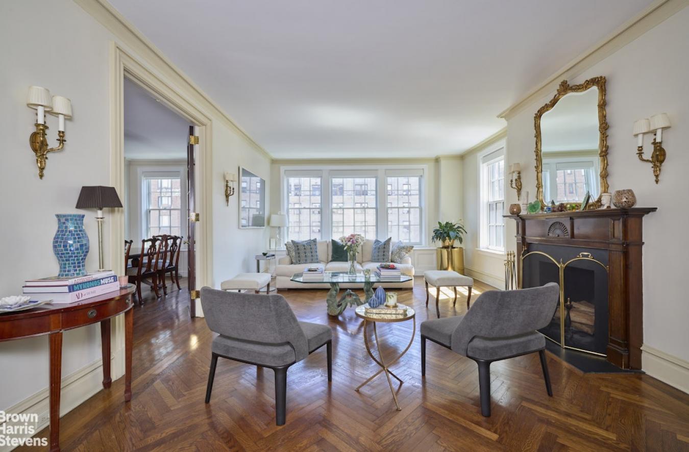 Perched high above Park Avenue at the apex of Carnegie Hill, this sophisticated 10-into-9-room prewar gem, elegantly rethought, offers gracious living on the Upper East Side. Sun-drenched, the 12th Floor corner residence has soaring 10 6" ceilings, glamorous living space, stunning original detail and open views in every direction. The large, square entry foyer leads to a beautifully proportioned living room with wood-burning fireplace, oversized windows, stunning hardwood floors, and captivating western exposures overlooking the bell tower of Brick Church. Another elegant sitting room or library connects to a stunning corner dining room that boasts a sweeping double exposure west and north with open views up Park Avenue. A large gallery with custom bookcases and skylight leads to the oversized chefs kitchen, featuring high-end stainless-steel appliances, custom Bulthaup cabinetry, a separate pantry, a large center island, and a separate breakfast dining area with built-in banquette. The primary suite is a true retreat (originally 2 rooms) with a wall of windows plus sitting area, two full, renovated bathrooms on opposite sides of the room, a custom dressing area, and two walk-in closets. Three additional large bedrooms, two with ensuite baths and enormous closets, plus an additional playroom/home office and hall bath complete the home. There is a separate laundry room with ample storage. Centrally air conditioned throughout. The apartment transfers with two storage bins. 1155 Park Avenue is a pet-friendly, full-service luxury cooperative building built in 1915 by Bing and Bing, with 24-hour doorman, live-in super, gym, bike room, and laundry room. 40% financing. 2.5% flip tax.