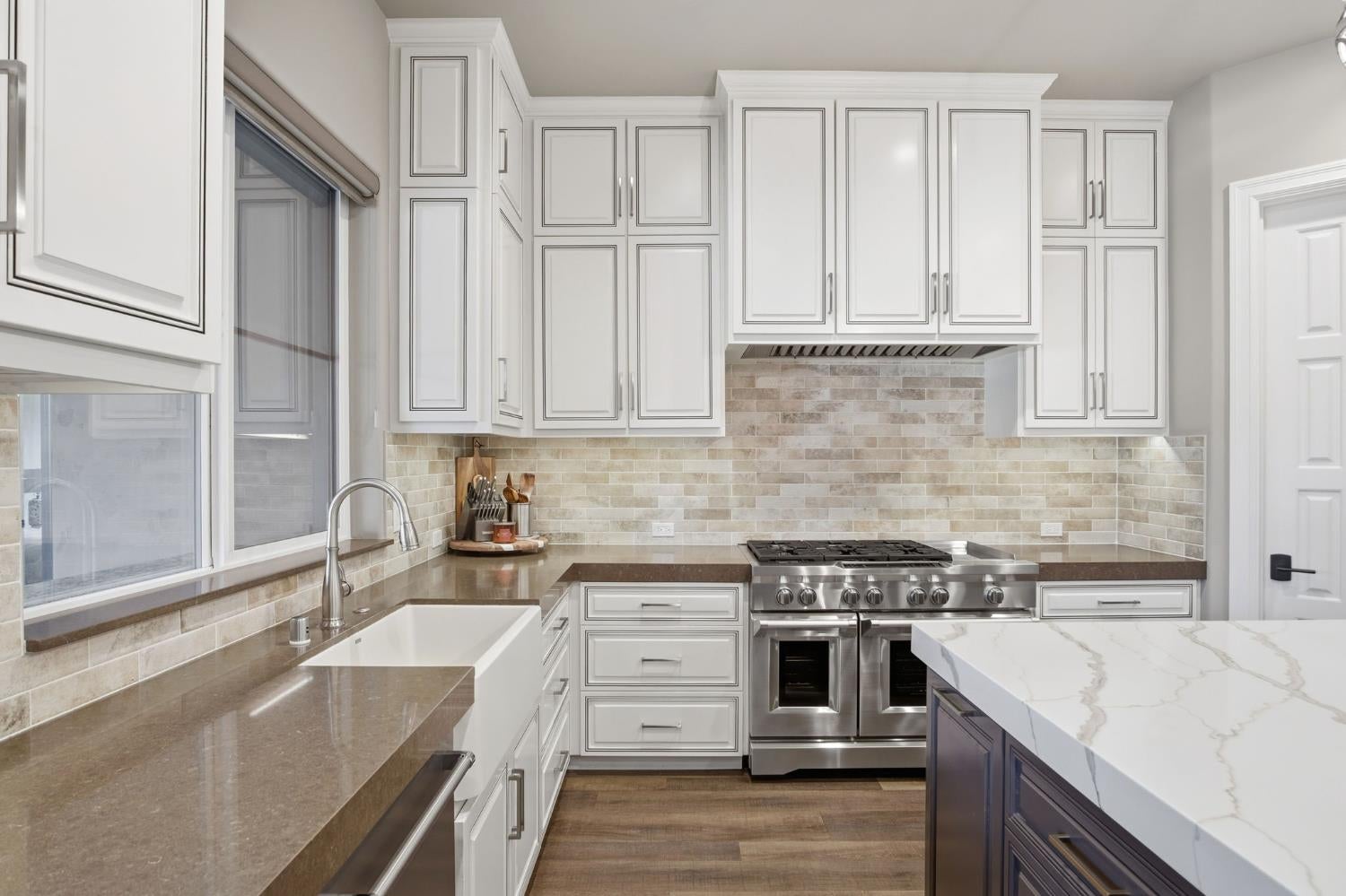 Beautiful light & bright new construction home, 6 bed/6.5 bath on a spacious corner-lot in Marvin, conveniently located to shopping, schools, & entertainment. Home has over 270K in design and structural options, including media room, rear balcony, scullery, cabinet & appliance upgrades. Welcoming two-story foyer with upgraded turning staircase, open floor plan, & primary and a 2nd bedroom (or office) on main. Upgraded kitchen features ceiling-height cabinets, built-in wine bar with beverage fridge, a commercial gas cooktop & hood, pot-filler faucet, commercial grade built-in refrigerator, wall oven, scullery area off kitchen, & large walk in pantry w/built in shelving. Upstairs find a large flex room that opens up to covered balcony & media room, 4 large secondary bedrooms all with ensuite bathrooms. Home has irrigation all around. 3 car garage, two tankless water heaters, 400 amp electrical service, security camera pre-wire, EV prewire, garage epoxy floor. Zoned to Marvin Schools. This is a great opportunity to get a brand new home in Marvin in a community that is in closeout. Not to be missed!