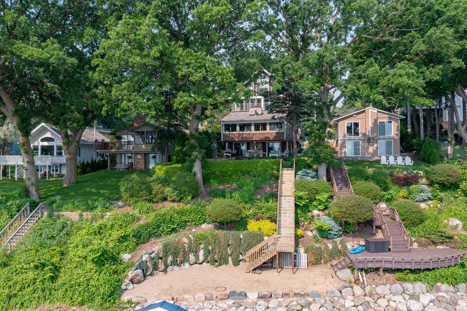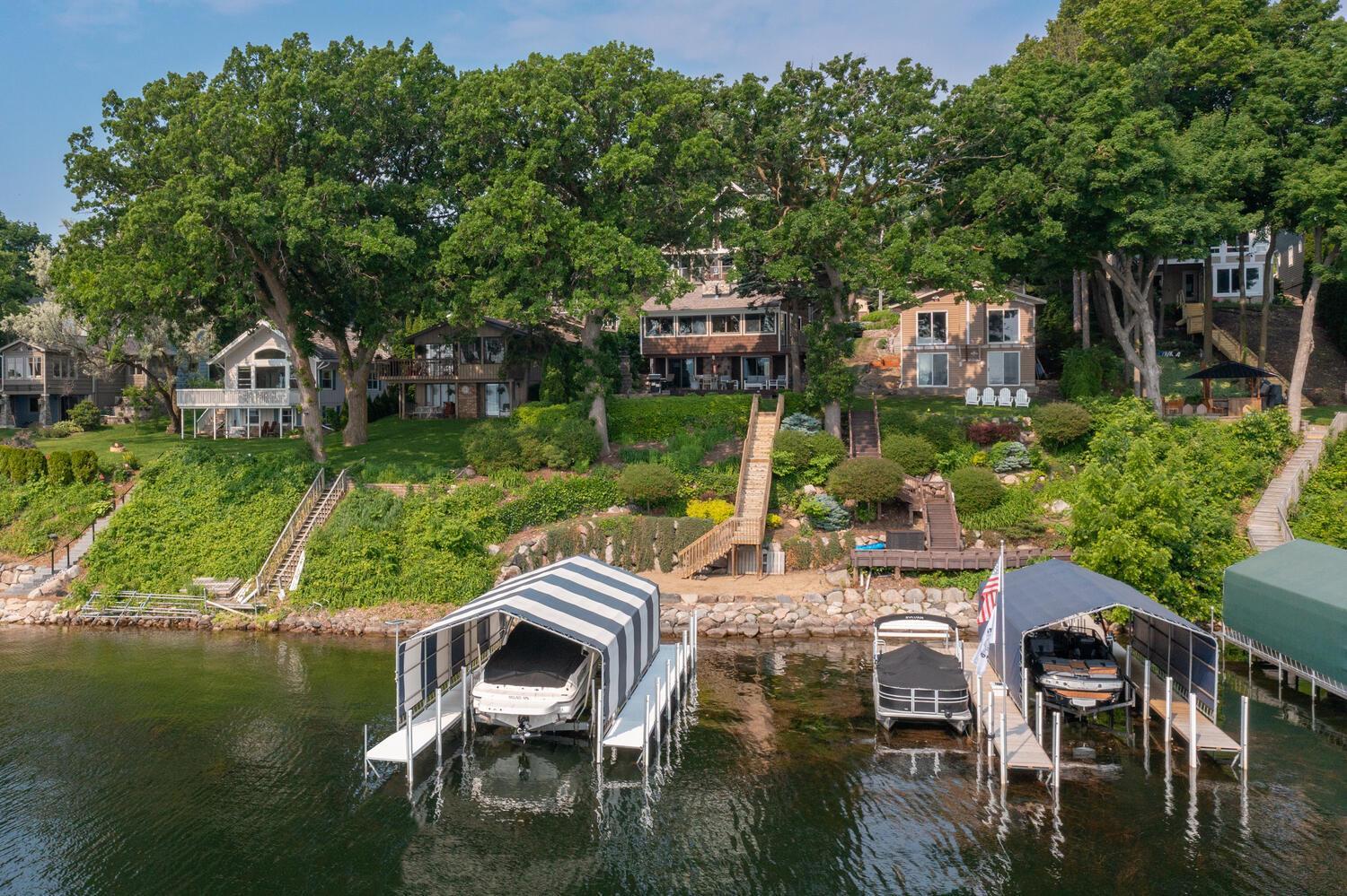 Much of the home was constructed in 2005. The property has had many updates since 2018 that you will notice as you view photos or tour the home. Come and see this turn-key home with breathtaking 180 degree views over Cooks Bay of Lake Minnetonka! You will appreciate clear water, a sandy beach and the premium boulder shoreline here. Updates include the new center island kitchen with white cabinetry, Corian counters, stainless appliances and hardwood flooring. All new contemporary living room to greet guests. Relax on the porch and enjoy the sunrise with a cup of coffee. The vaulted primary suite pampers you while you look out a wall of Andersen windows viewing the lake plus step out to the all new deck. Primary includes a whirlpool bath, spacious tile shower and walk-in closet. There is a second bedroom and loft area near the owners suite. There are two more bedrooms for family or guests.All four baths are updated. The walkout lower level is designed for entertaining by the lake! Andersen doors step out to a patio with fireplace, a deck and level yard. There is also a level sandy area at lakeside for relaxing by the water. A premium boulder shoreline meets the clear water and sandy bottom of Cooks Bay. Flooring, mechanical and beautiful landscaping updates have been done! It is a short distance to Mound shopping, dining and trail system. Highly rated Westonka schools are all within two miles.