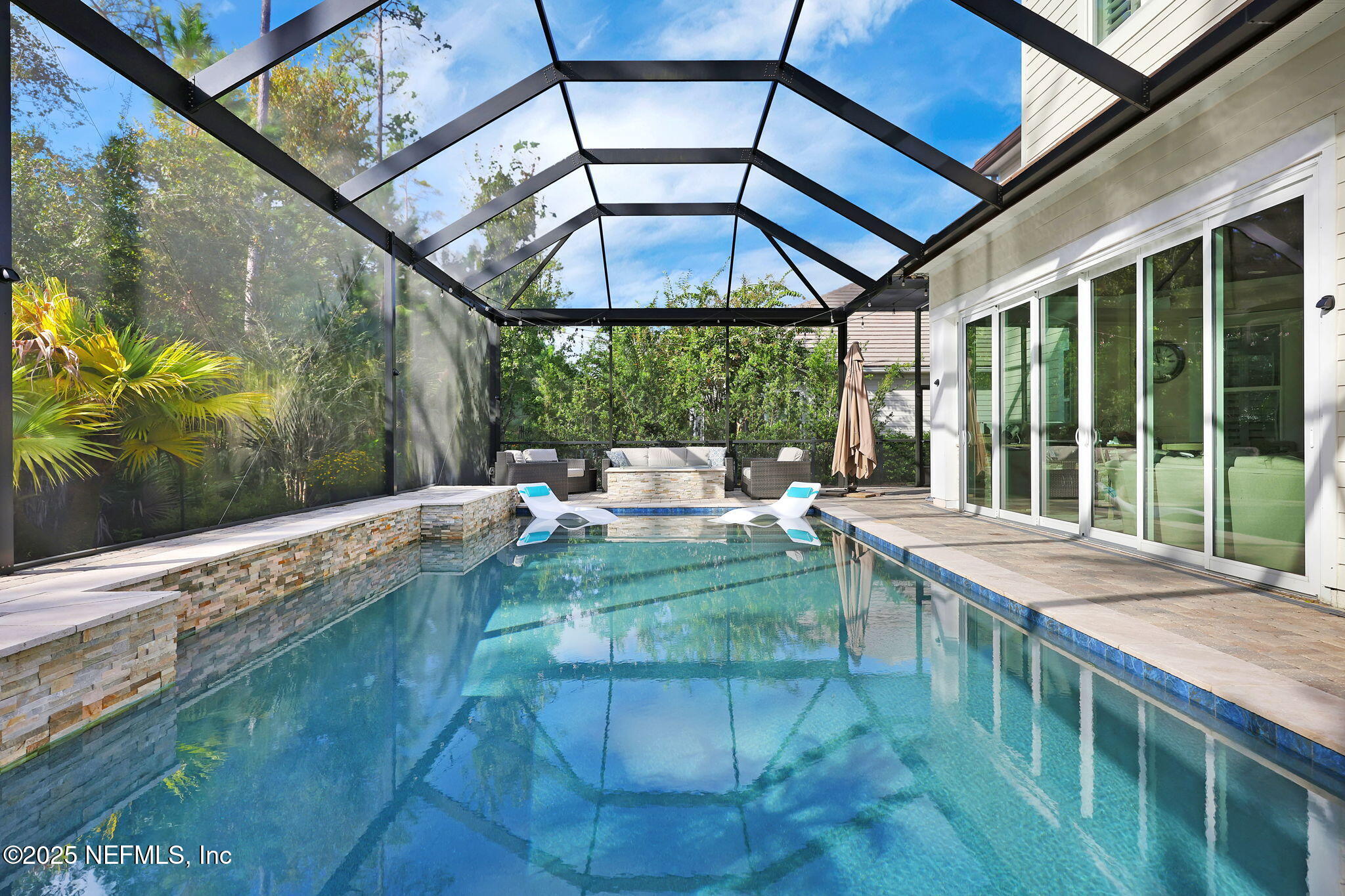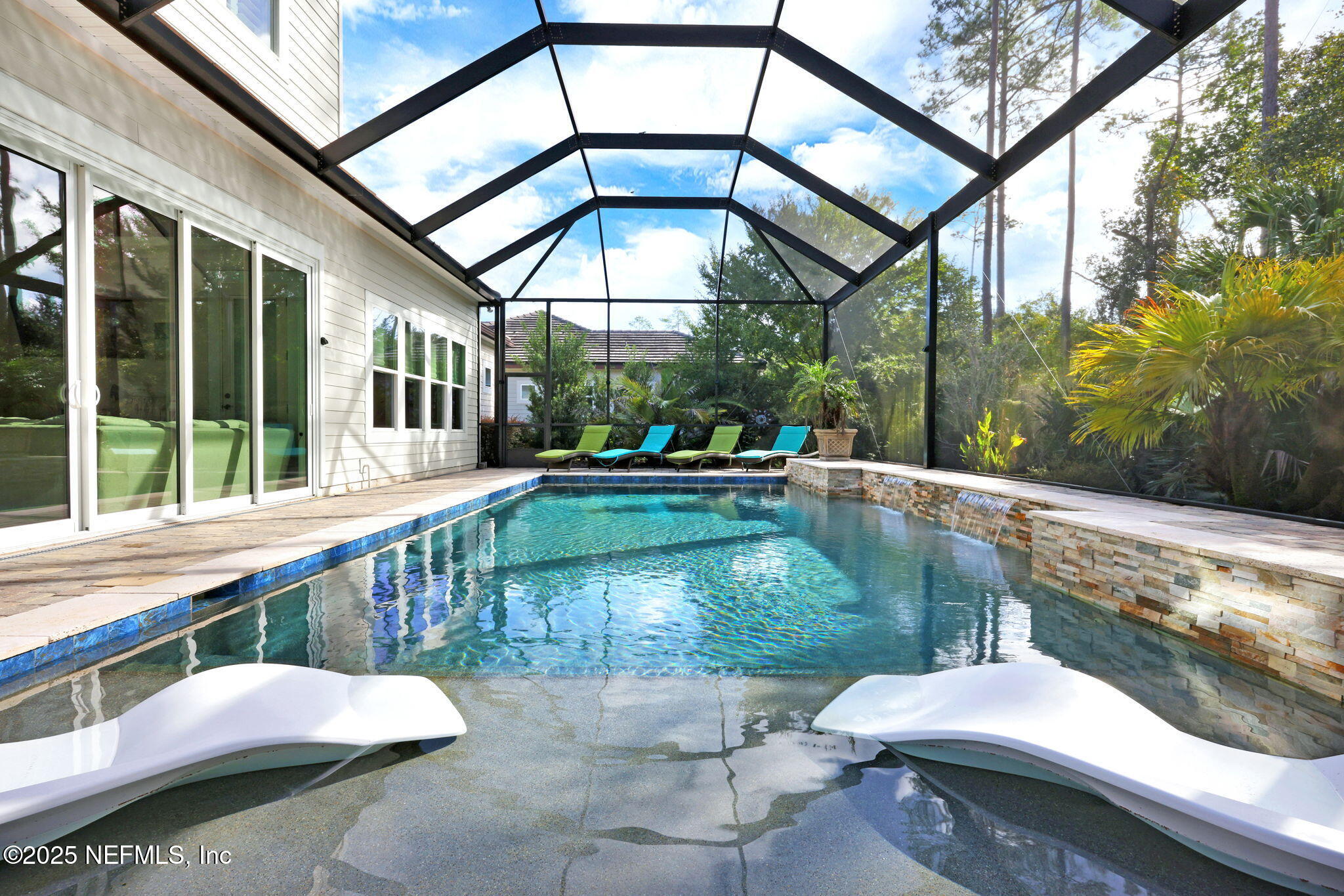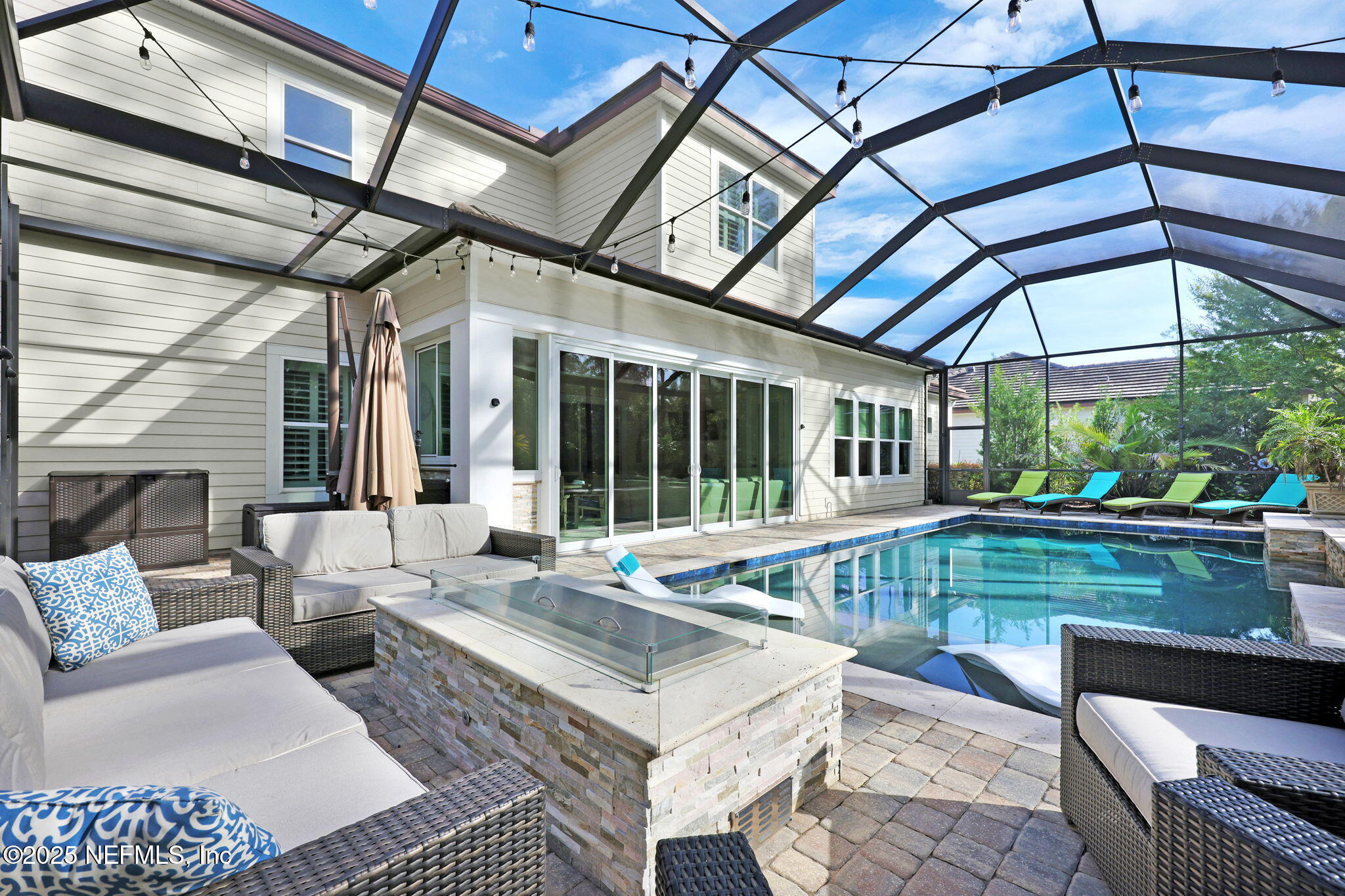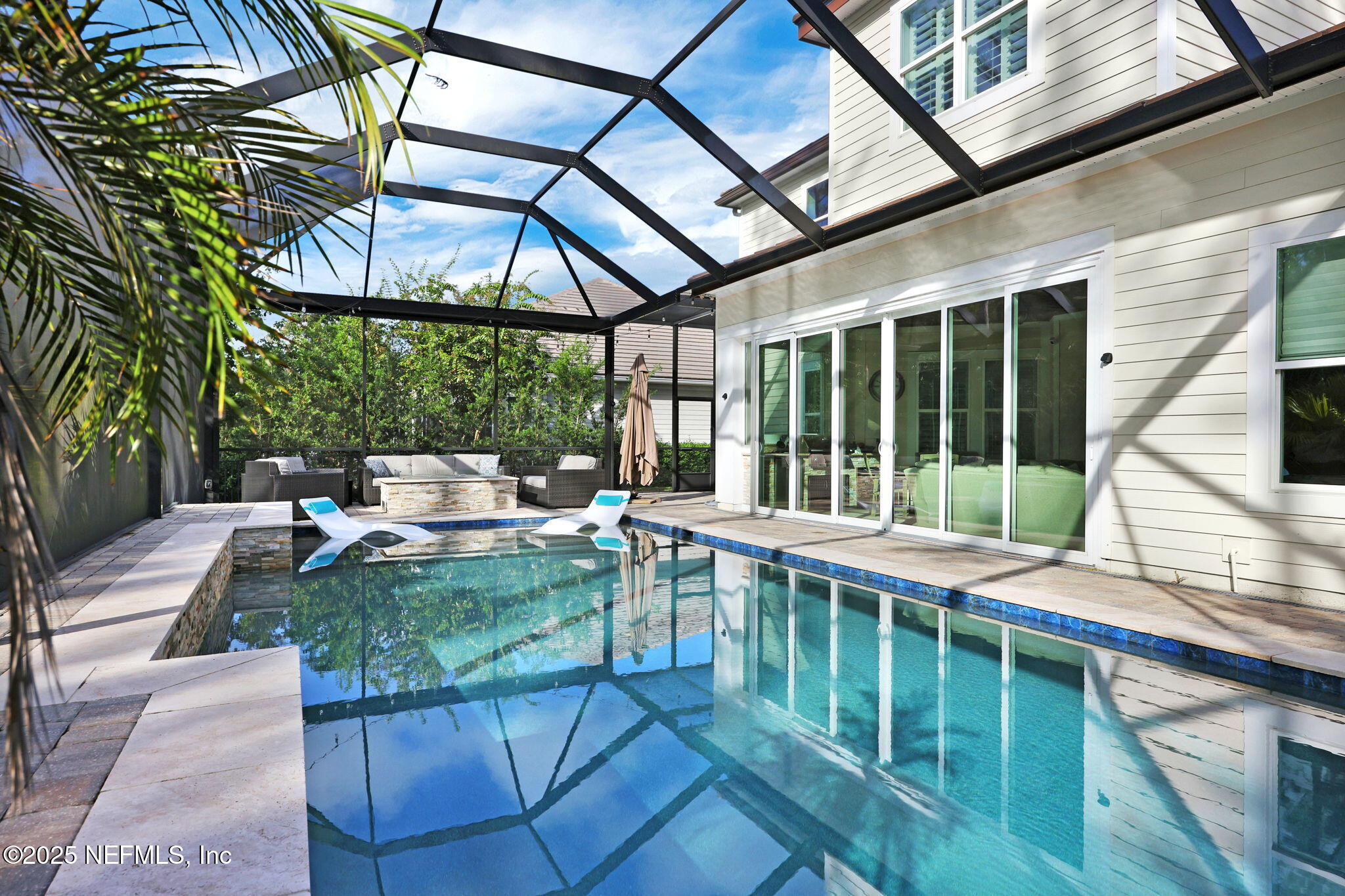 RARE OPPORTUNITY...Located in the highly sought-after Pointe at Twenty Mile, this estate pool home sits on a 90-foot-wide private preserve lot on a quiet cul-de-sac street offering privacy, space, and one of the most desirable settings in Nocatee. Homes with this combination of preserve views, oversized lot, and cul-de-sac street locations rarely come available. This Ladera by CalAtlantic offers a spacious, thoughtfully designed floorplan with five bedrooms, three full bathrooms, and a downstairs powder bath ideal for families, multigenerational living, or buyers who need flexible space for guests and home offices.From the double glass front doors to the dramatic foyer and family room with soaring 20-foot ceilings, this home delivers a grand yet welcoming first impression. The stone gas fireplace anchors the living space and adds warmth and architectural character. There is no wasted space, with dedicated area for working, gathering, relaxing, and entertaining. The first-floor owners suite is spacious, light-filled, and privately located. It features a custom walk-in closet with direct access to the laundry room for everyday convenience. A first-floor guest suite with an ensuite bath and walk-in closet is perfect for visitors, in-laws, or extended family.The gourmet kitchen is designed for both functionality and entertaining, featuring stacked cabinetry, a large prep and entertaining island, gas cooktop, stainless KitchenAid appliances, stainless hood vent, stylish backsplash, walk-in pantry, and a separate everyday dining area. A custom built-in bar with lighting adds a unique touch for hosting.The home opens to a year-round sunroom with wood ceilings, summer kitchen, and custom retractable sliding glass doors leading to a screened lanai. The outdoor space overlooks a resort-style pool and fire table, creating a true indoor-outdoor living experience with serene preserve views perfect for entertaining or relaxing year-round.Additional features of this wonderful home include... 90-foot-wide private preserve lot Electric heated saltwater pool with a sun shelf Outdoor fire table Retractable Motorized Screen on the right side of the lanai for added privacy and additional shade. Front & Rear Exterior Lighting First-floor owners suite and first-floor guest suite Bonus room/upstairs loft Surround sound in family room, kitchen, and on the lanai Oversized 3-car garage Solid surface flooring throughout (no carpet) Plantation shutters Whole-house water softener Drop zone/mudroom off the garage Laundry room with sink and cabinetry Extra Cabinetry in the Owners Bath Custom Wine area with large wine fridge Excellent storage throughout New 2nd Floor HVAC Unit- January 2026 Located on a quiet cul-de-sac street & SO MUCH MORE!This home is ideal for buyers seeking a luxury pool home in Nocatee with preserve privacy, a flexible multi-bedroom layout, first-floor living options, and premium indoor-outdoor entertaining space all in a quiet cul-de-sac street location within one of the communitys most desirable enclaves. This home wont last long. Come take a look!Nocatee offers an unparalleled lifestyle with a wide range of amenities designed for all ages and interests. Highlights include:Splash Water Park featuring the thrilling Rip Tide Slide, Lazy Tides River, Splash Cove, lagoon pool, a 330-foot zip line, and a swim club pool.Fitness Club with state-of-the-art cardio and weight equipment, free weights, and fitness classes.Greenway Trails, perfect for hiking and biking, spanning approximately 2,400 acres of stunning natural beauty along a 3.5-mile stretch of the Intracoastal Waterway.Dog Parks catering to your furry friends.Spray Park located behind the Nocatee Swim Club, offering even more water-filled fun for all.Nocatee continues to grow and enhance its offerings, with recent updates and expansions to the Splash and Spray Parks.With countless activities, stunning natural surroundings, and a strong sense of community, Nocatee is truly a wonderful place to call home.