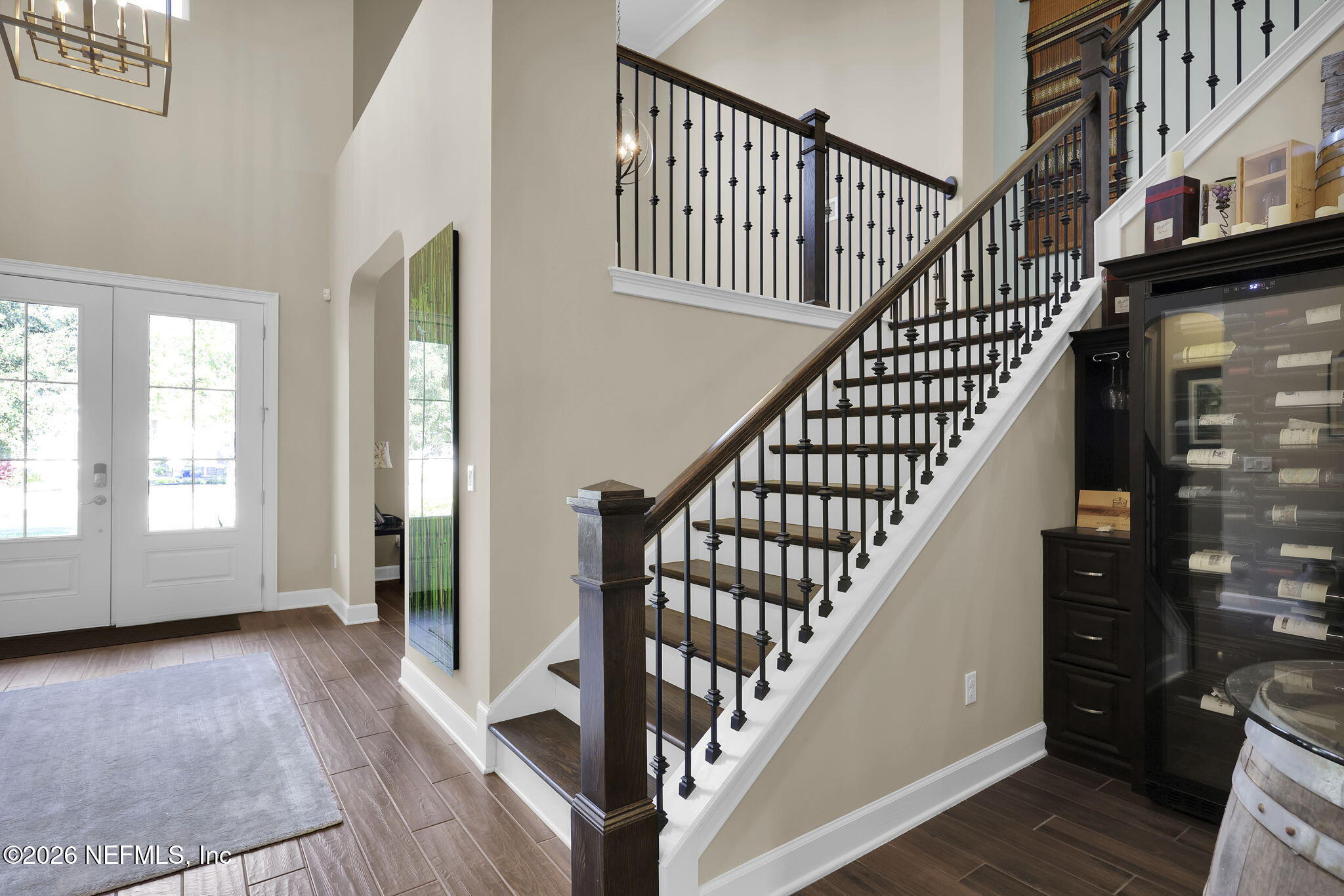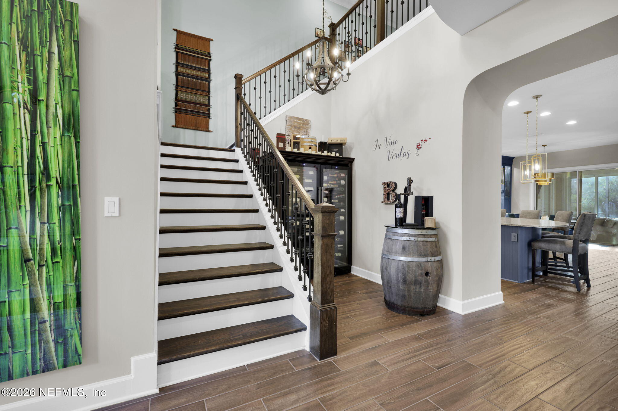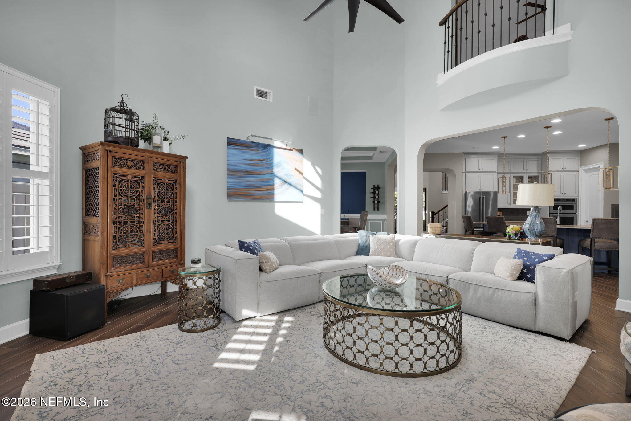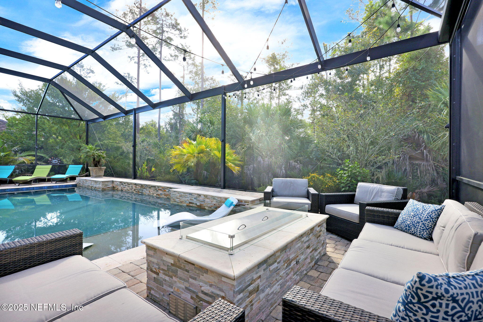 RARE OPPORTUNITY...Located in the highly sought-after Pointe at Twenty Mile, this estate pool home sits on a 90-foot-wide private preserve lot on a quiet cul-de-sac street offering privacy, space, and one of the most desirable settings in Nocatee. Homes with this combination of preserve views, oversized lot, and cul-de-sac street locations rarely come available. This Ladera by CalAtlantic offers a spacious, thoughtfully designed floorplan with five bedrooms, three full bathrooms, and a downstairs powder bath ideal for families, multigenerational living, or buyers who need flexible space for guests and home offices.From the double glass front doors to the dramatic foyer and family room with soaring 20-foot ceilings, this home delivers a grand yet welcoming first impression. The stone gas fireplace anchors the living space and adds warmth and architectural character. There is no wasted space, with dedicated area for working, gathering, relaxing, and entertaining. The first-floor owners suite is spacious, light-filled, and privately located. It features a custom walk-in closet with direct access to the laundry room for everyday convenience. A first-floor guest suite with an ensuite bath and walk-in closet is perfect for visitors, in-laws, or extended family.The gourmet kitchen is designed for both functionality and entertaining, featuring stacked cabinetry, a large prep and entertaining island, gas cooktop, stainless KitchenAid appliances, stainless hood vent, stylish backsplash, walk-in pantry, and a separate everyday dining area. A custom built-in bar with lighting adds a unique touch for hosting.The home opens to a year-round sunroom with wood ceilings, summer kitchen, and custom retractable sliding glass doors leading to a screened lanai. The outdoor space overlooks a resort-style pool and fire table, creating a true indoor-outdoor living experience with serene preserve views perfect for entertaining or relaxing year-round.Additional features of this wonderful home include... 90-foot-wide private preserve lot Electric heated saltwater pool with a sun shelf Outdoor fire table Retractable Motorized Screen on the right side of the lanai for added privacy and additional shade. Front & Rear Exterior Lighting First-floor owners suite and first-floor guest suite Bonus room/upstairs loft Surround sound in family room, kitchen, and on the lanai Oversized 3-car garage Solid surface flooring throughout (no carpet) Plantation shutters Whole-house water softener Drop zone/mudroom off the garage Laundry room with sink and cabinetry Extra Cabinetry in the Owners Bath Custom Wine area with large wine fridge Excellent storage throughout New 2nd Floor HVAC Unit- January 2026 Located on a quiet cul-de-sac street & SO MUCH MORE!This home is ideal for buyers seeking a luxury pool home in Nocatee with preserve privacy, a flexible multi-bedroom layout, first-floor living options, and premium indoor-outdoor entertaining space all in a quiet cul-de-sac street location within one of the communitys most desirable enclaves. This home wont last long. Come take a look!Nocatee offers an unparalleled lifestyle with a wide range of amenities designed for all ages and interests. Highlights include:Splash Water Park featuring the thrilling Rip Tide Slide, Lazy Tides River, Splash Cove, lagoon pool, a 330-foot zip line, and a swim club pool.Fitness Club with state-of-the-art cardio and weight equipment, free weights, and fitness classes.Greenway Trails, perfect for hiking and biking, spanning approximately 2,400 acres of stunning natural beauty along a 3.5-mile stretch of the Intracoastal Waterway.Dog Parks catering to your furry friends.Spray Park located behind the Nocatee Swim Club, offering even more water-filled fun for all.Nocatee continues to grow and enhance its offerings, with recent updates and expansions to the Splash and Spray Parks.With countless activities, stunning natural surroundings, and a strong sense of community, Nocatee is truly a wonderful place to call home.