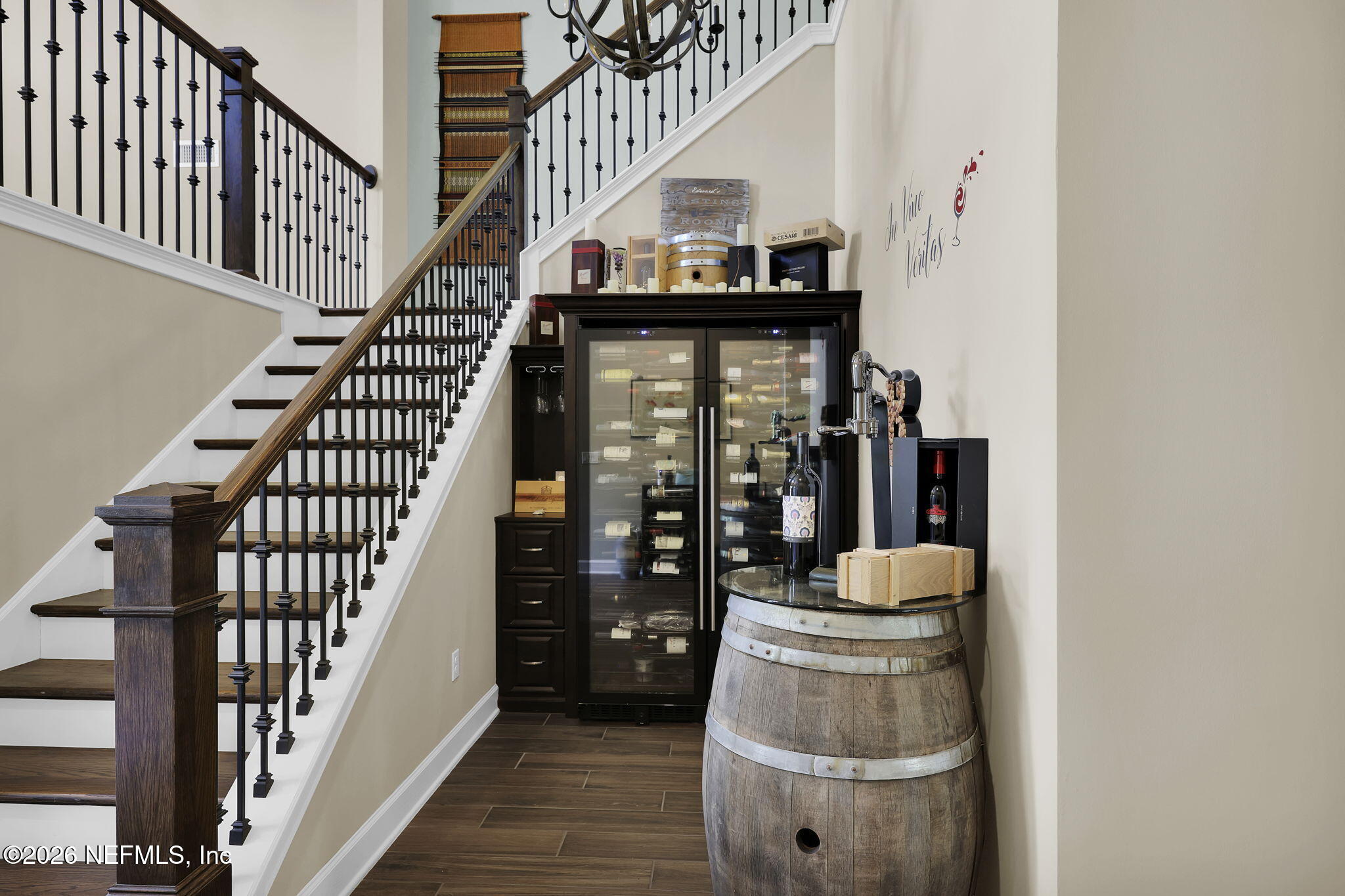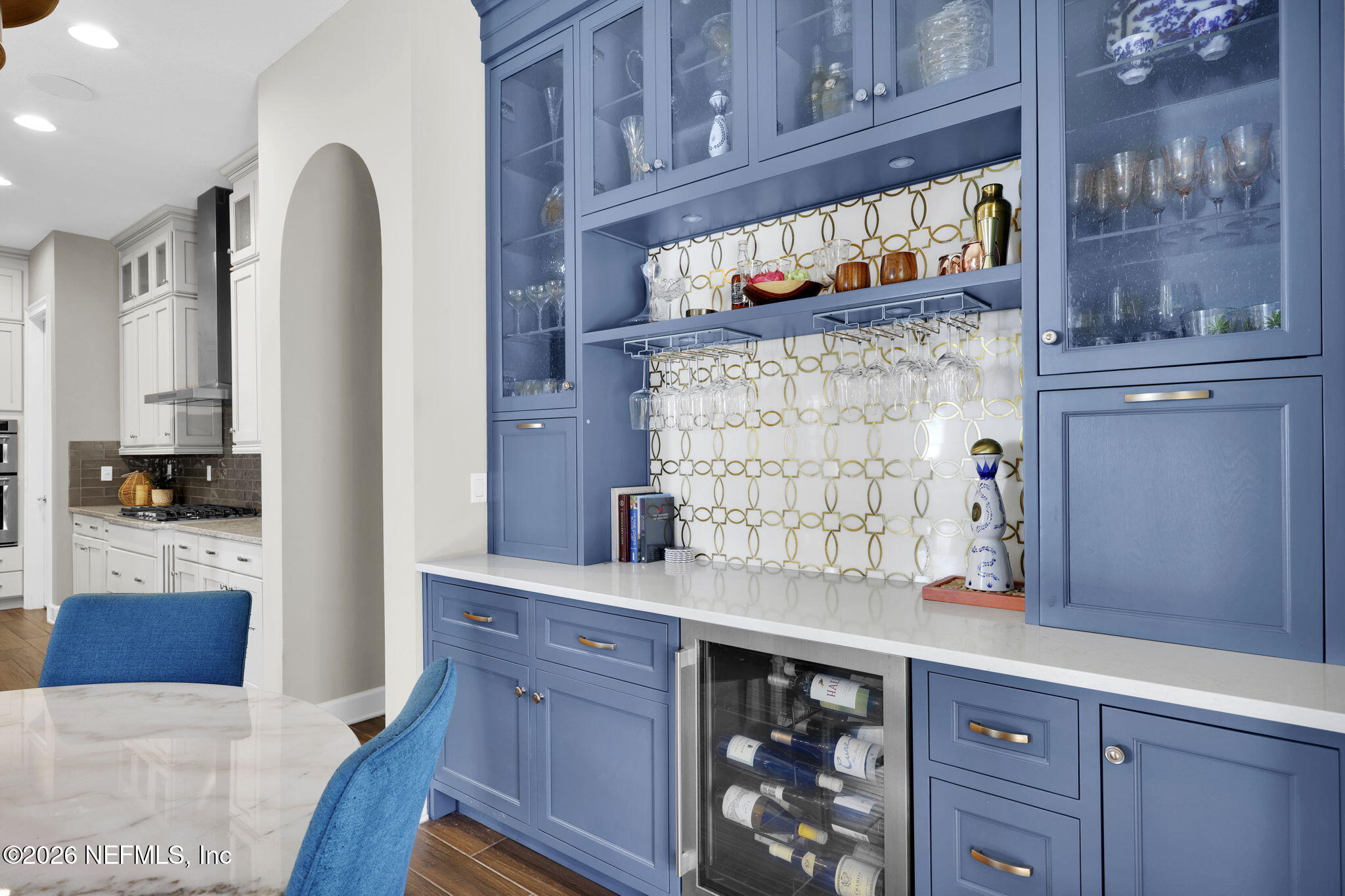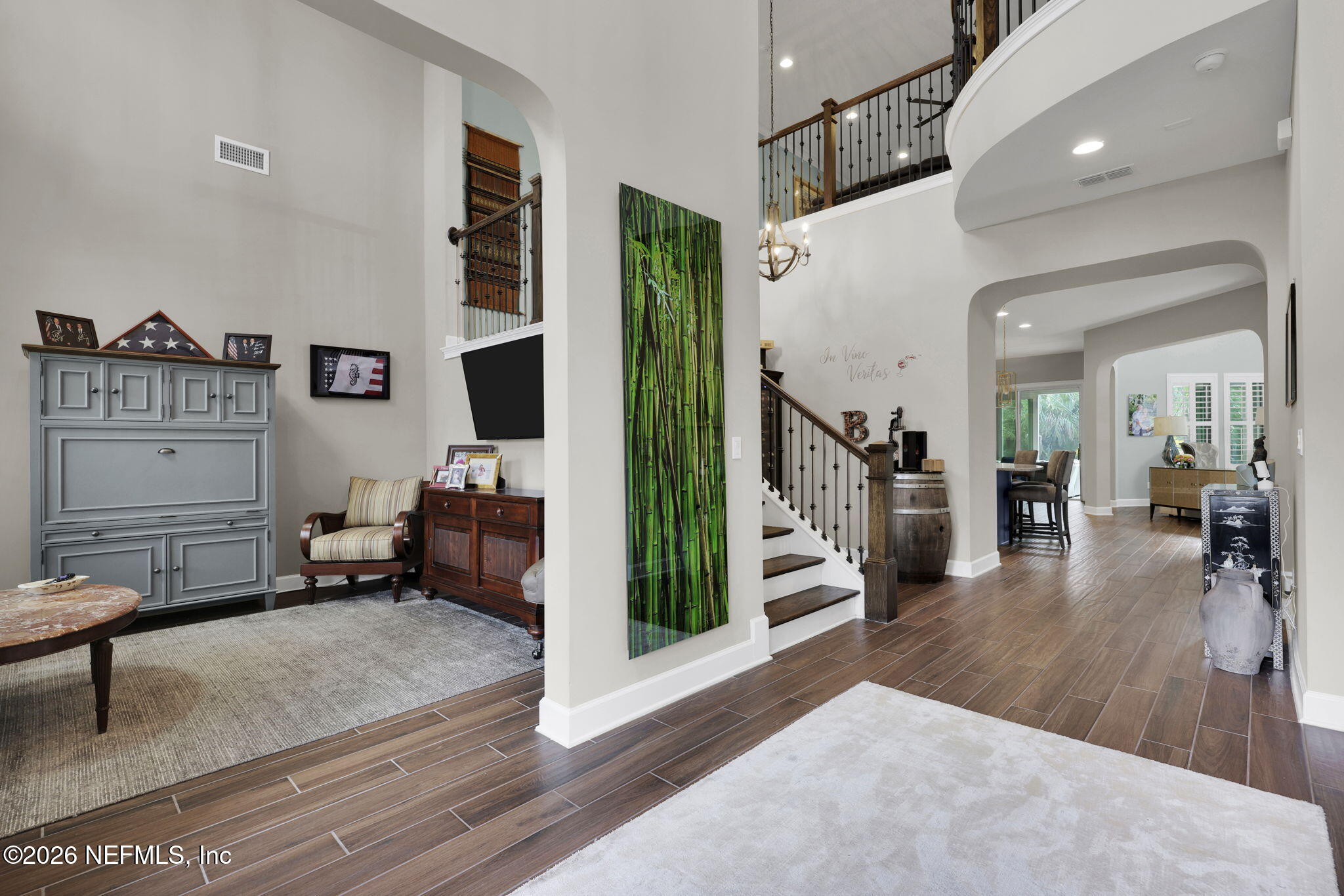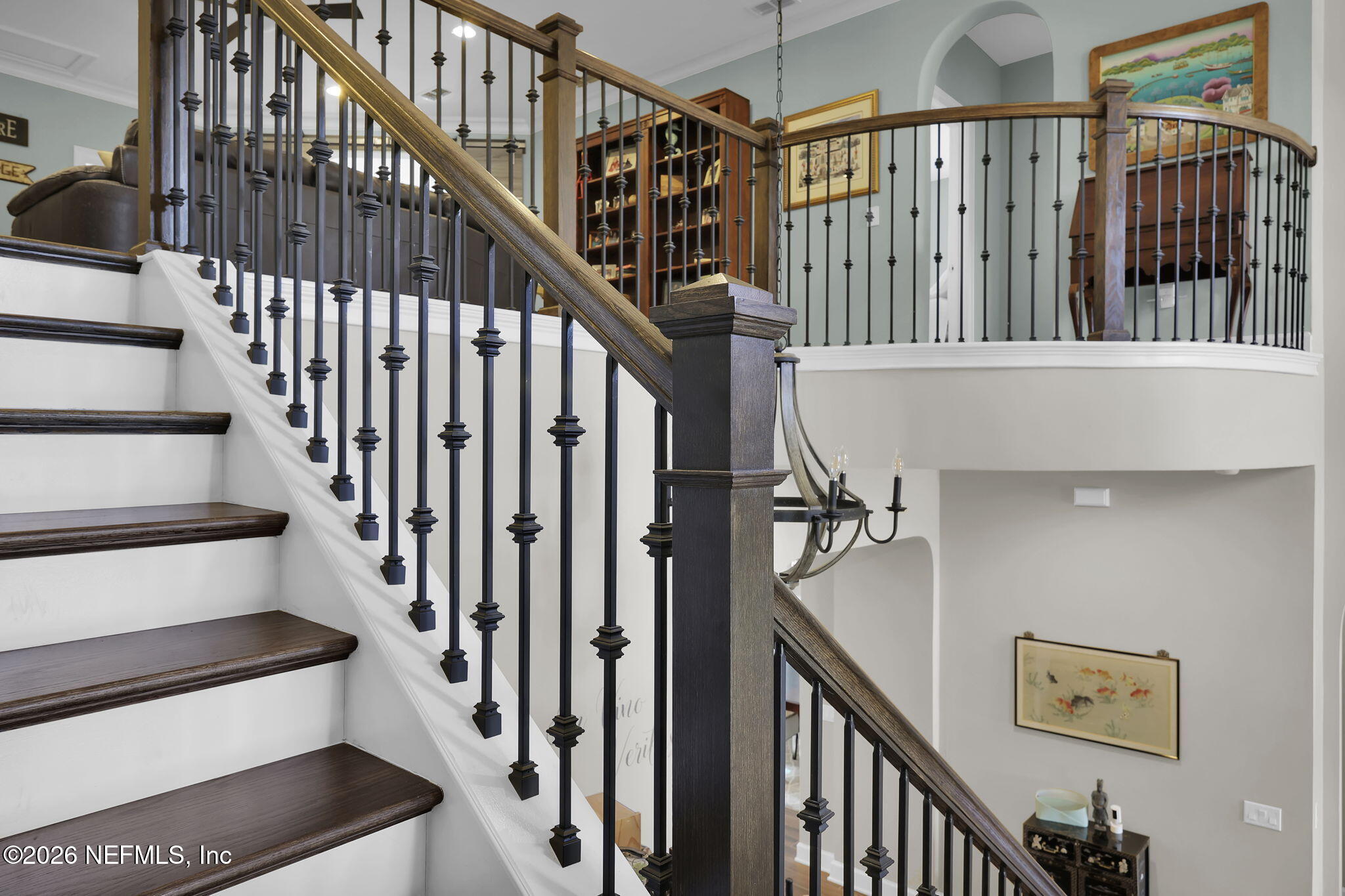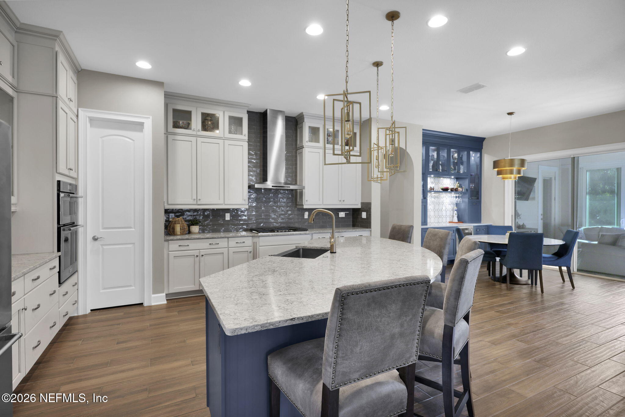 RARE OPPORTUNITY...Located in the highly sought-after Pointe at Twenty Mile, this estate pool home sits on a 90-foot-wide private preserve lot on a quiet cul-de-sac street offering privacy, space, and one of the most desirable settings in Nocatee. Homes with this combination of preserve views, oversized lot, and cul-de-sac street locations rarely come available. This Ladera by CalAtlantic offers a spacious, thoughtfully designed floorplan with five bedrooms, three full bathrooms, and a downstairs powder bath ideal for families, multigenerational living, or buyers who need flexible space for guests and home offices.From the double glass front doors to the dramatic foyer and family room with soaring 20-foot ceilings, this home delivers a grand yet welcoming first impression. The stone gas fireplace anchors the living space and adds warmth and architectural character. There is no wasted space, with dedicated area for working, gathering, relaxing, and entertaining. The first-floor owners suite is spacious, light-filled, and privately located. It features a custom walk-in closet with direct access to the laundry room for everyday convenience. A first-floor guest suite with an ensuite bath and walk-in closet is perfect for visitors, in-laws, or extended family.The gourmet kitchen is designed for both functionality and entertaining, featuring stacked cabinetry, a large prep and entertaining island, gas cooktop, stainless KitchenAid appliances, stainless hood vent, stylish backsplash, walk-in pantry, and a separate everyday dining area. A custom built-in bar with lighting adds a unique touch for hosting.The home opens to a year-round sunroom with wood ceilings, summer kitchen, and custom retractable sliding glass doors leading to a screened lanai. The outdoor space overlooks a resort-style pool and fire table, creating a true indoor-outdoor living experience with serene preserve views perfect for entertaining or relaxing year-round.Additional features of this wonderful home include... 90-foot-wide private preserve lot Electric heated saltwater pool with a sun shelf Outdoor fire table Retractable Motorized Screen on the right side of the lanai for added privacy and additional shade. Front & Rear Exterior Lighting First-floor owners suite and first-floor guest suite Bonus room/upstairs loft Surround sound in family room, kitchen, and on the lanai Oversized 3-car garage Solid surface flooring throughout (no carpet) Plantation shutters Whole-house water softener Drop zone/mudroom off the garage Laundry room with sink and cabinetry Extra Cabinetry in the Owners Bath Custom Wine area with large wine fridge Excellent storage throughout New 2nd Floor HVAC Unit- January 2026 Located on a quiet cul-de-sac street & SO MUCH MORE!This home is ideal for buyers seeking a luxury pool home in Nocatee with preserve privacy, a flexible multi-bedroom layout, first-floor living options, and premium indoor-outdoor entertaining space all in a quiet cul-de-sac street location within one of the communitys most desirable enclaves. This home wont last long. Come take a look!Nocatee offers an unparalleled lifestyle with a wide range of amenities designed for all ages and interests. Highlights include:Splash Water Park featuring the thrilling Rip Tide Slide, Lazy Tides River, Splash Cove, lagoon pool, a 330-foot zip line, and a swim club pool.Fitness Club with state-of-the-art cardio and weight equipment, free weights, and fitness classes.Greenway Trails, perfect for hiking and biking, spanning approximately 2,400 acres of stunning natural beauty along a 3.5-mile stretch of the Intracoastal Waterway.Dog Parks catering to your furry friends.Spray Park located behind the Nocatee Swim Club, offering even more water-filled fun for all.Nocatee continues to grow and enhance its offerings, with recent updates and expansions to the Splash and Spray Parks.With countless activities, stunning natural surroundings, and a strong sense of community, Nocatee is truly a wonderful place to call home.