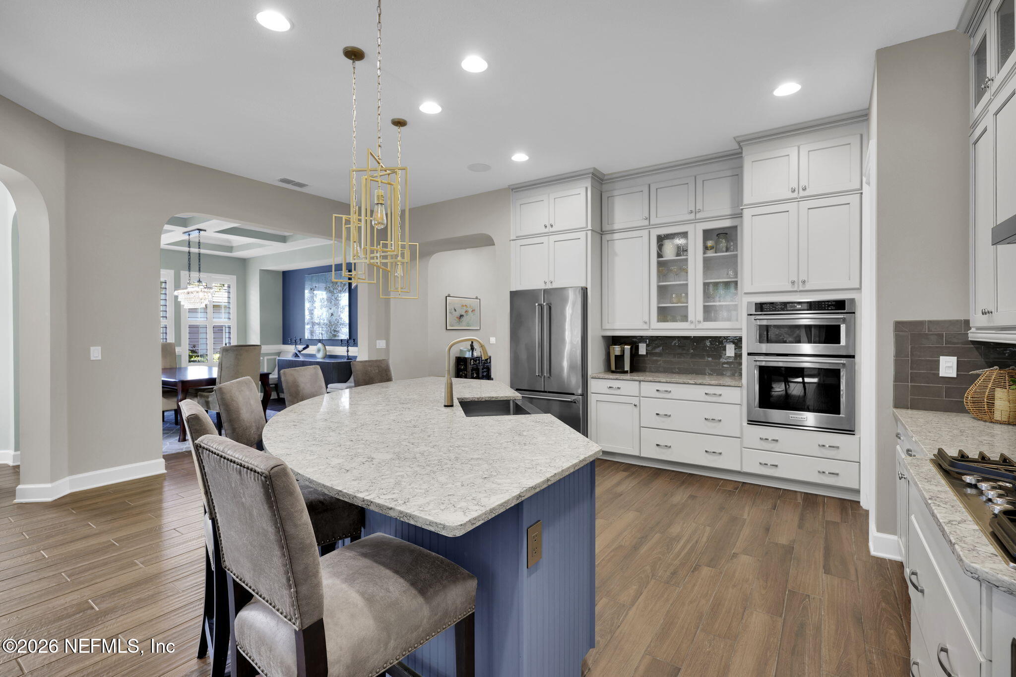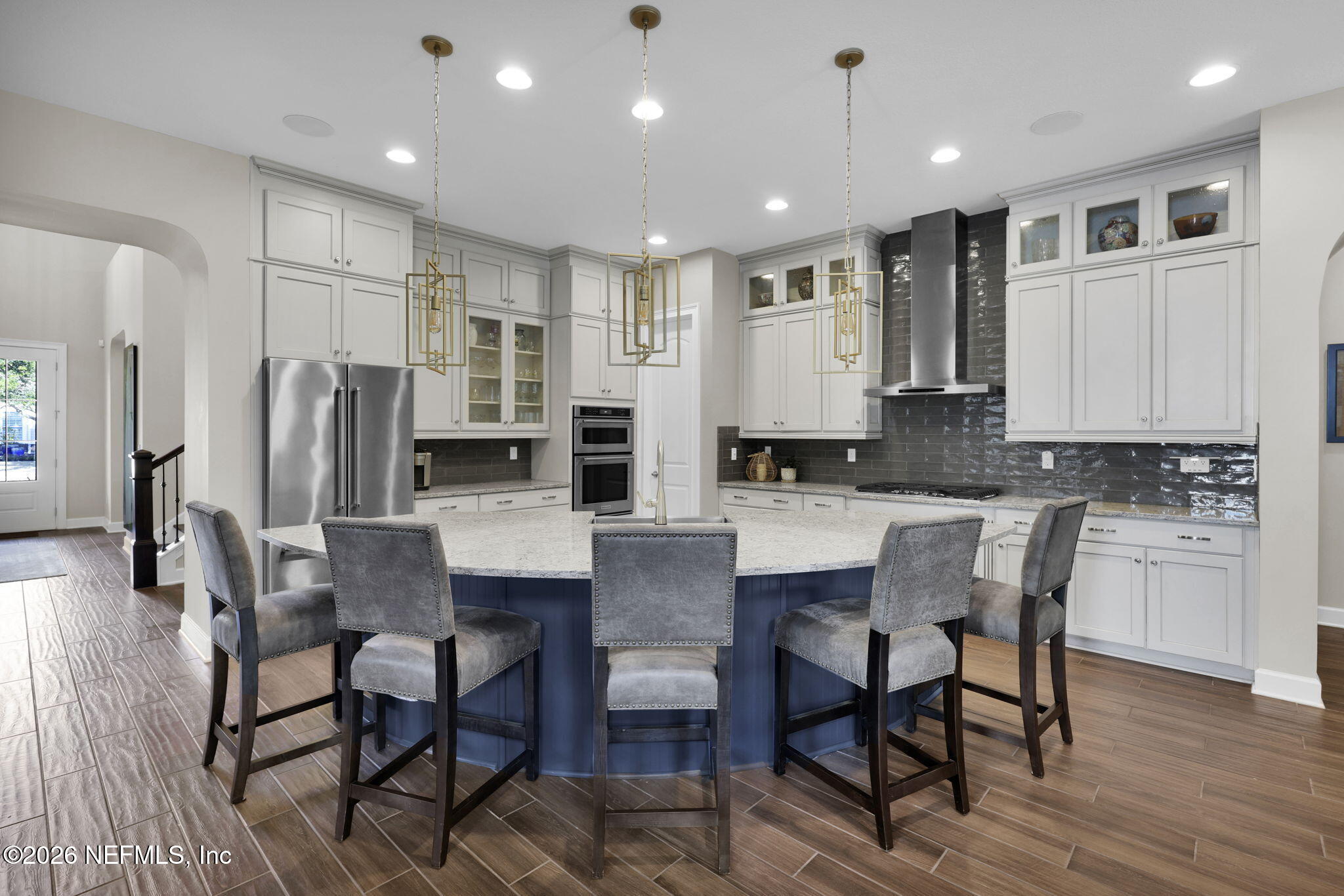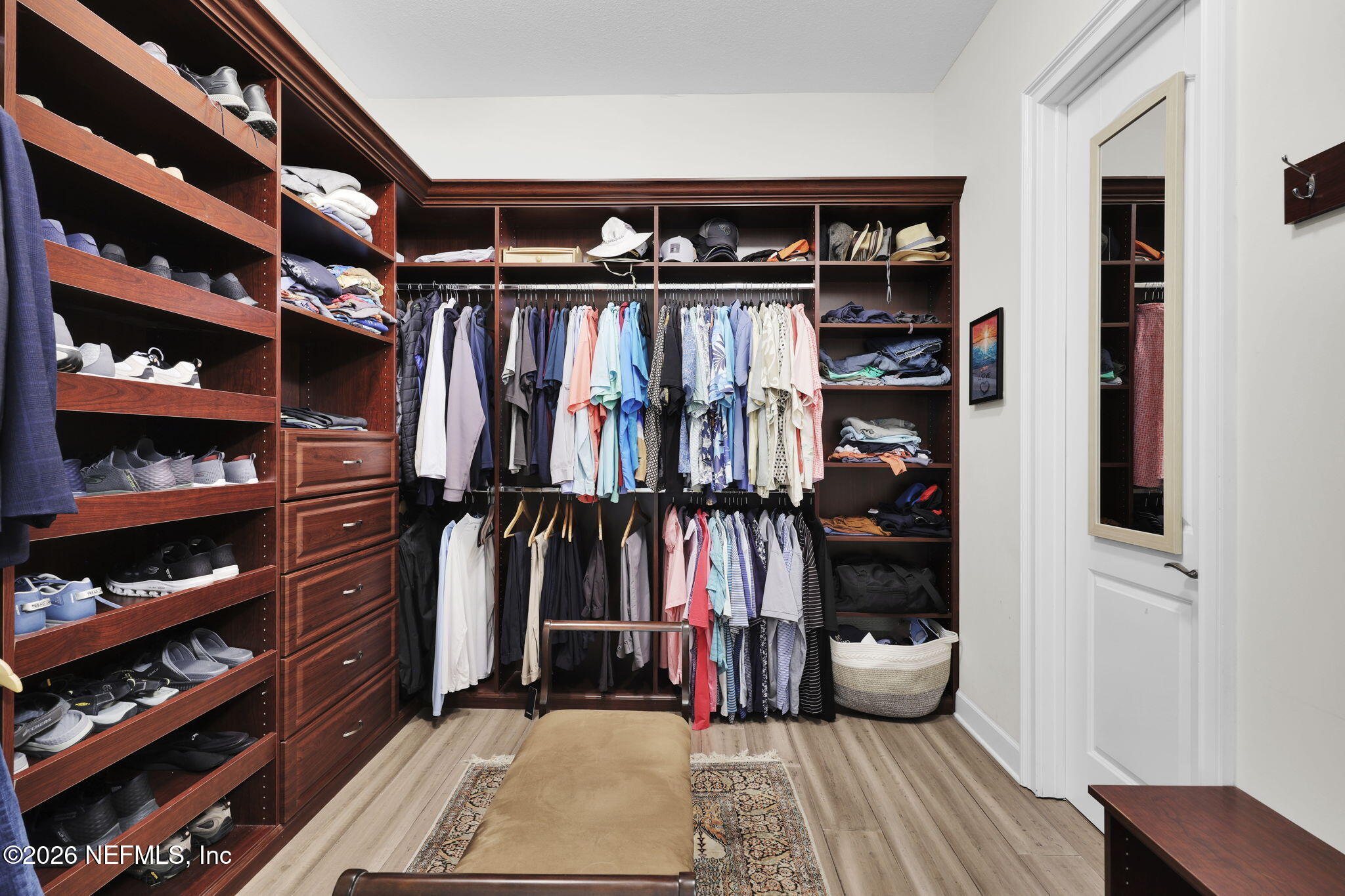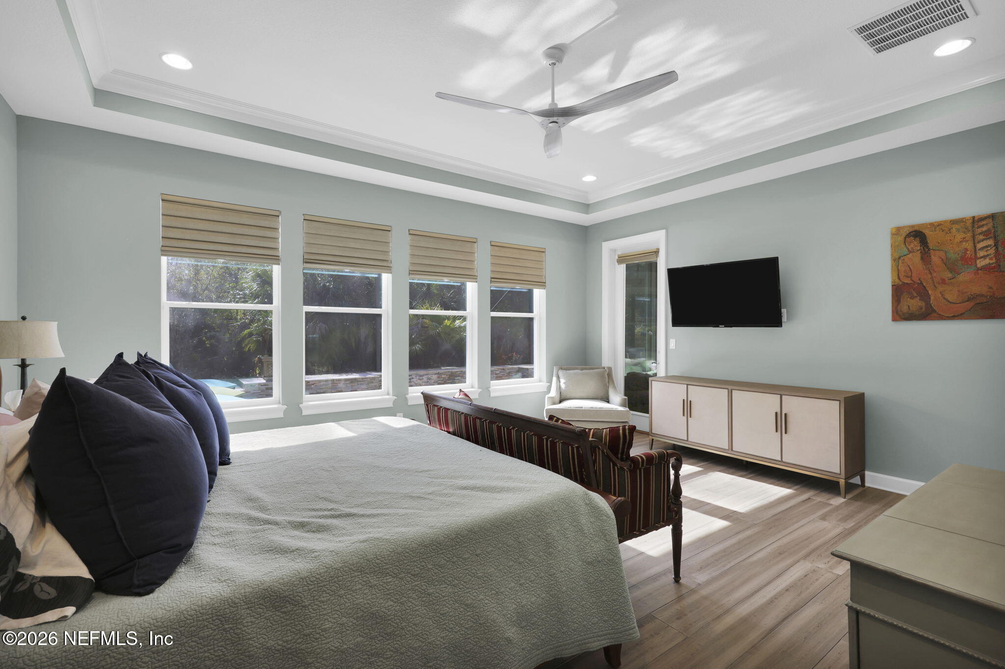 RARE OPPORTUNITY...Located in the highly sought-after Pointe at Twenty Mile, this estate pool home sits on a 90-foot-wide private preserve lot on a quiet cul-de-sac street offering privacy, space, and one of the most desirable settings in Nocatee. Homes with this combination of preserve views, oversized lot, and cul-de-sac street locations rarely come available. This Ladera by CalAtlantic offers a spacious, thoughtfully designed floorplan with five bedrooms, three full bathrooms, and a downstairs powder bath ideal for families, multigenerational living, or buyers who need flexible space for guests and home offices.From the double glass front doors to the dramatic foyer and family room with soaring 20-foot ceilings, this home delivers a grand yet welcoming first impression. The stone gas fireplace anchors the living space and adds warmth and architectural character. There is no wasted space, with dedicated area for working, gathering, relaxing, and entertaining. The first-floor owners suite is spacious, light-filled, and privately located. It features a custom walk-in closet with direct access to the laundry room for everyday convenience. A first-floor guest suite with an ensuite bath and walk-in closet is perfect for visitors, in-laws, or extended family.The gourmet kitchen is designed for both functionality and entertaining, featuring stacked cabinetry, a large prep and entertaining island, gas cooktop, stainless KitchenAid appliances, stainless hood vent, stylish backsplash, walk-in pantry, and a separate everyday dining area. A custom built-in bar with lighting adds a unique touch for hosting.The home opens to a year-round sunroom with wood ceilings, summer kitchen, and custom retractable sliding glass doors leading to a screened lanai. The outdoor space overlooks a resort-style pool and fire table, creating a true indoor-outdoor living experience with serene preserve views perfect for entertaining or relaxing year-round.Additional features of this wonderful home include... 90-foot-wide private preserve lot Electric heated saltwater pool with a sun shelf Outdoor fire table Retractable Motorized Screen on the right side of the lanai for added privacy and additional shade. Front & Rear Exterior Lighting First-floor owners suite and first-floor guest suite Bonus room/upstairs loft Surround sound in family room, kitchen, and on the lanai Oversized 3-car garage Solid surface flooring throughout (no carpet) Plantation shutters Whole-house water softener Drop zone/mudroom off the garage Laundry room with sink and cabinetry Extra Cabinetry in the Owners Bath Custom Wine area with large wine fridge Excellent storage throughout New 2nd Floor HVAC Unit- January 2026 Located on a quiet cul-de-sac street & SO MUCH MORE!This home is ideal for buyers seeking a luxury pool home in Nocatee with preserve privacy, a flexible multi-bedroom layout, first-floor living options, and premium indoor-outdoor entertaining space all in a quiet cul-de-sac street location within one of the communitys most desirable enclaves. This home wont last long. Come take a look!Nocatee offers an unparalleled lifestyle with a wide range of amenities designed for all ages and interests. Highlights include:Splash Water Park featuring the thrilling Rip Tide Slide, Lazy Tides River, Splash Cove, lagoon pool, a 330-foot zip line, and a swim club pool.Fitness Club with state-of-the-art cardio and weight equipment, free weights, and fitness classes.Greenway Trails, perfect for hiking and biking, spanning approximately 2,400 acres of stunning natural beauty along a 3.5-mile stretch of the Intracoastal Waterway.Dog Parks catering to your furry friends.Spray Park located behind the Nocatee Swim Club, offering even more water-filled fun for all.Nocatee continues to grow and enhance its offerings, with recent updates and expansions to the Splash and Spray Parks.With countless activities, stunning natural surroundings, and a strong sense of community, Nocatee is truly a wonderful place to call home.