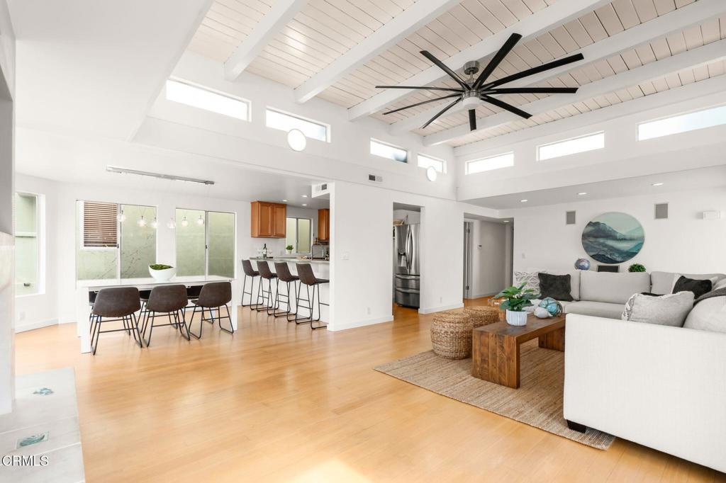 **The Ultimate Hollywood Beach Opportunity with Marina and Ocean Views**Indulge in premier coastal living from this extraordinary multi-level residence, perfectly positioned between the sands of Hollywood Beach and the vibrant Channel Islands Harbor. This is a rare offering that blends a desirable lifestyle, unparalleled versatility, and a remarkable investment opportunity in one of Oxnards most coveted neighborhoods.The main residence welcomes you with an expansive, open-concept design where soaring tongue-and-groove ceilings and dramatic wood beams create an atmosphere of timeless coastal elegance. Bathed in natural light, warm floors flow throughout this sophisticated space, leading to a kitchen and baths ready for both quiet relaxation and lively entertaining.A standout feature that sets this home apart is the self-contained guest suite on the ground floor. With its own private entrance, kitchen, living area, and patio, it functions as a perfect sanctuary for extended family, a lavish retreat for visitors, or as a powerful income-generating asset to offset your mortgage.Ascend to your exclusive third-level deck--a breathtaking escape offering spectacular views of the marina and beach. This expansive outdoor space is your private stage for morning coffee, sunset cocktails, or unforgettable evenings spent watching the sailboats glide by under the stars.This residence represents a magnificent opportunity for the discerning buyer. Surrounded by acclaimed restaurants, yacht clubs, and the weekend farmers market, the ultimate beach lifestyle awaits. Do not miss this unique convergence of location, potential, and value. Come, explore the possibilities and capture your Hollywood Beach dream.
