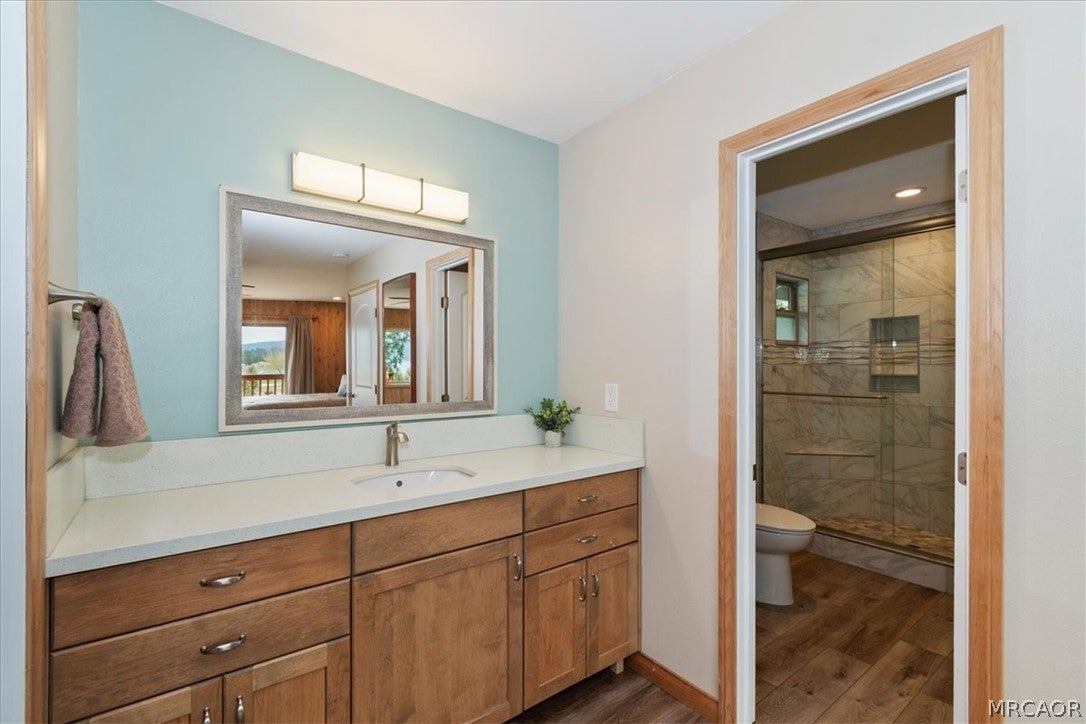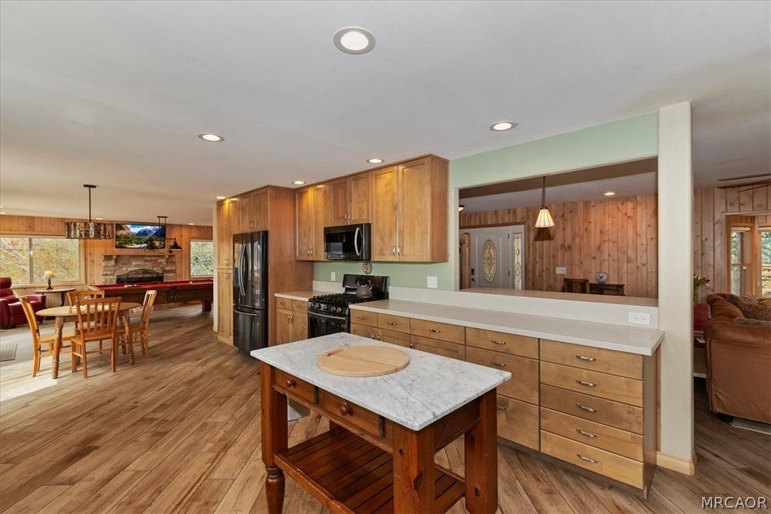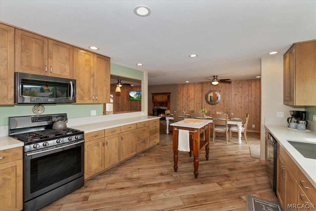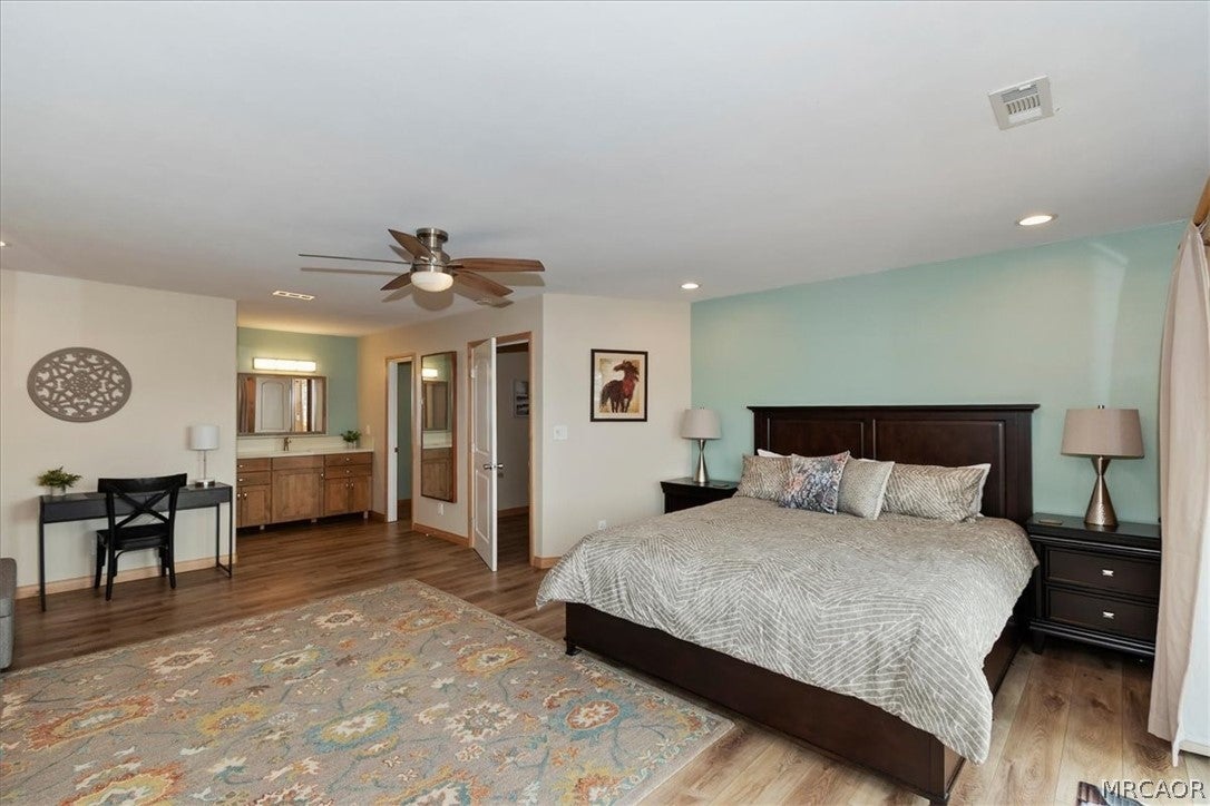 Welcome to lakefront living at its finest in the highly sought-after Eagle Point. Perfectly positioned on a generous 14,168 sq ft lot, this beautifully updated 4-bedroom, 3-bathroom home offers 2,755 sq ft of thoughtfully designed space and an unbeatable front-row seat to Big Bear Lake. Step inside to an open-concept floor plan designed for both comfort and entertaining, featuring a spacious living area anchored by one of three fireplaces, creating the perfect mountain ambiance year-round. The expansive kitchen is ideal for hosting, complete with alder cabinetry, ample counter space, and seamless flow into the main living and dining areas. This home was made for gathering and unwinding, with a separate game room featuring a pool table and its own fireplaceperfect for aprs-ski evenings or summer nights after a day on the lake. The primary suite is a true retreat, offering its own fireplace, added soundproof insulation for privacy, and a cozy, elevated feel. Thoughtful upgrades are found throughout, including cedar-lined closets, porcelain flooring downstairs, waterproof vinyl flooring upstairs, and a striking oak staircase that ties the home together with warmth and style. Step outside onto the back deck and take in what may be some of the most breathtaking sunset views in Big Bear. With lakefront access and dock rights, this property offers the ultimate waterfront lifestyle. Enjoy front-row seats to the 4th of July fireworks over the lake and the magical torchlight parade on New Years Everight from your own backyard. Complete with an attached 2-car garage and located in one of Big Bear Lakes most desirable neighborhoods, this home is the perfect blend of luxury, comfort, and iconic mountain living.