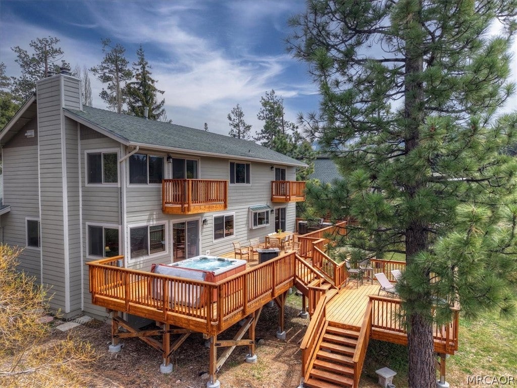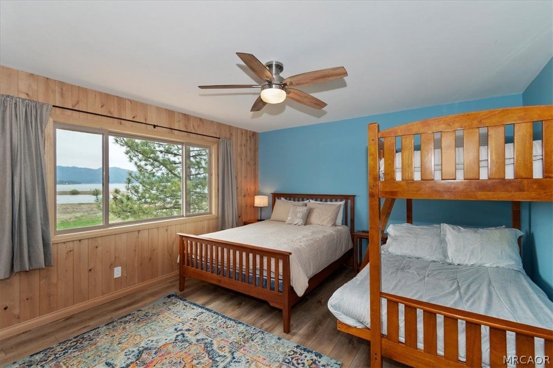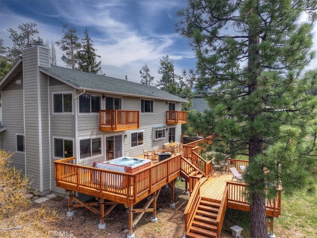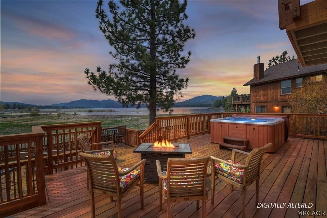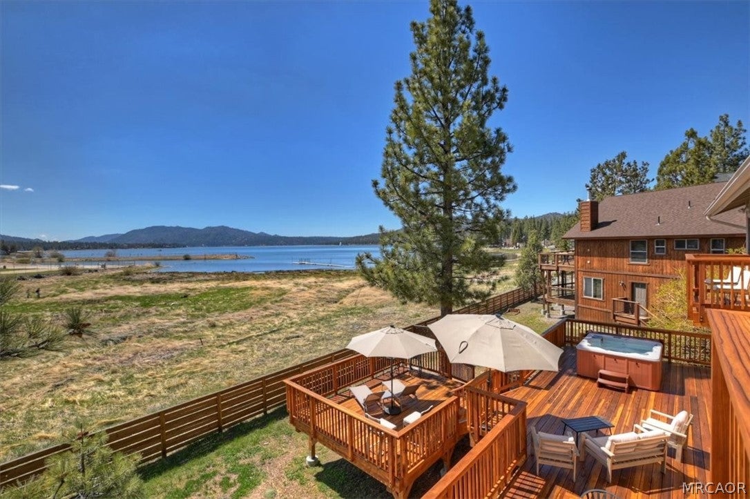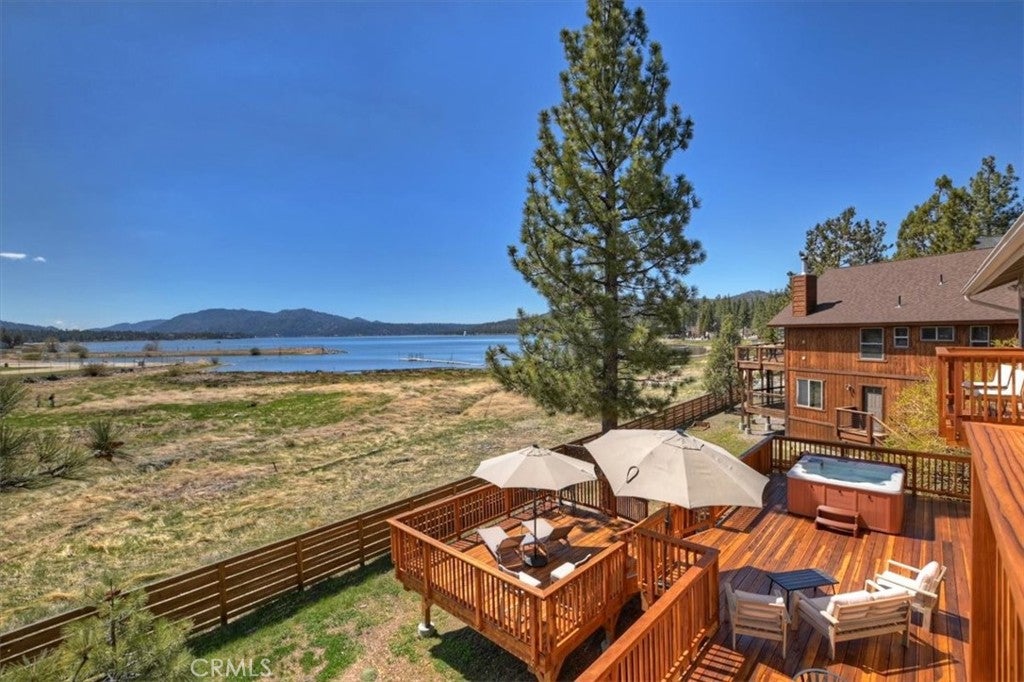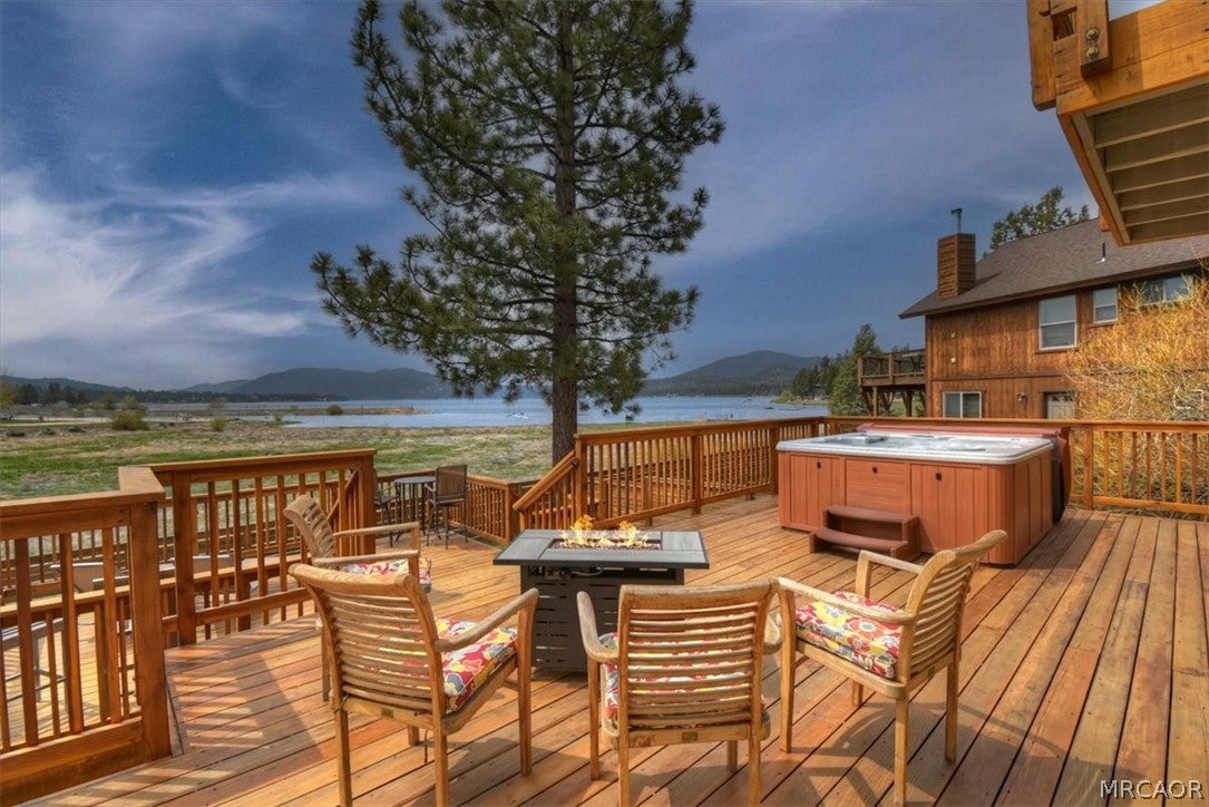 Welcome to lakefront living at its finest in the highly sought-after Eagle Point.Perfectly positioned on a generous 14,168 sq ft lot, this beautifully updated 4-bedroom, 3-bathroom home offers 2,755 sq ft of thoughtfully designed space and an unbeatable front-row seat to Big Bear Lake.Step inside to an open-concept floor plan designed for both comfort and entertaining, featuring a spacious living area anchored by one of three fireplaces, creating the perfect mountain ambiance year-round. The expansive kitchen is ideal for hosting, complete with alder cabinetry, ample counter space, and seamless flow into the main living and dining areas.This home was made for gathering and unwinding, with a separate game room featuring a pool table and its own fireplaceperfect for aprs-ski evenings or summer nights after a day on the lake. The primary suite is a true retreat, offering its own fireplace, added soundproof insulation for privacy, and a cozy, elevated feel.Thoughtful upgrades are found throughout, including cedar-lined closets, porcelain flooring downstairs, waterproof vinyl flooring upstairs, and a striking oak staircase that ties the home together with warmth and style.Step outside onto the back deck and take in what may be some of the most breathtaking sunset views in Big Bear. With lakefront access and dock rights, this property offers the ultimate waterfront lifestyle. Enjoy front-row seats to the 4th of July fireworks over the lake and the magical torchlight parade on New Years Everight from your own backyard.Complete with an attached 2-car garage and located in one of Big Bear Lakes most desirable neighborhoods, this home is the perfect blend of luxury, comfort, and iconic mountain living.
