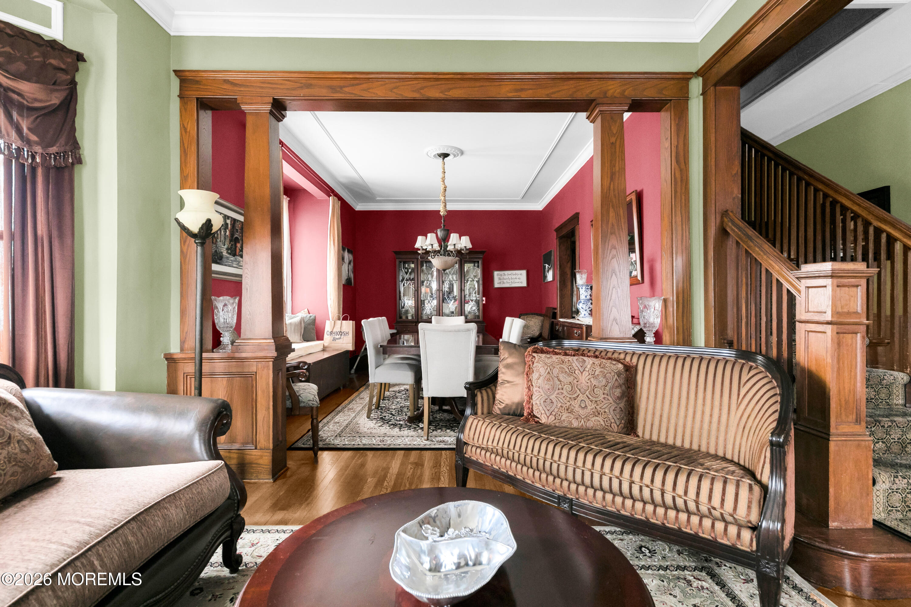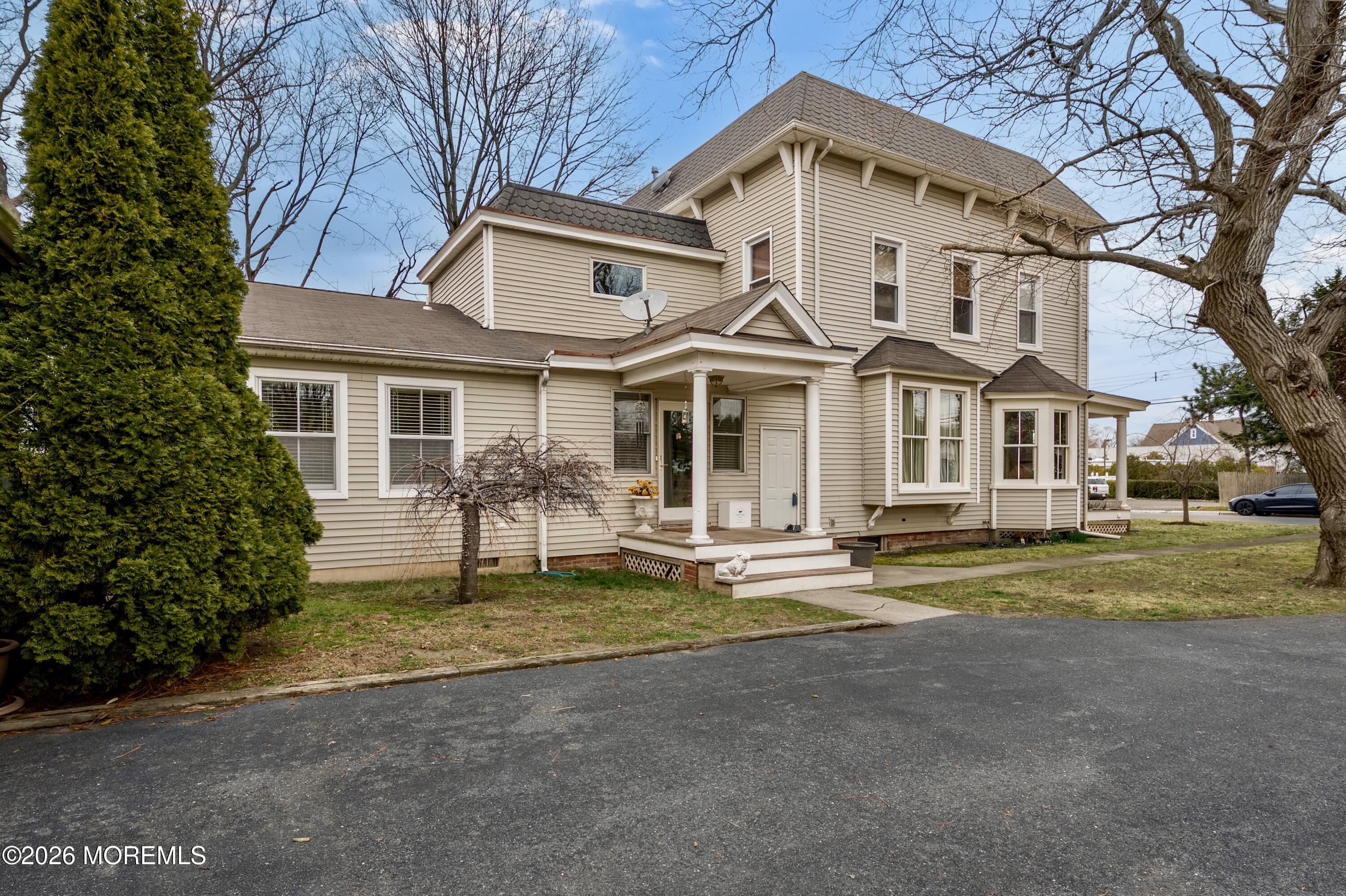 Welcome to this inviting 5-bedroom French Victorian in desirable West Long Branch, set on a quiet block near beaches, parks, shopping, and houses of worship. Featuring chestnut wood floors and high ceilings, the home offers a bright, open feel. The sunlit updated kitchen includes stainless steel appliances, granite countertops, and flows into the family room with a built-in bar.