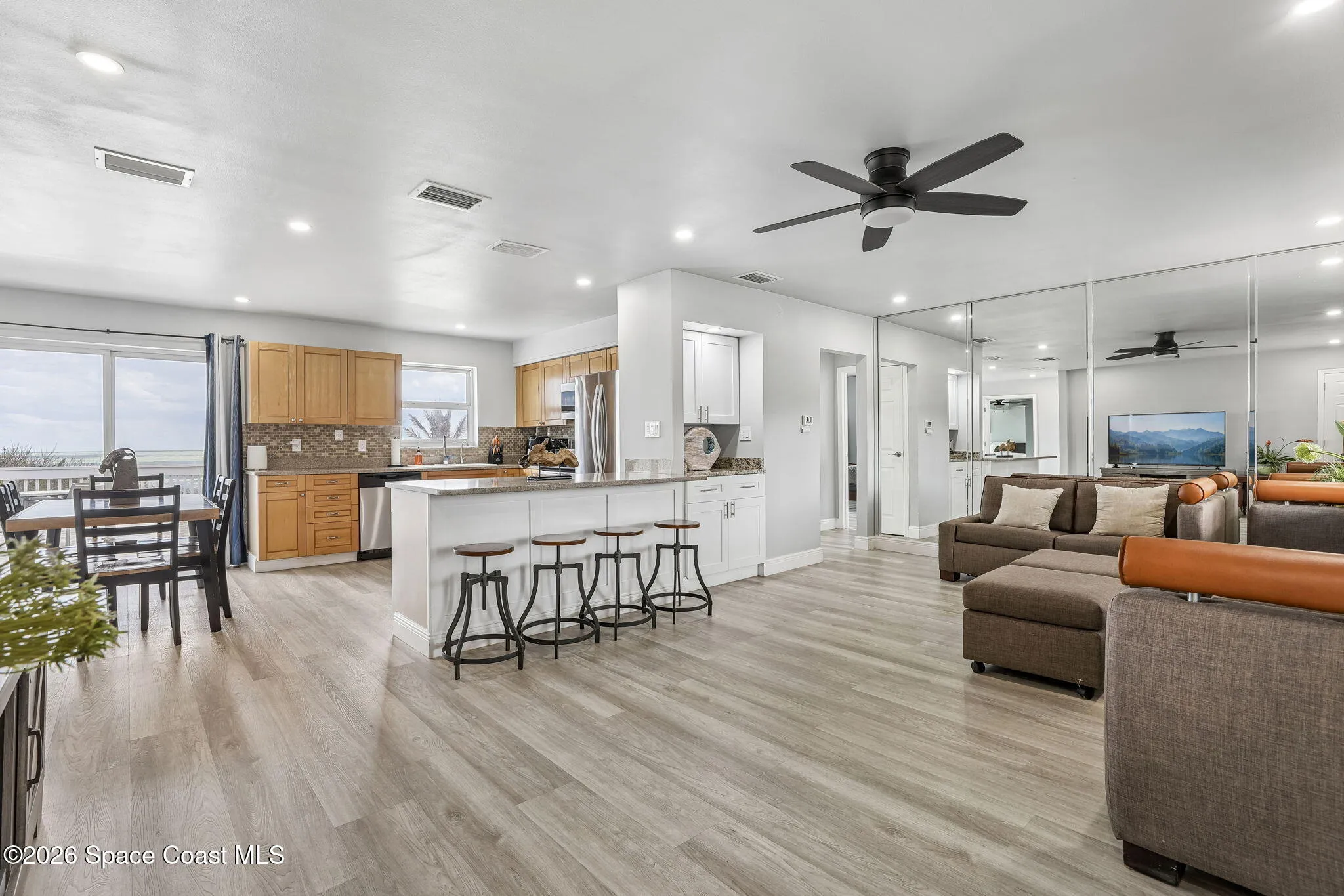 BEACHFRONT BENEFITS! Live the coastal lifestyle, where it feels like youre always on vacation. Newly architected and fully remodeled, down to the studs in 2022. This versatile floorplan features separate entrances & dual power meters, allowing it to function as a spacious single-family home or duplex - live in one and rent the other. Current zoning permits short term rentals. Step outside to world class surfing, fishing, and shimmering sunrises on the largest sea turtle nesting beach in the Western Hemisphere. Whether youre seeking a private family retreat or a turnkey rental powerhouse, this is an unmatched opportunity to own a piece of the shore! Come explore the possibilities!