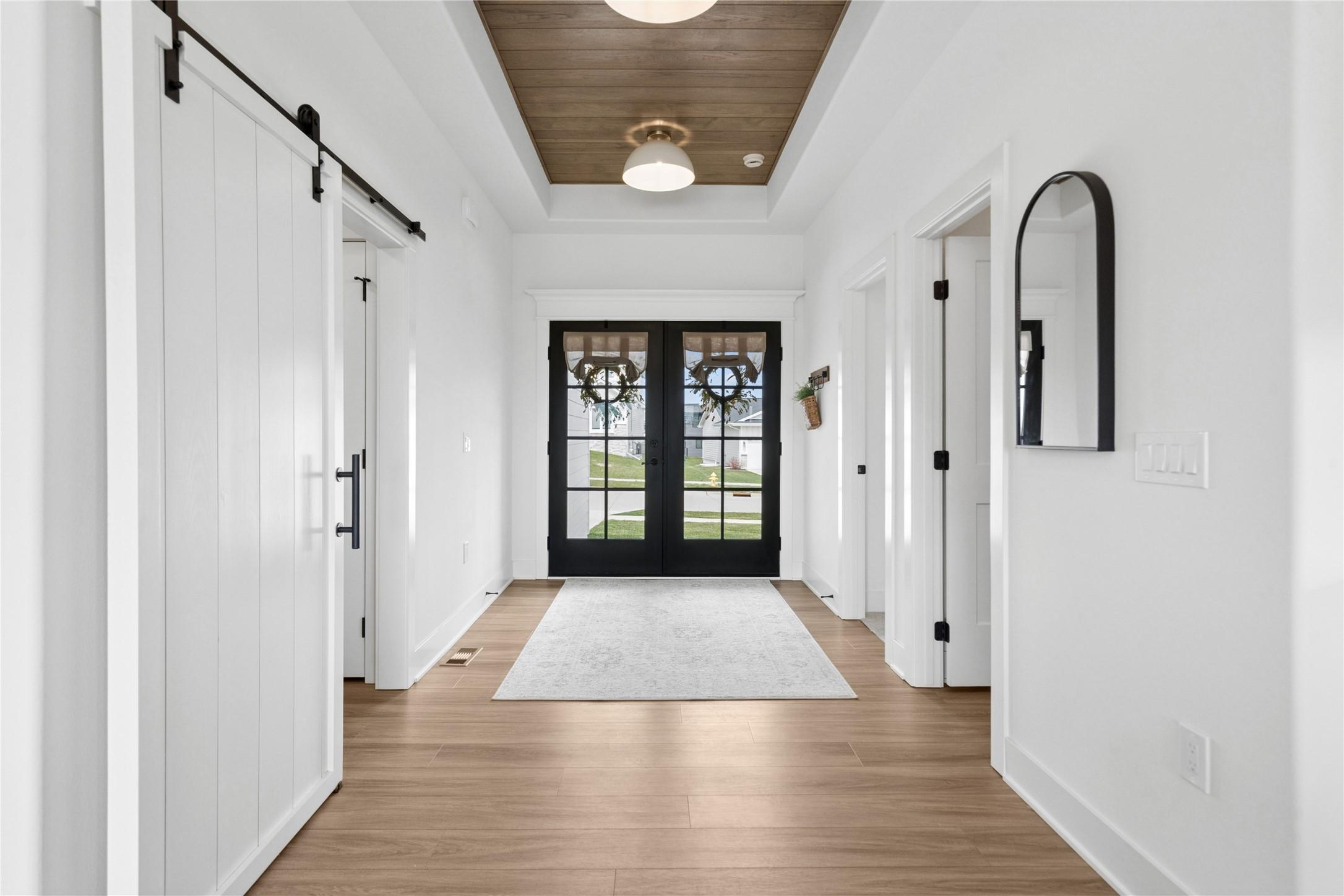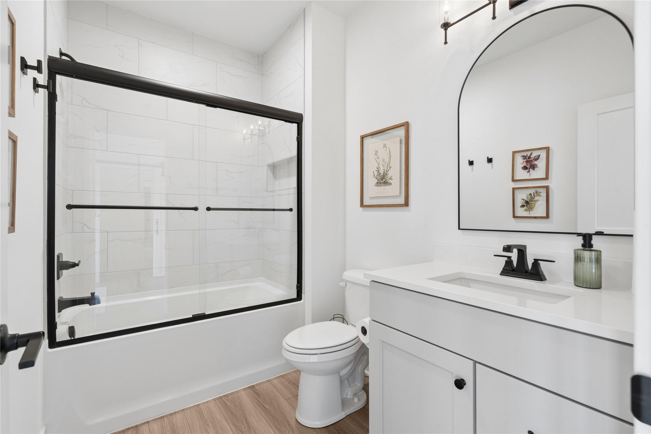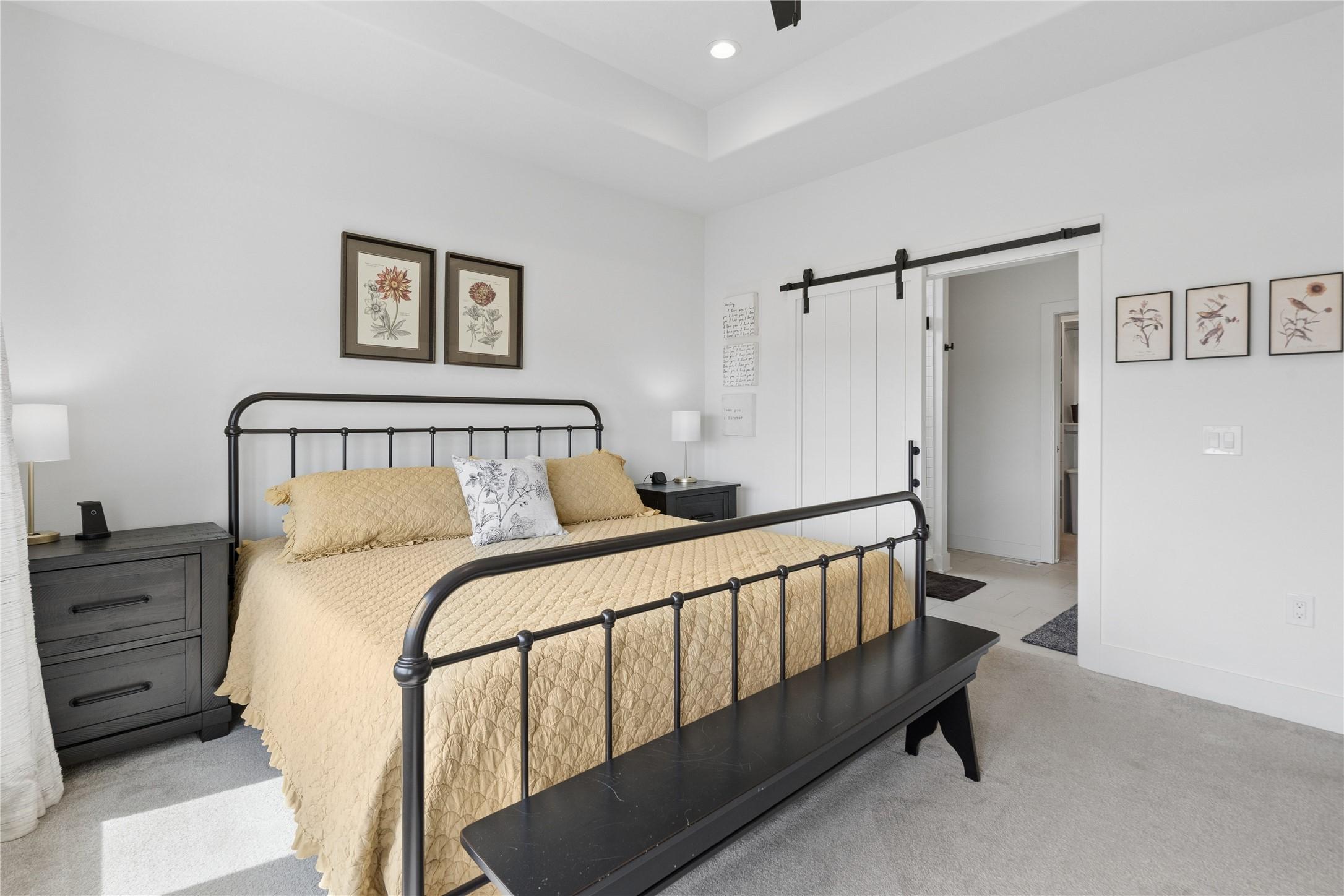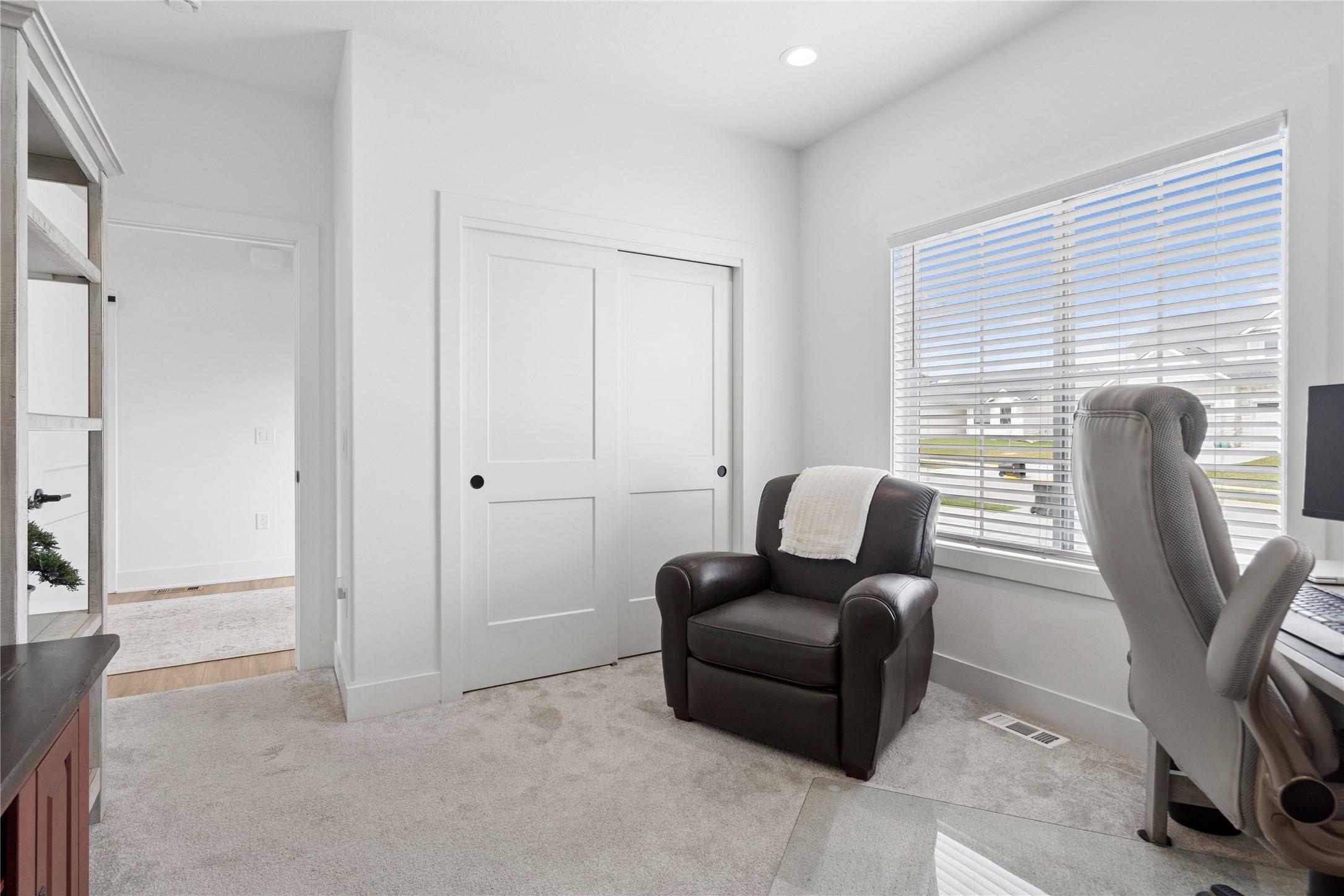 Better than new KRM resale with an open, functional layout, quality finishes, and thoughtful upgrades throughout. Bright and sunny with great views, this home offers a private, fully fenced backyard and standout curb appeal. The kitchen features abundant cabinetry, quartz countertops, stainless steel appliances, and a walk-in pantry, flowing into the dining area and covered deck. The great room includes a 48 linear fireplace and large windows for natural light. The primary suite offers dual vanities, tiled shower w/ glass shower door, and a custom walk-in closet with direct laundry access. The main level also has an additional bedroom and full bathroom w/ tile & glass shower door. The finished lower level adds a spacious family room, bar, two bedrooms, and 3/4 bath w/glass shower door. Plenty of storage throughout. Includes irrigation, passive radon system, and generator transfer panel. Great location near trails, parks, shopping, restaurants, and easy interstate access.